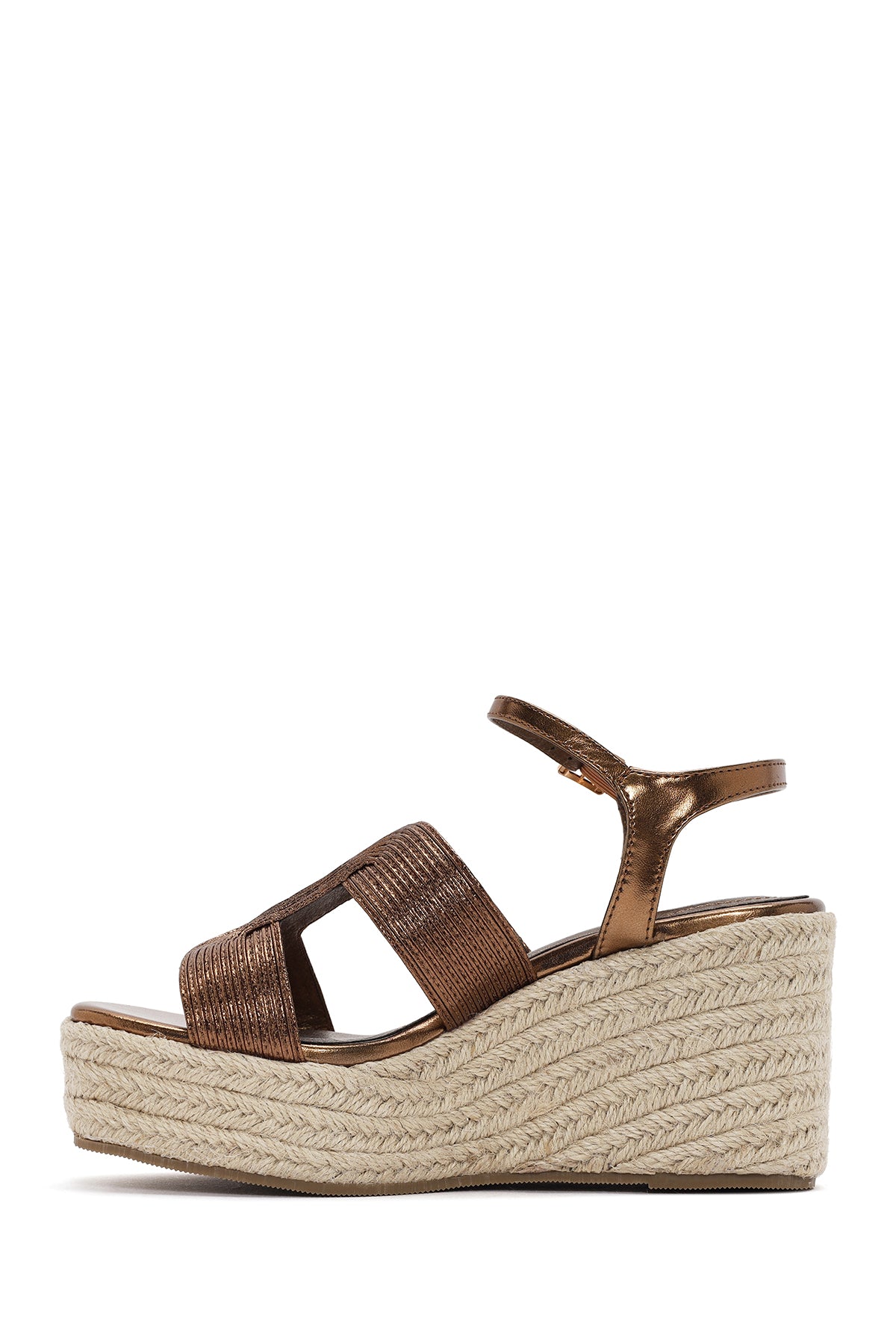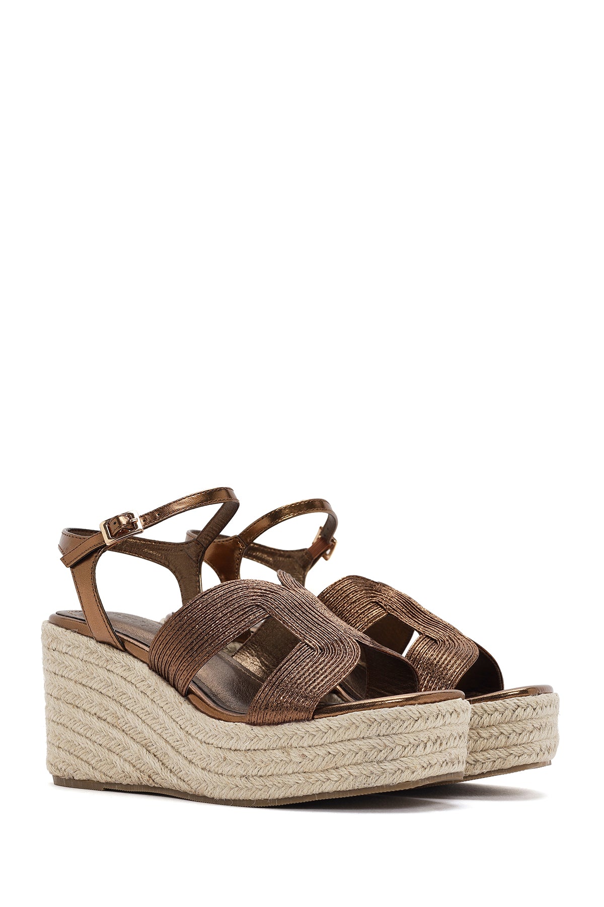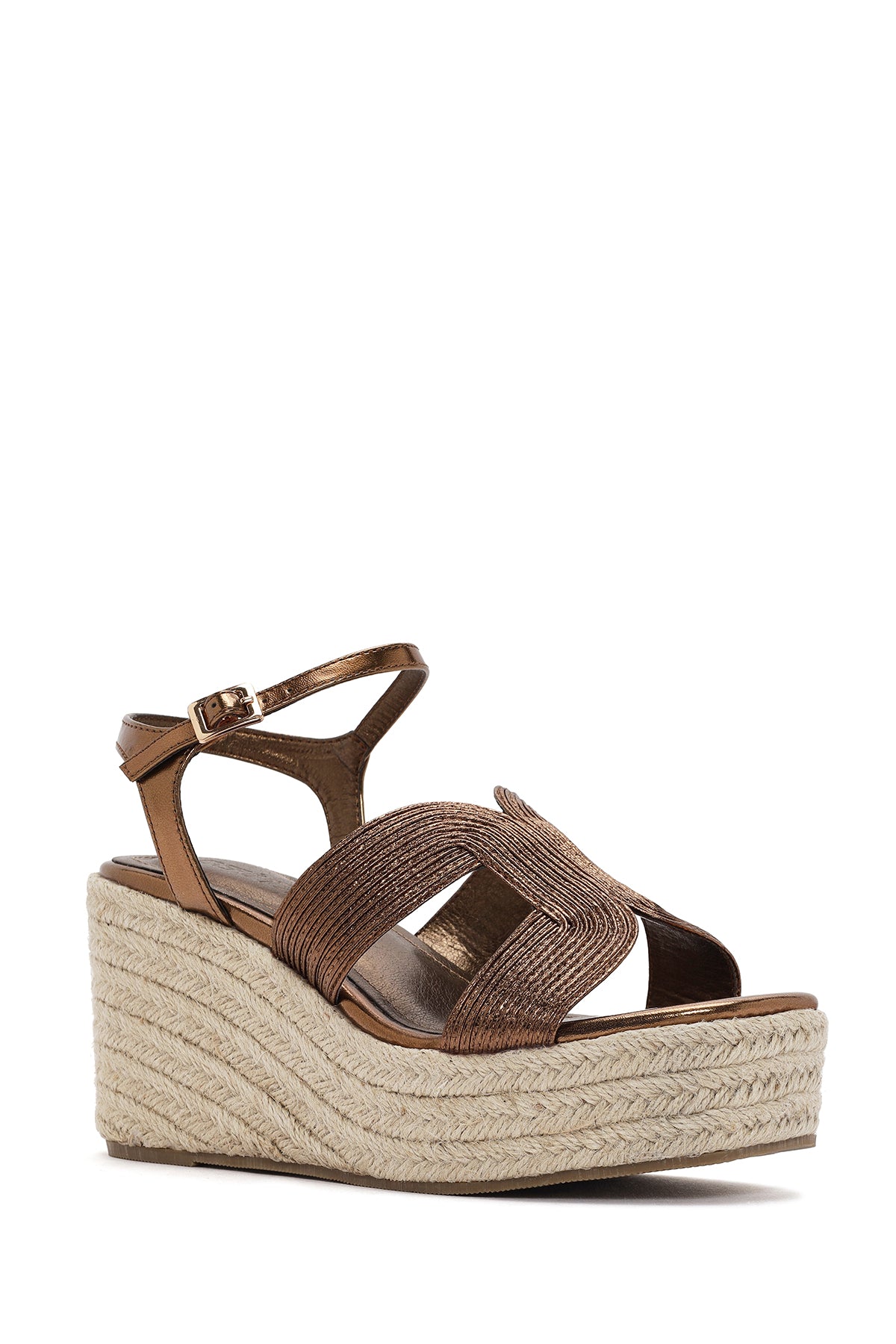 Kadın Bronz Bilekten Bantlı Dolgu Topuklu Espadril