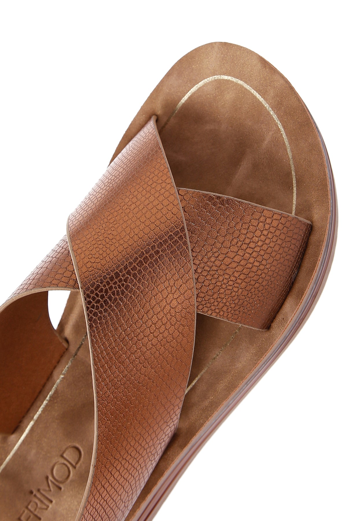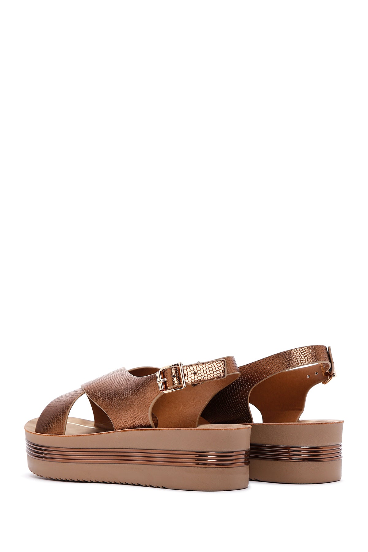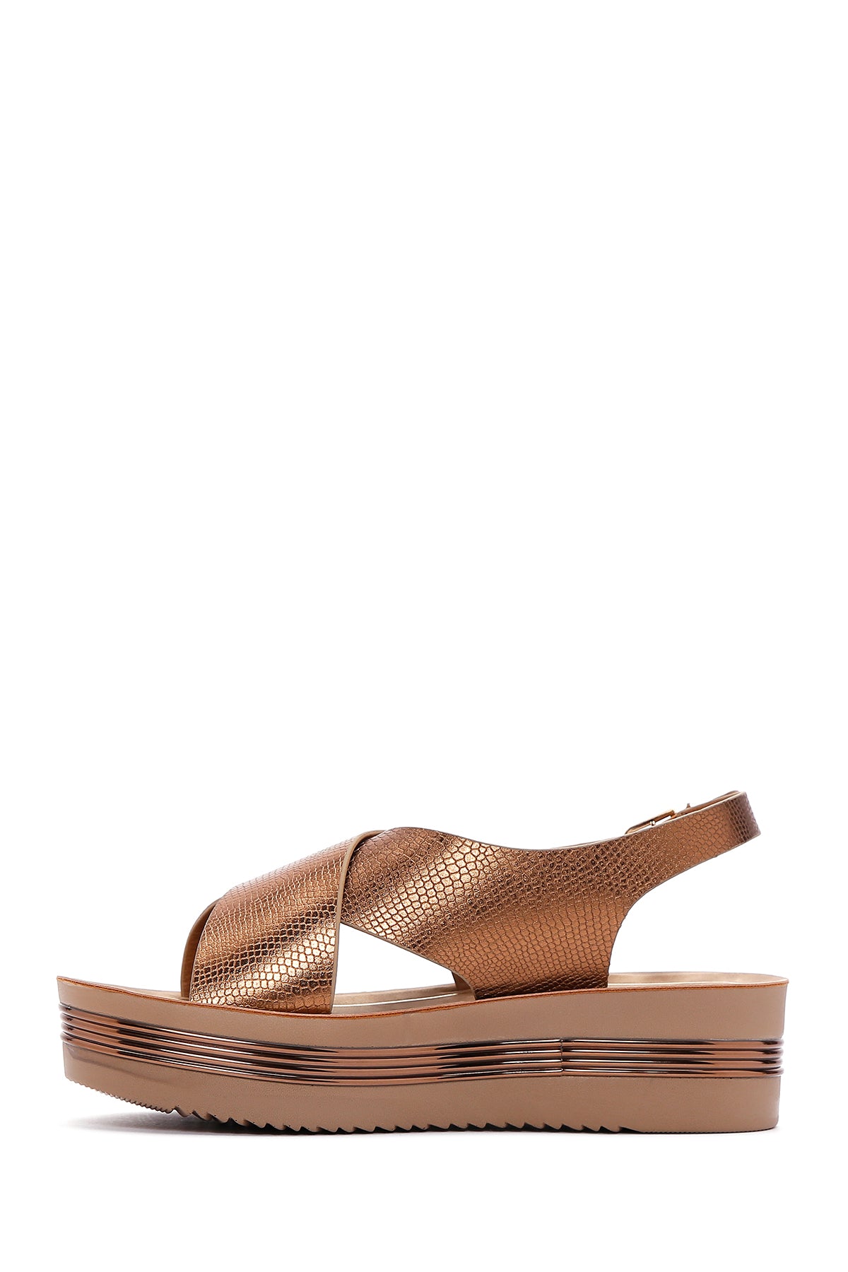 Kadın Bronz Bilekten Bantlı Kalın Tabanlı Metalik Sandalet
