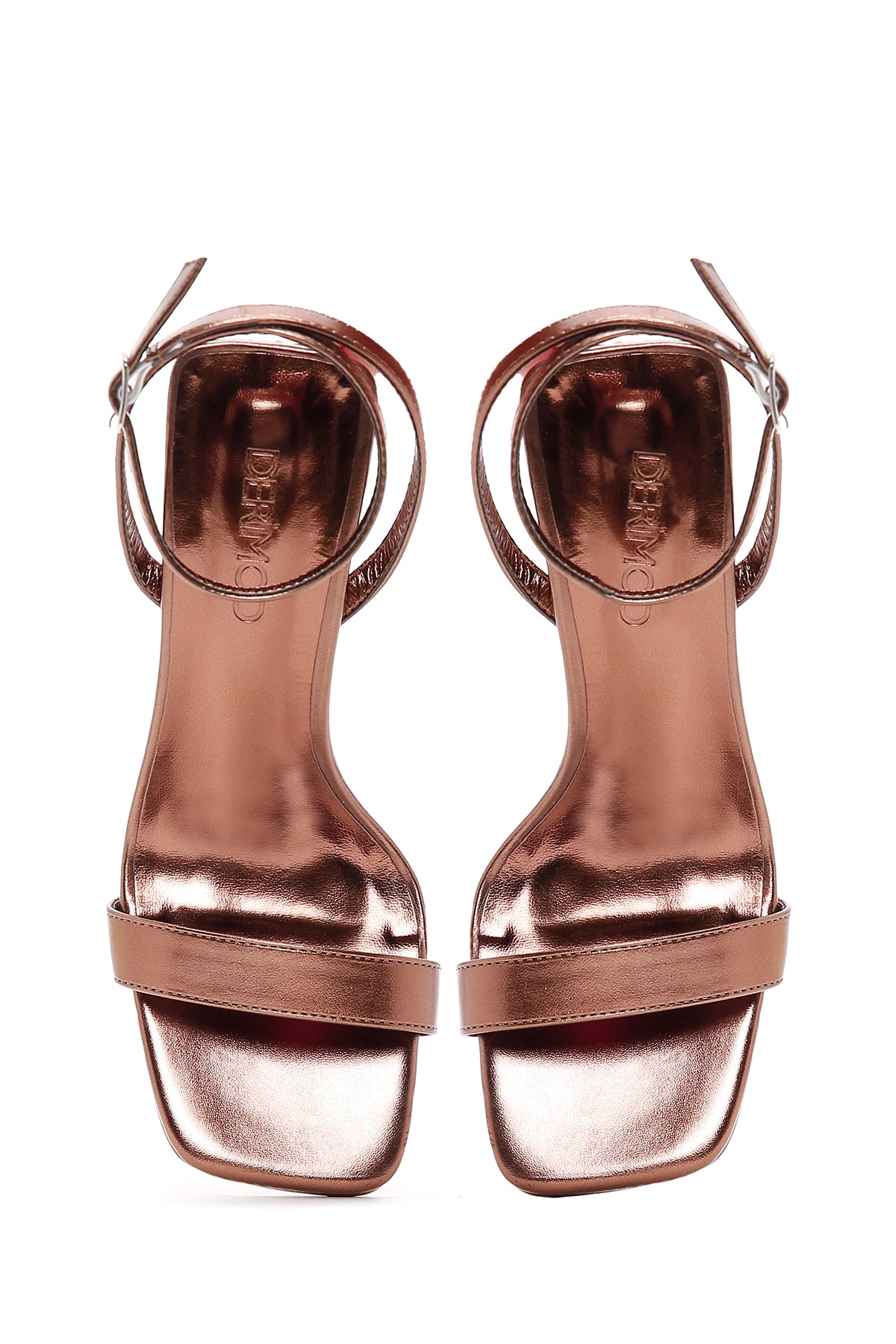 Derimod’un Zarif ve Şıklığı bir arada sunan Kadın Bronz Metalik Tek Bant Topuklu Sandalet ile tarzınızı konuşturun. Ürünün kodu: 23SFE452032 39