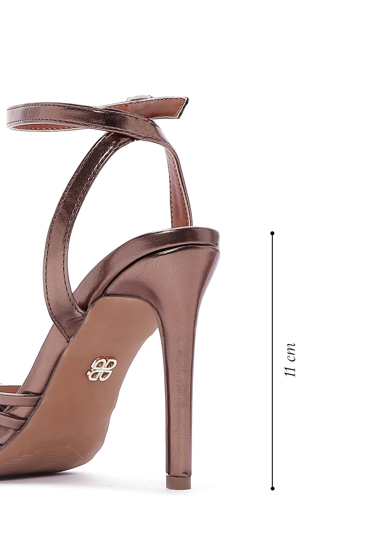 Derimod’un Zarif ve Şıklığı bir arada sunan Kadın Bronz Metalik Yüksek Topuklu Sandalet ile tarzınızı konuşturun. Ürünün kodu: 23SFE452832 39
