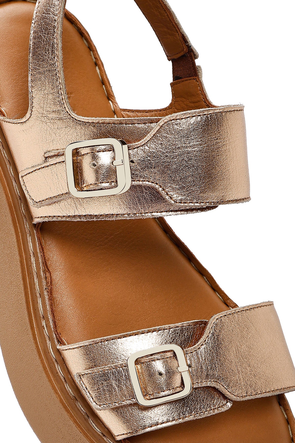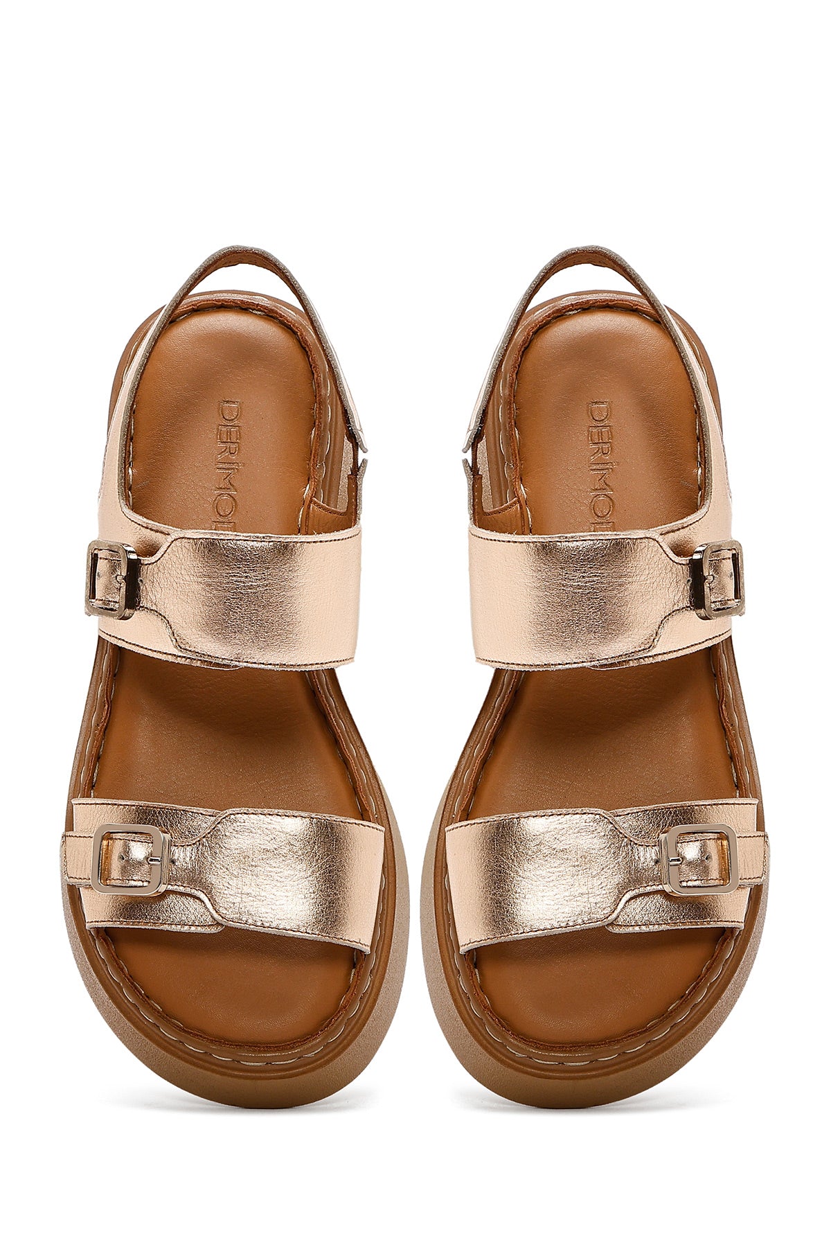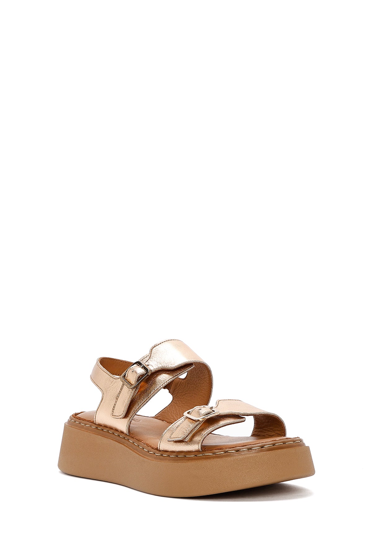 Derimod’un Zarifliği ve Şıklığı bir arada sunan Kadın Bronz Tokalı Kalın Tabanlı Metalik Deri Comfort Sandalet ile tarzınızı konuşturun. Ürünün kodu: 25SFD342432 39