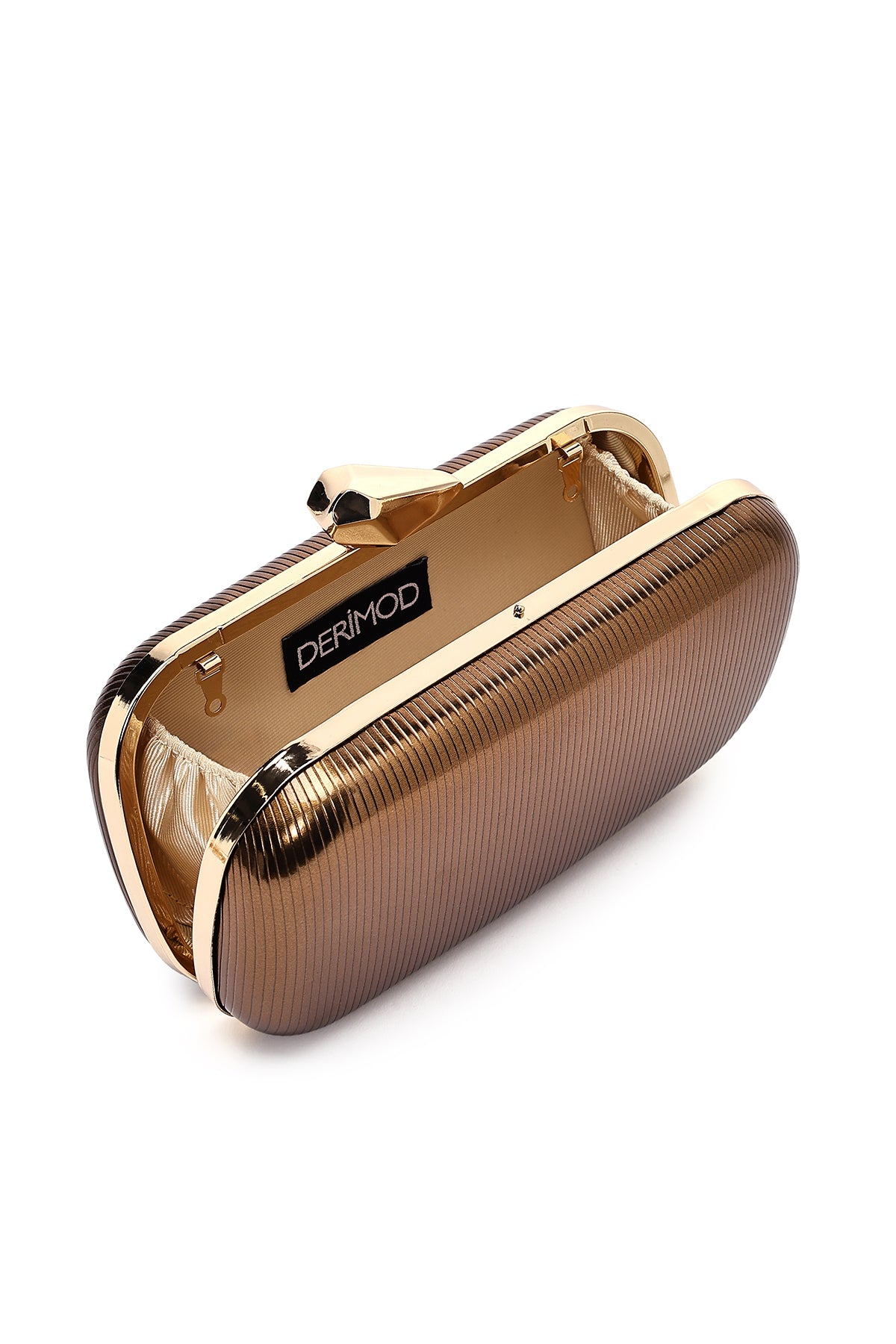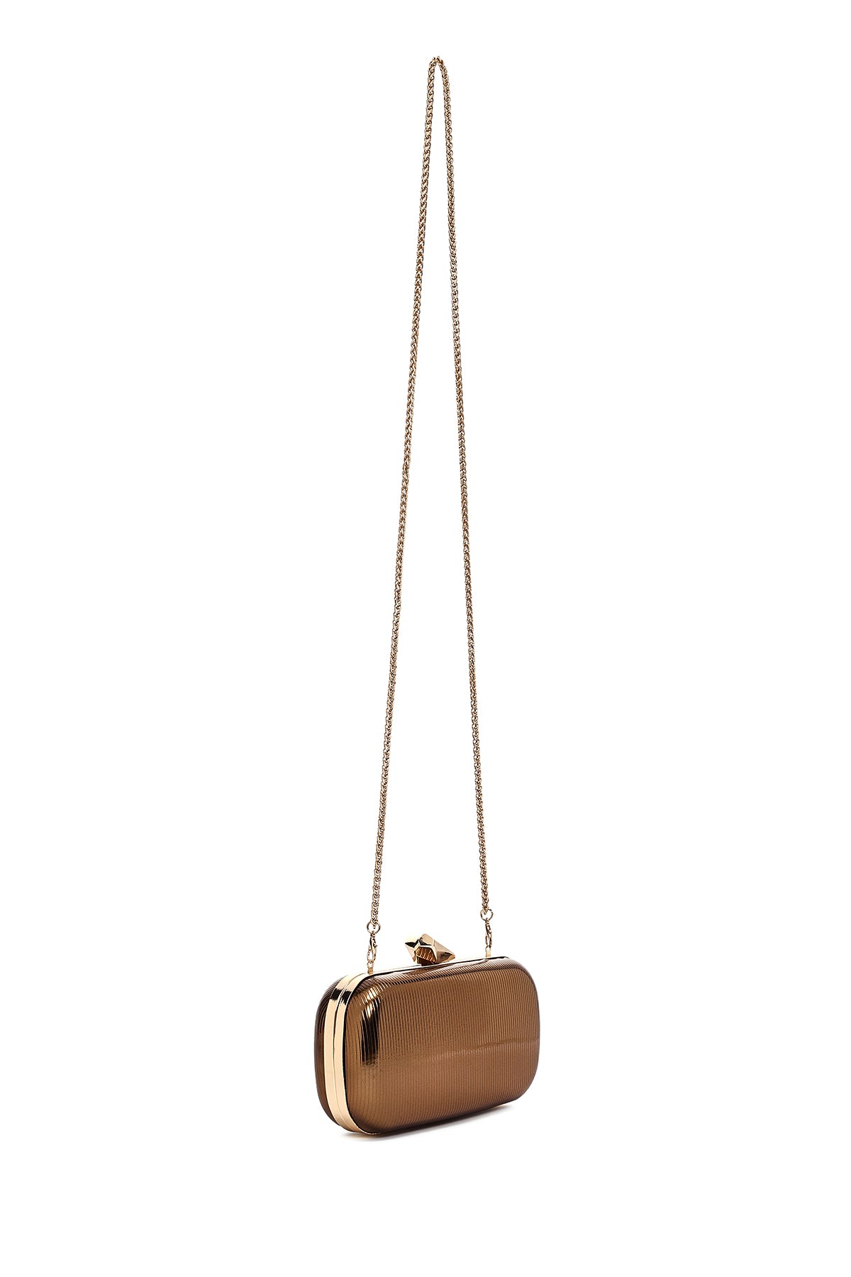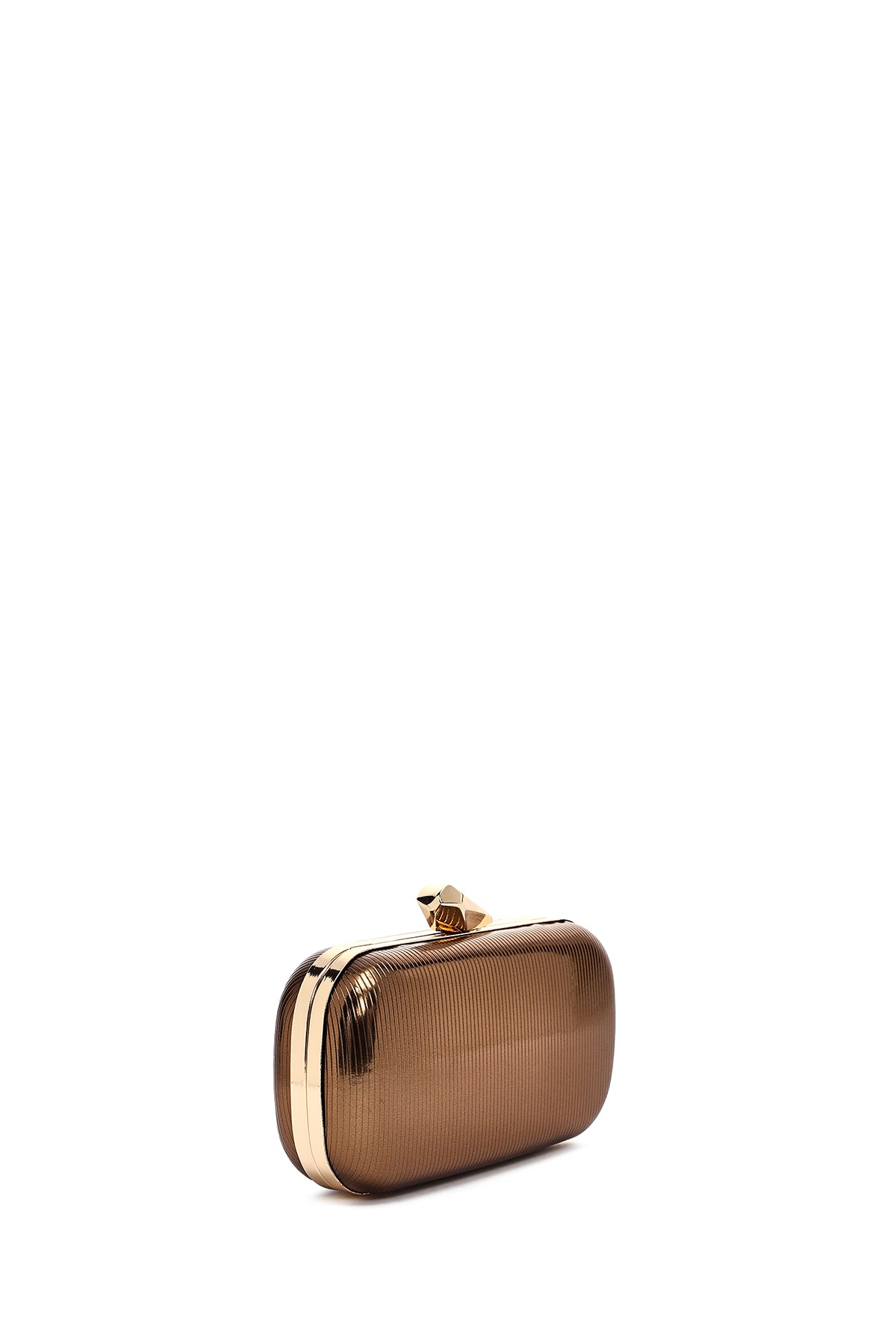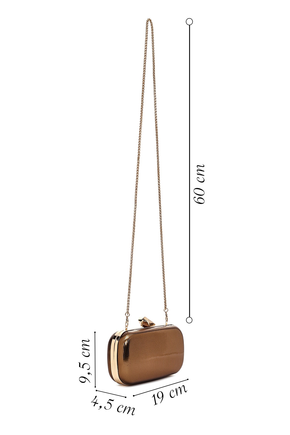 Kadın Bronz Uzun Askılı Metalik Mini Portföy Abiye Çantası