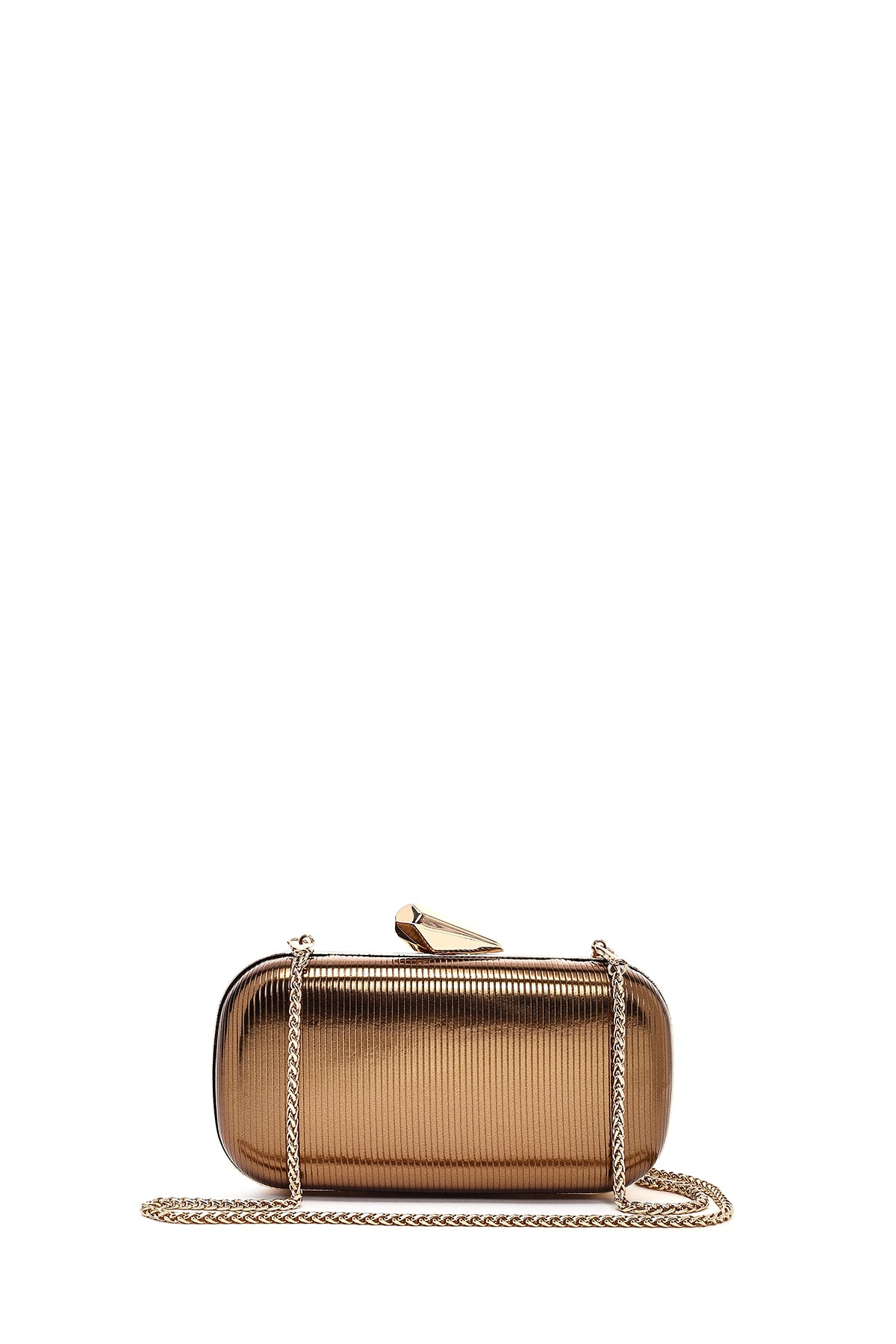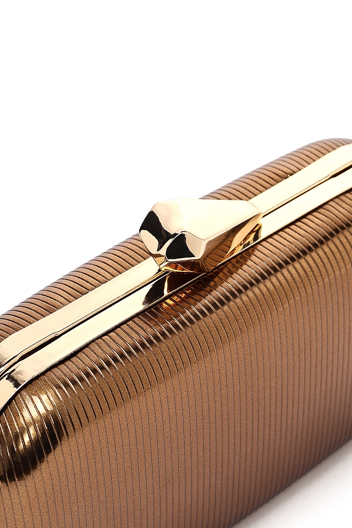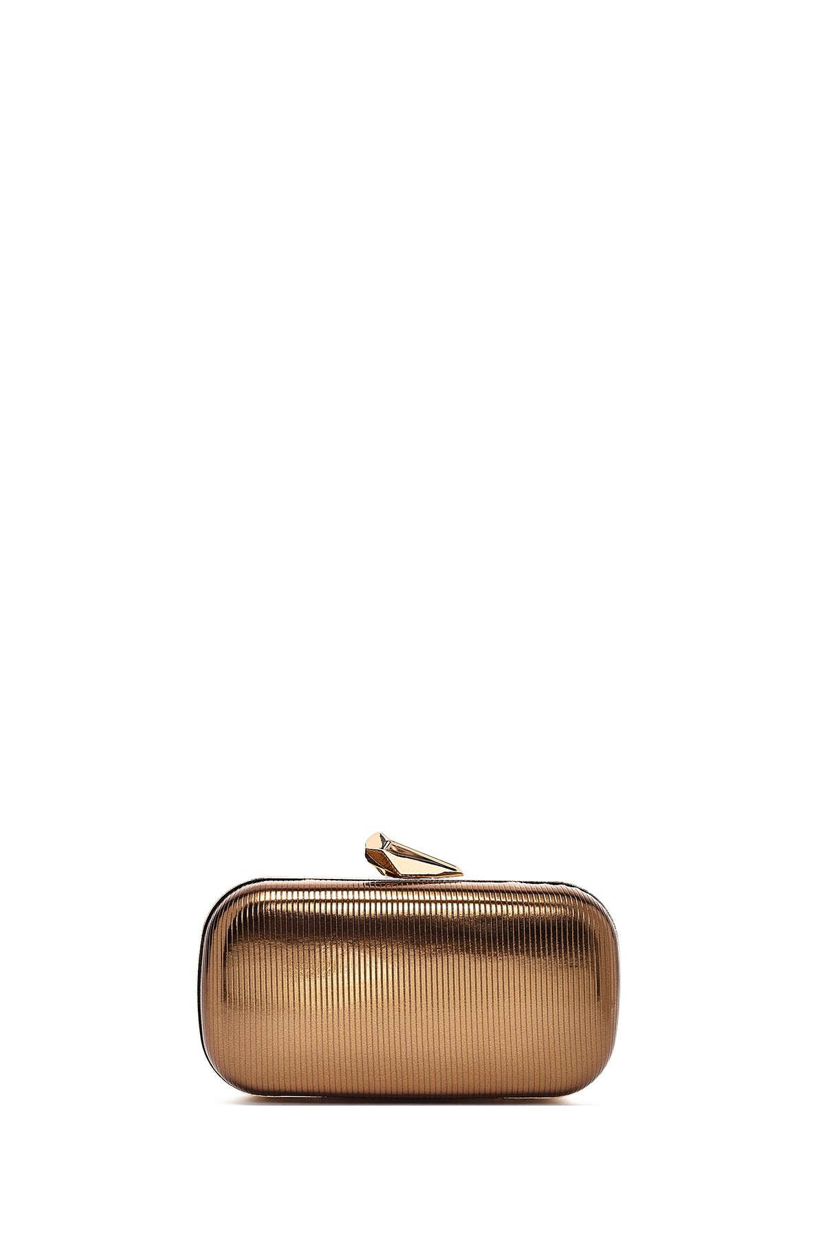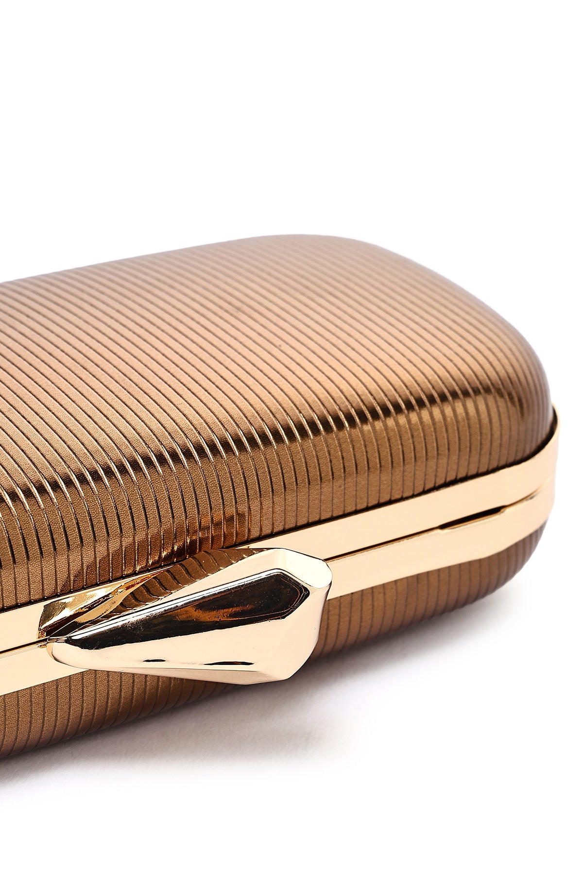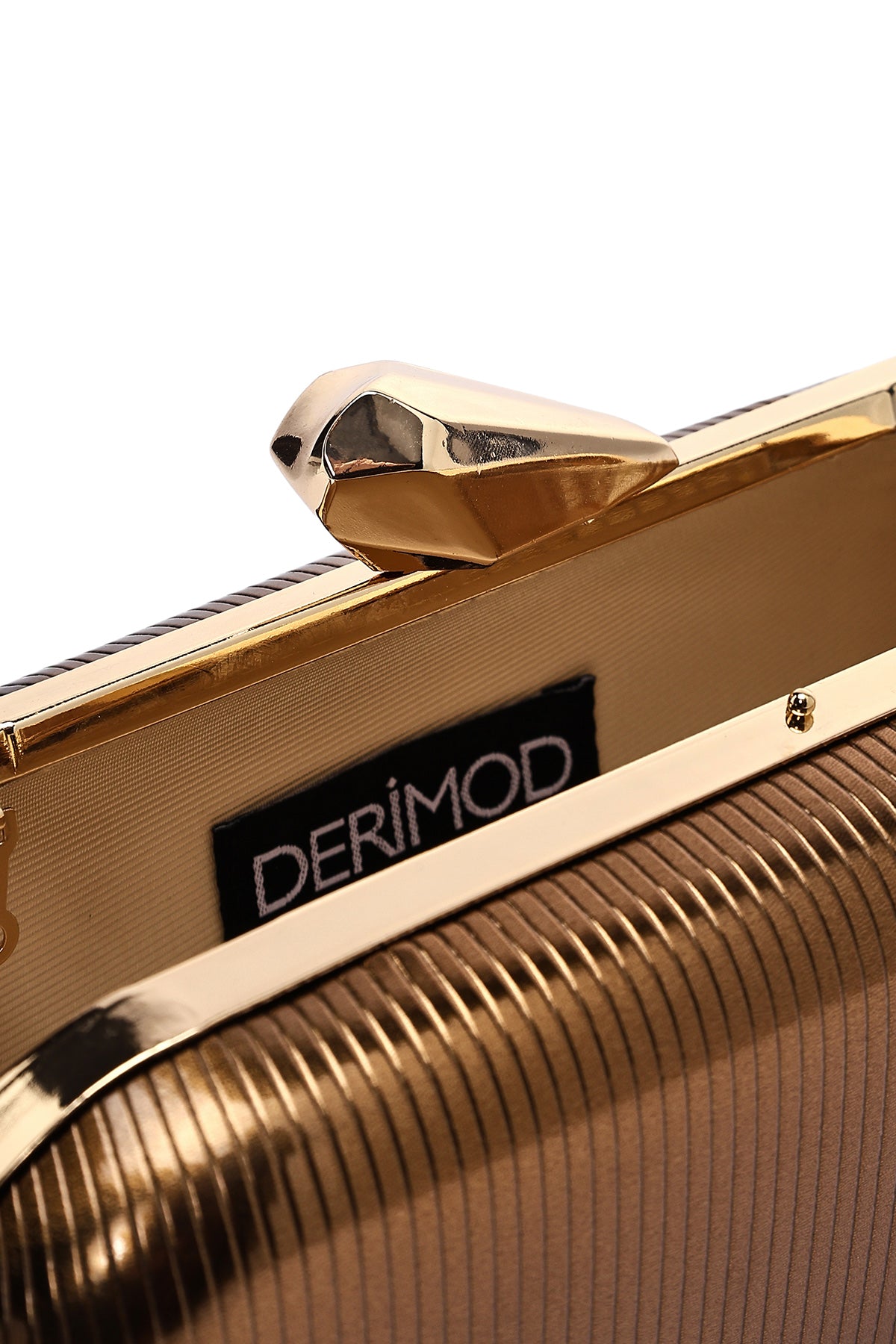 Kadın Bronz Uzun Askılı Metalik Mini Portföy Abiye Çantası