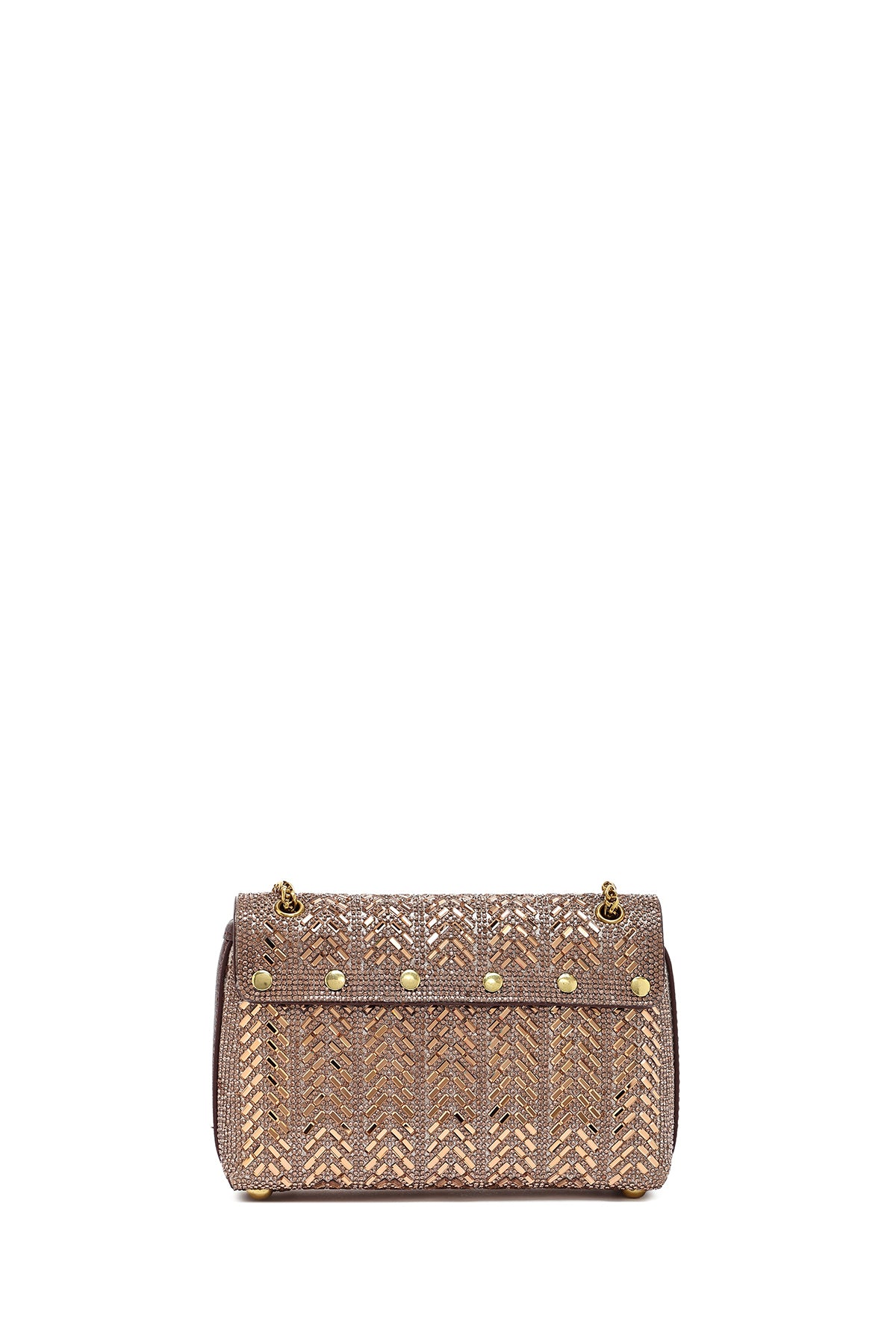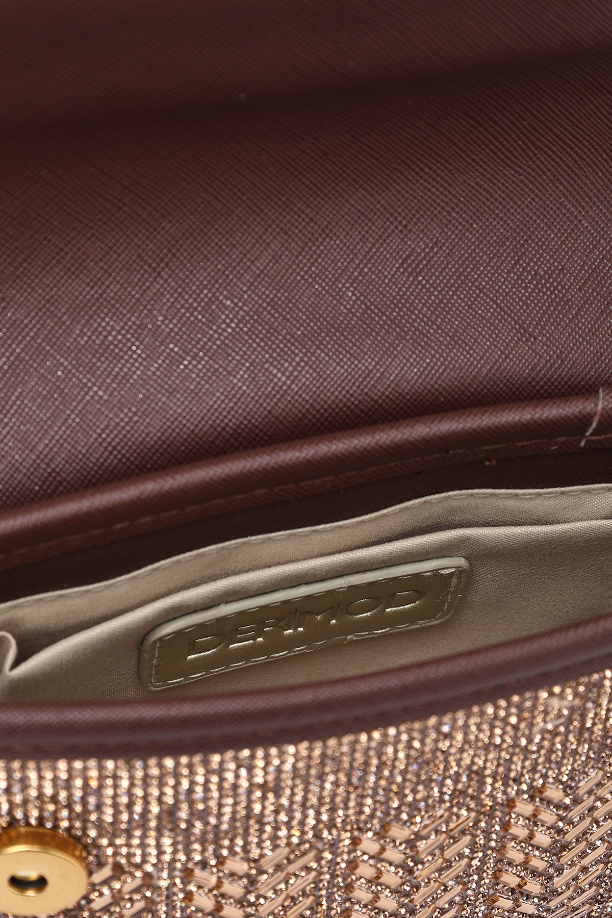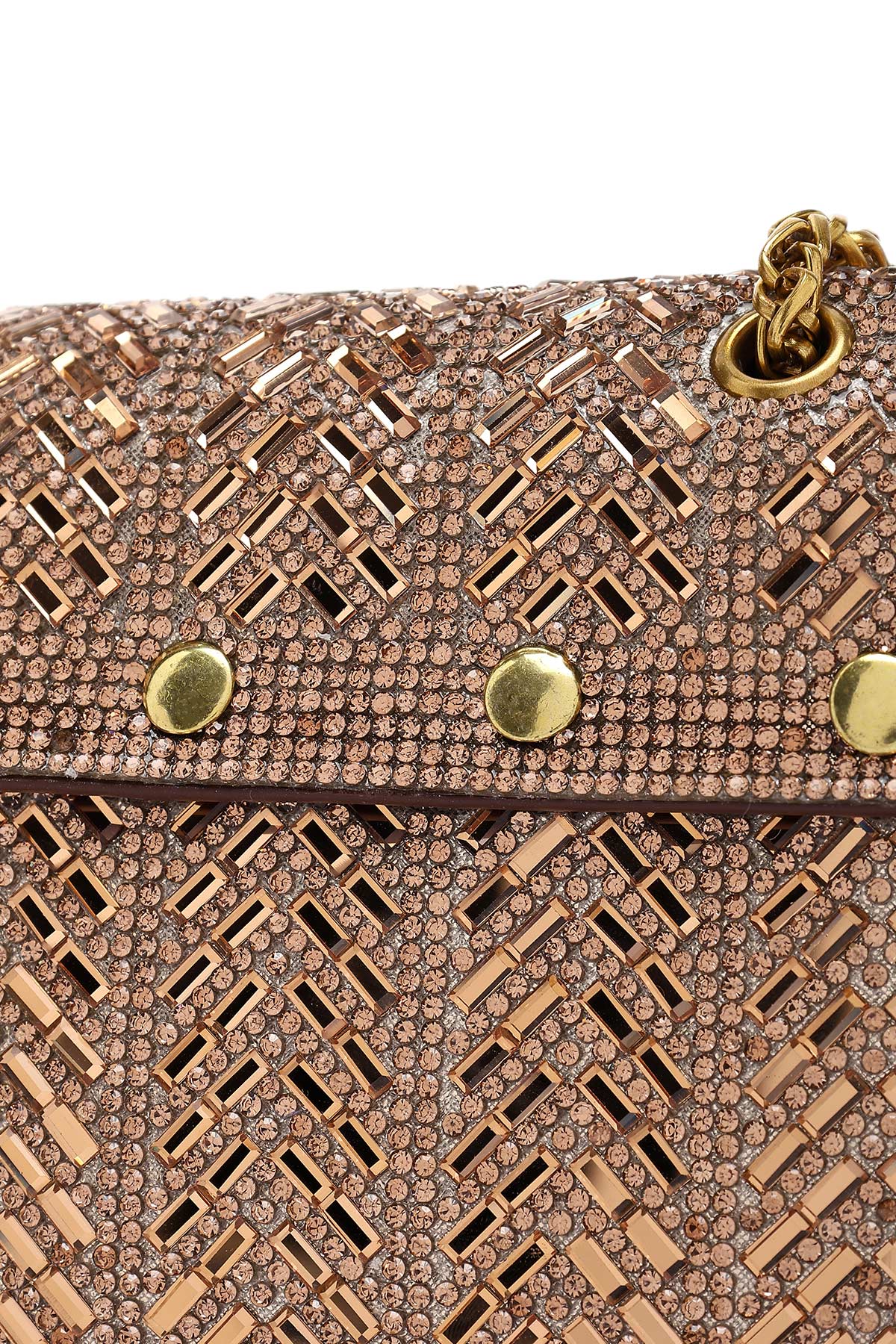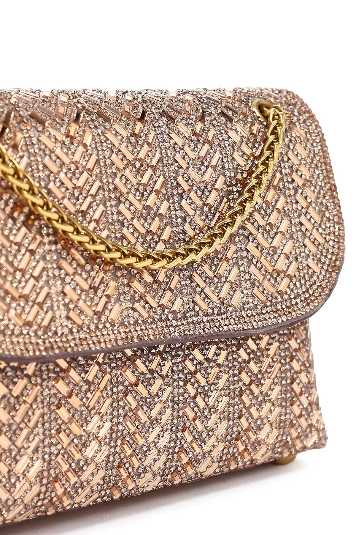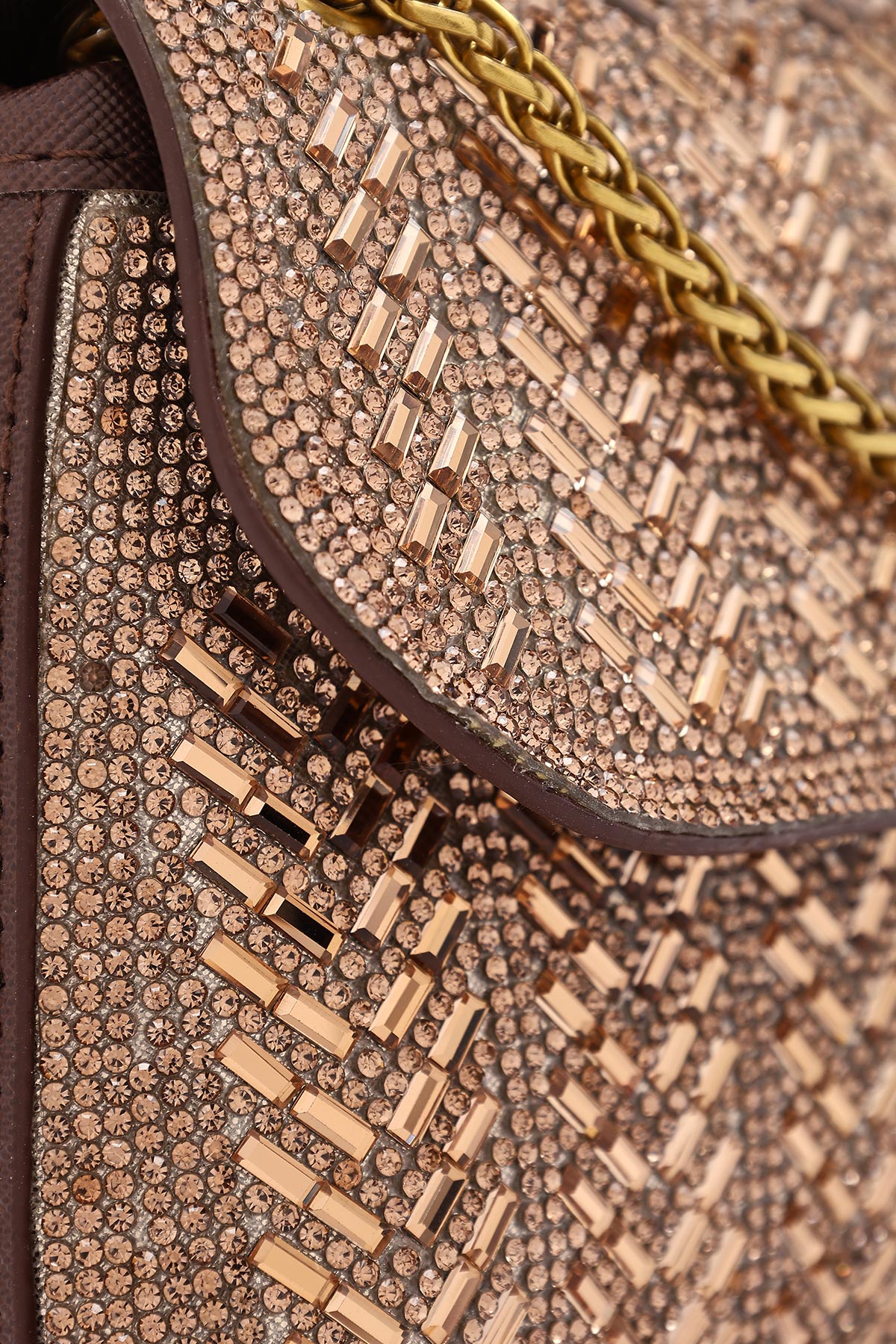 Kadın Bronz Uzun Askılı Taşlı Mini Portföy Abiye Çanta
