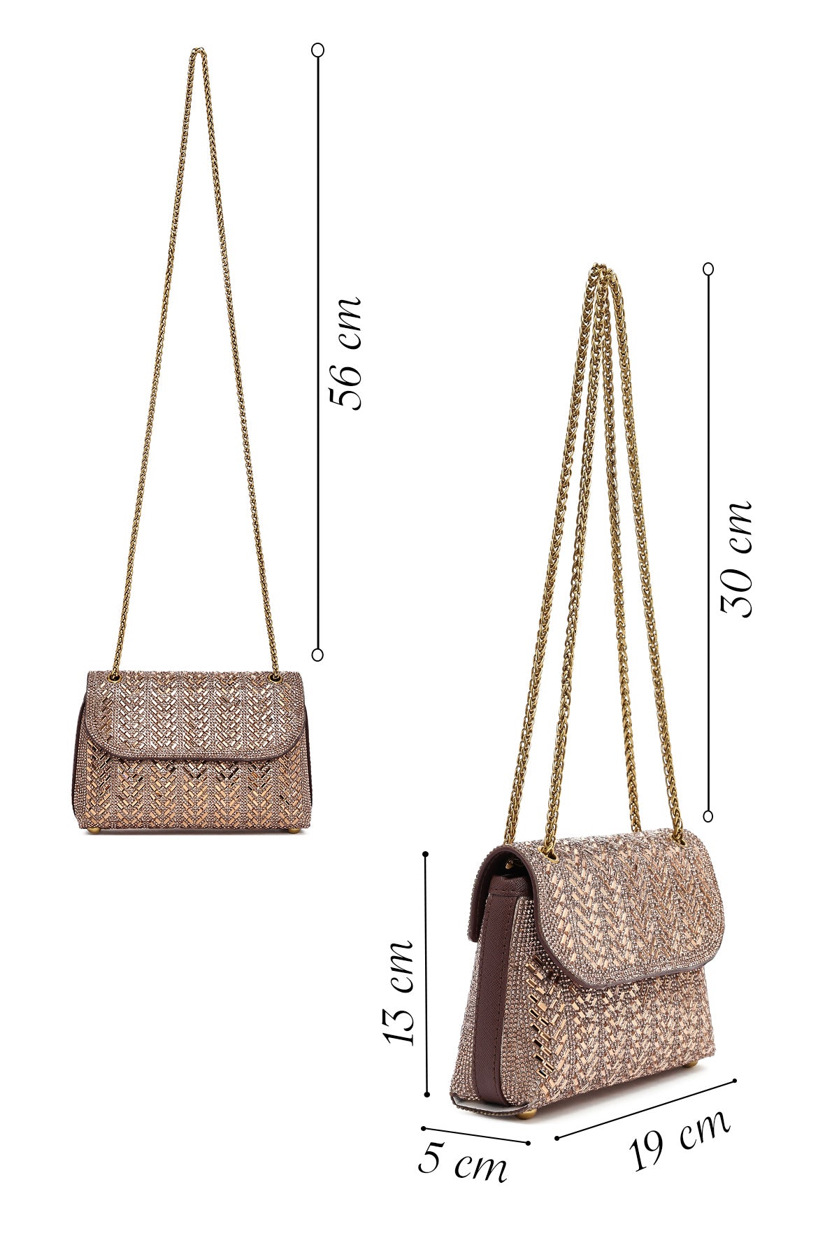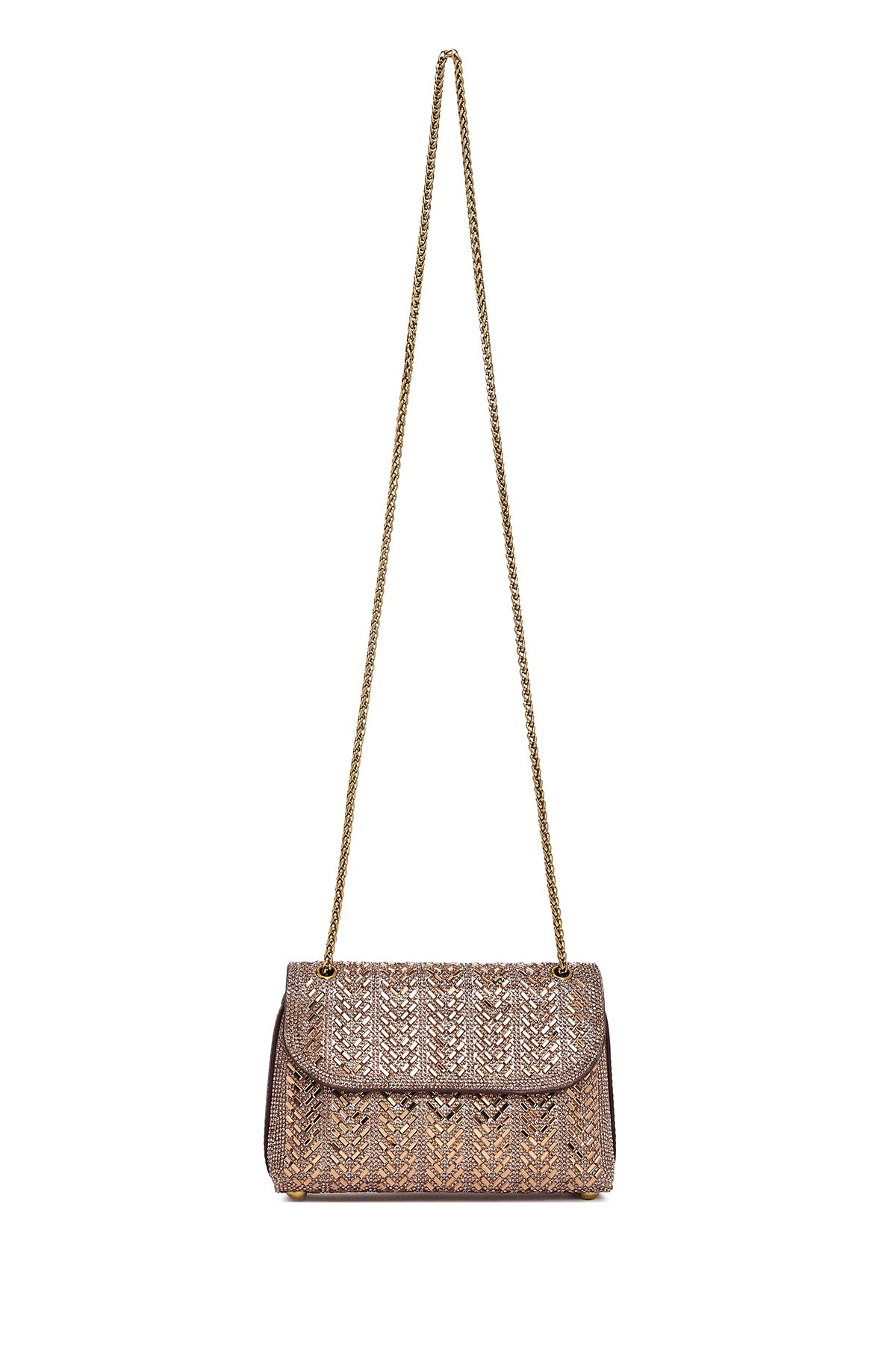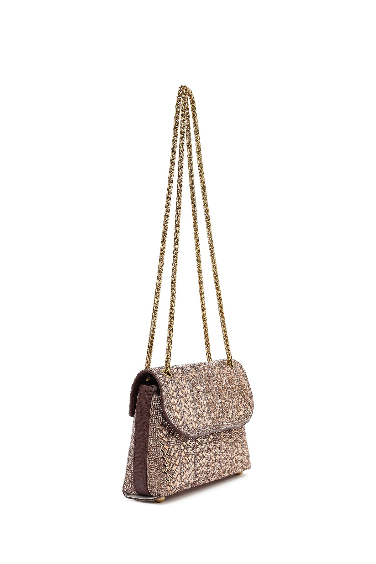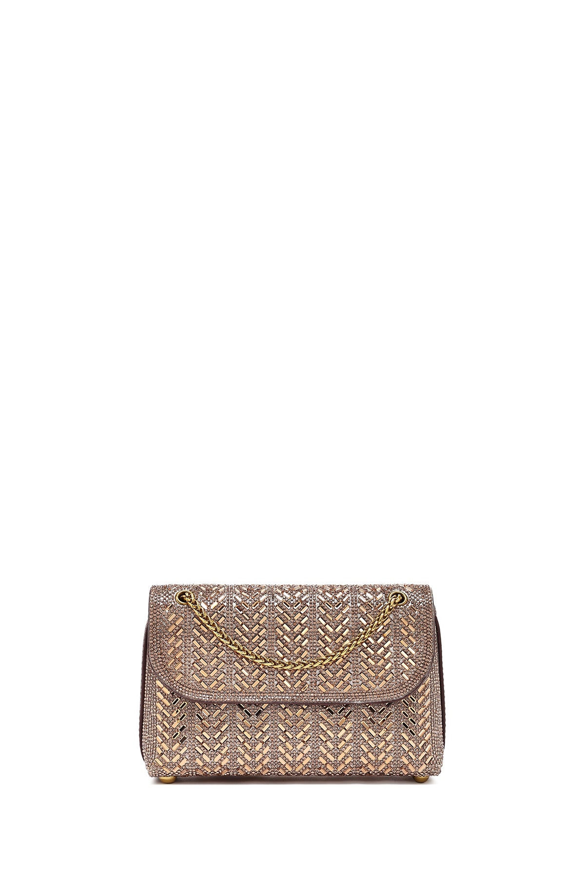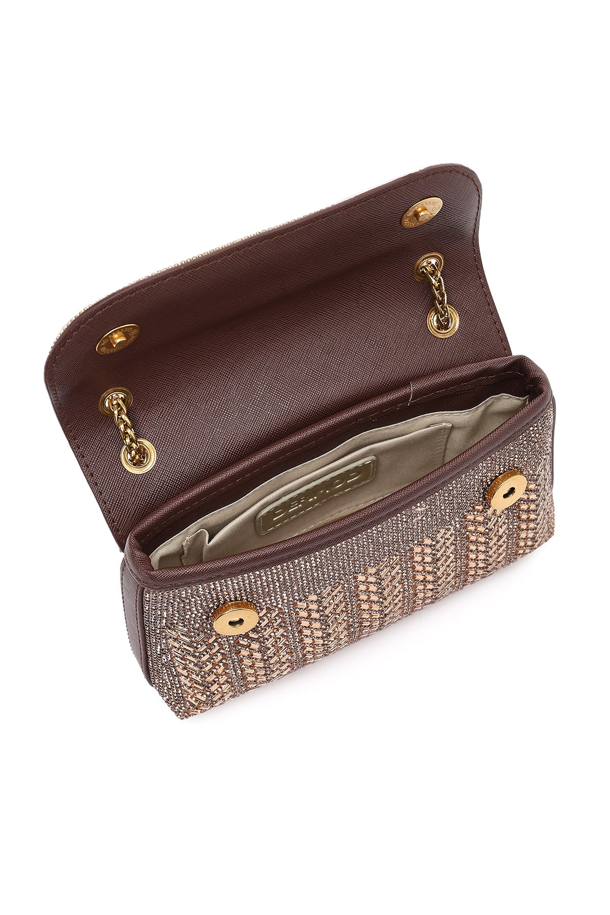 Kadın Bronz Uzun Askılı Taşlı Mini Portföy Abiye Çanta