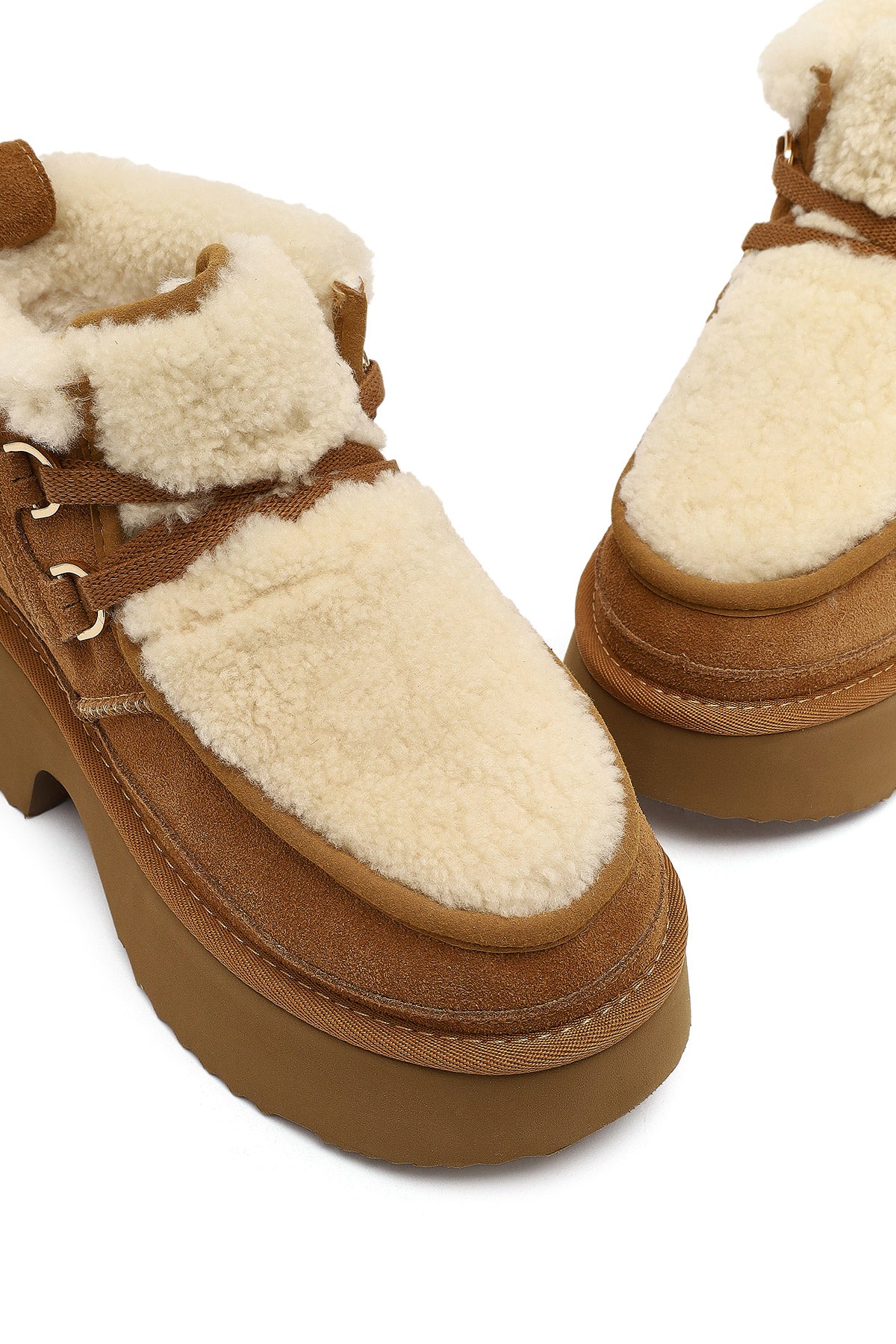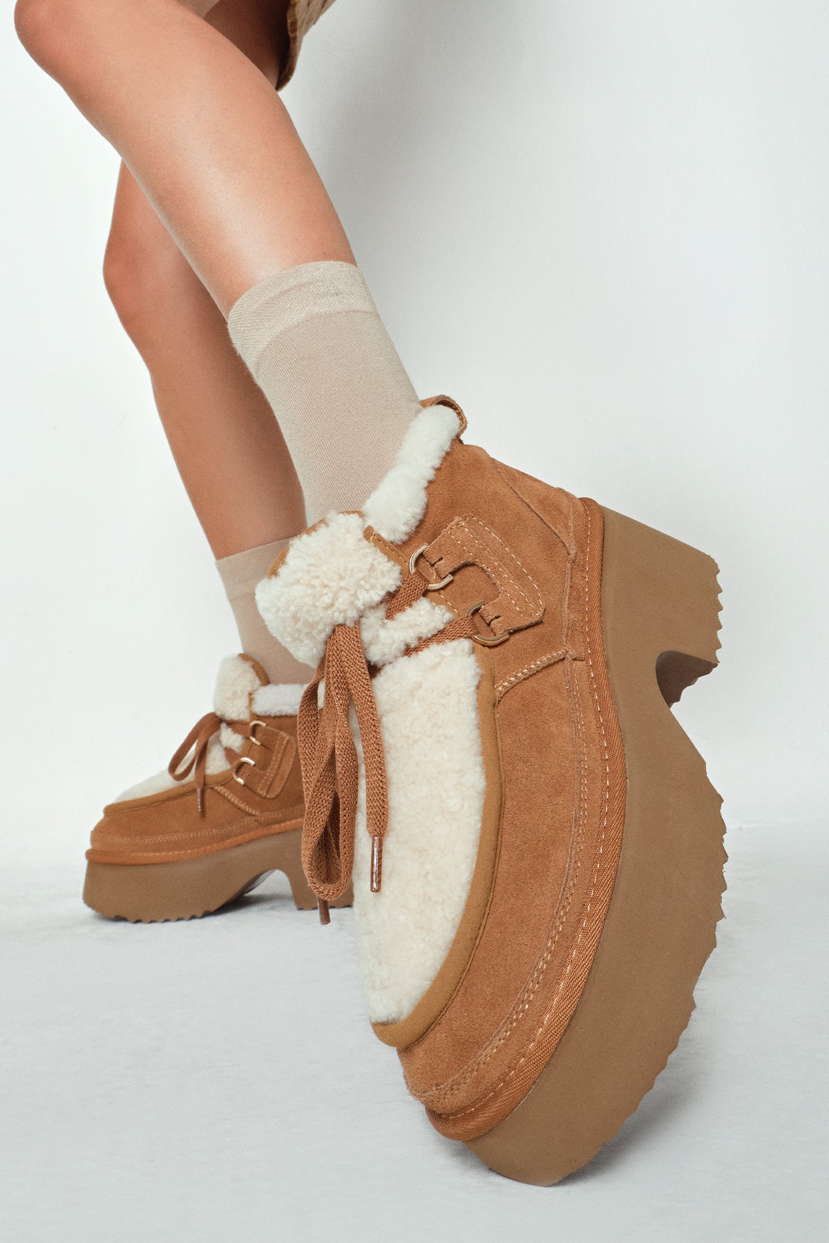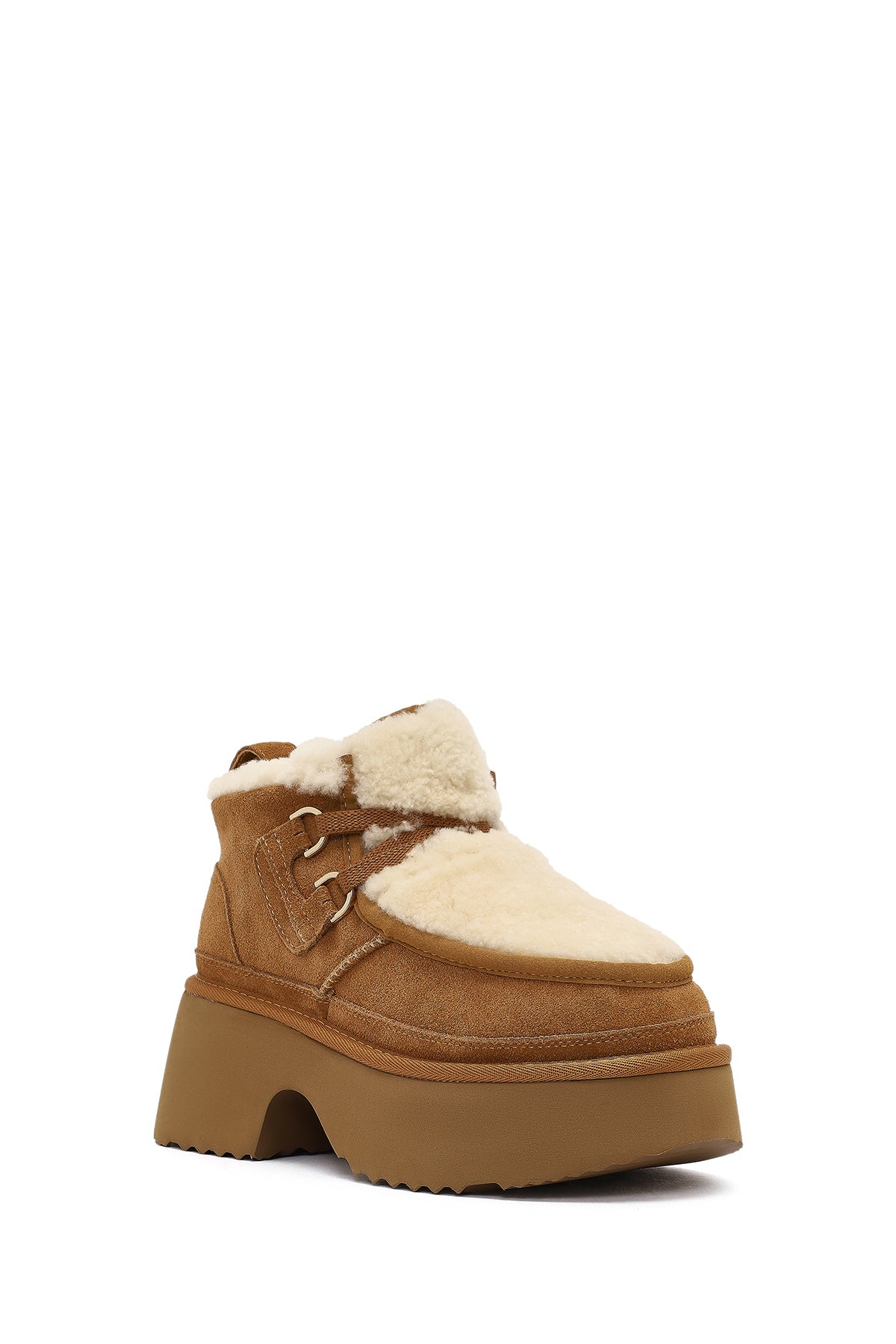 Derimod’un Zarifliği ve Şıklığı bir arada sunan Kadın Camel Bağcıklı Kalın Tabanlı Kürklü Süet Deri Teddy Bot ile tarzınızı konuşturun. Ürünün kodu: 25WFD492110 L5