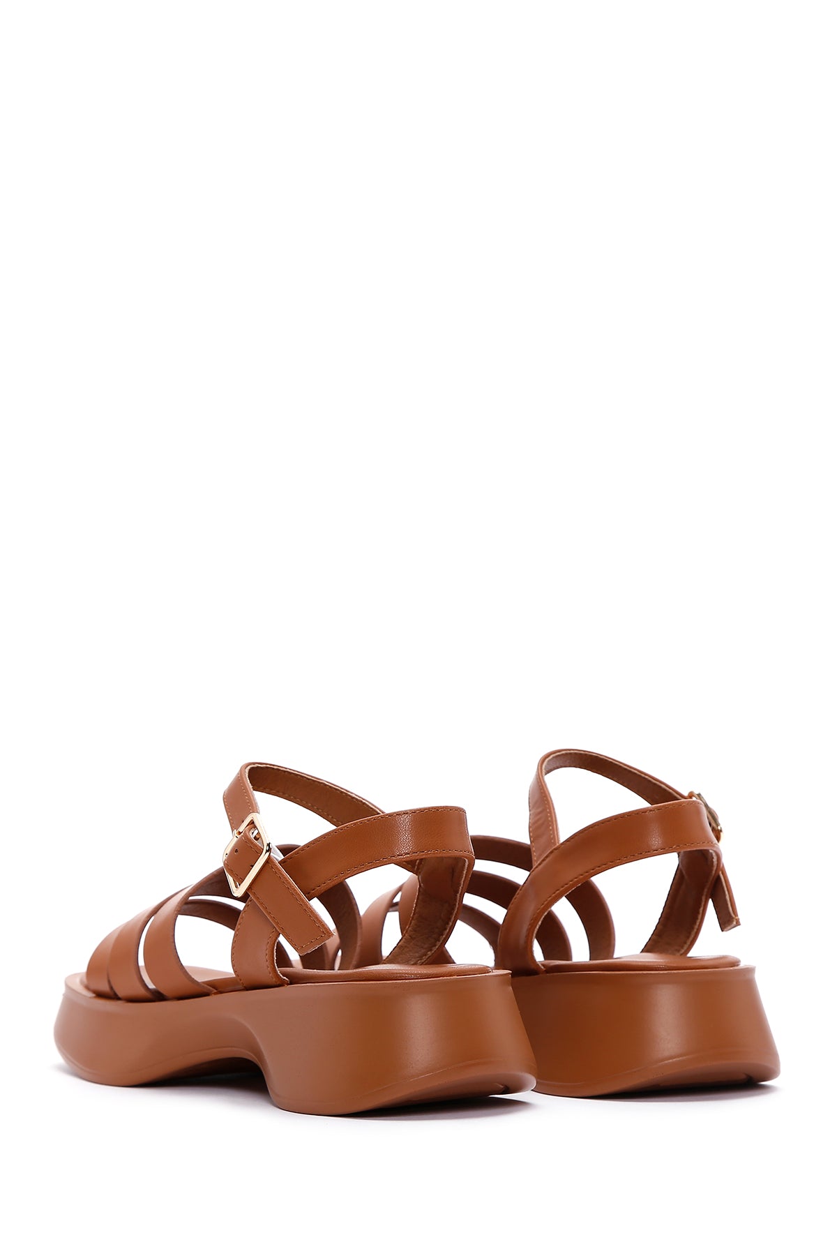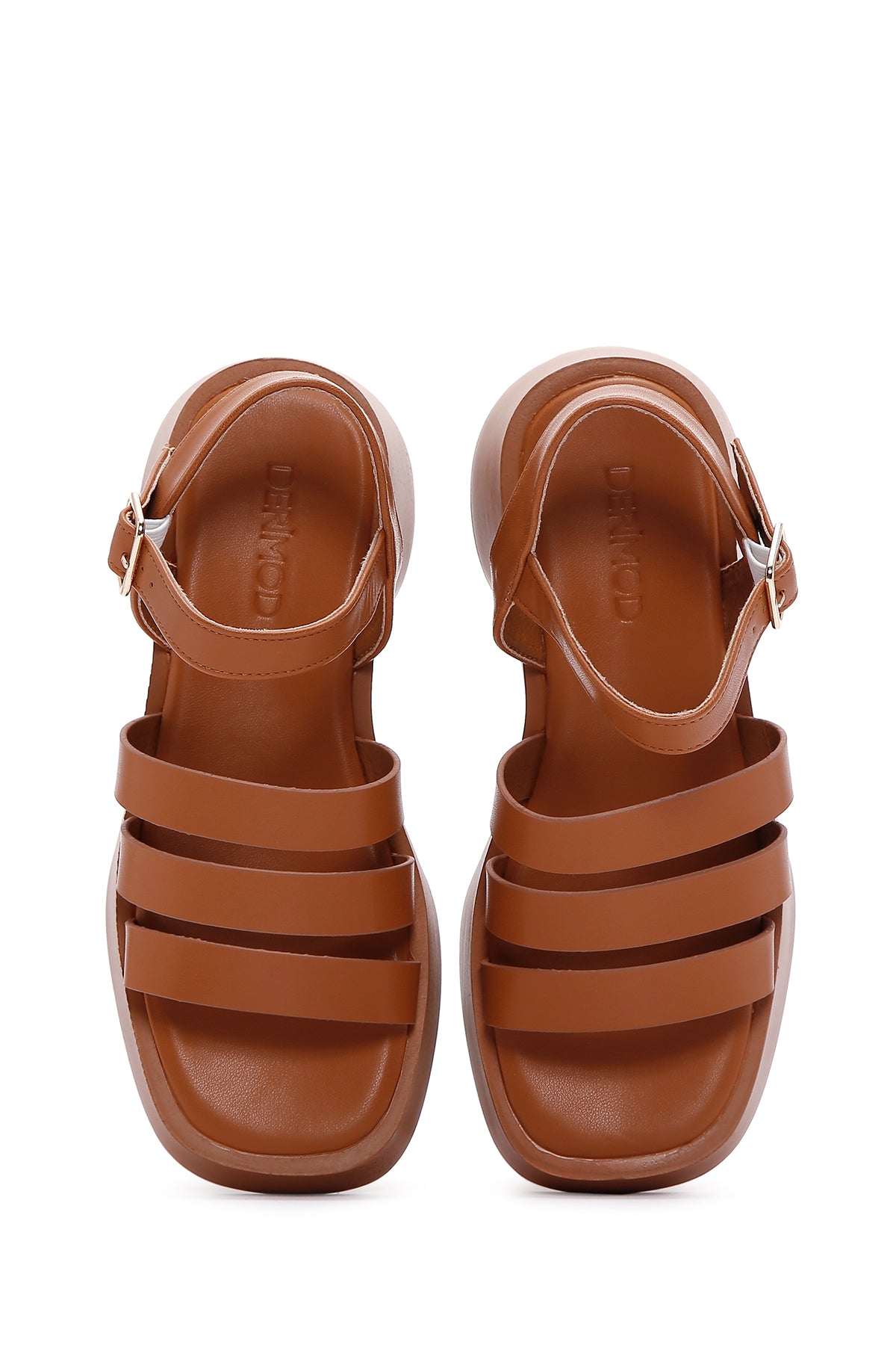 Kadın Camel Bilekten Bantlı Kalın Tabanlı Comfort Sandalet