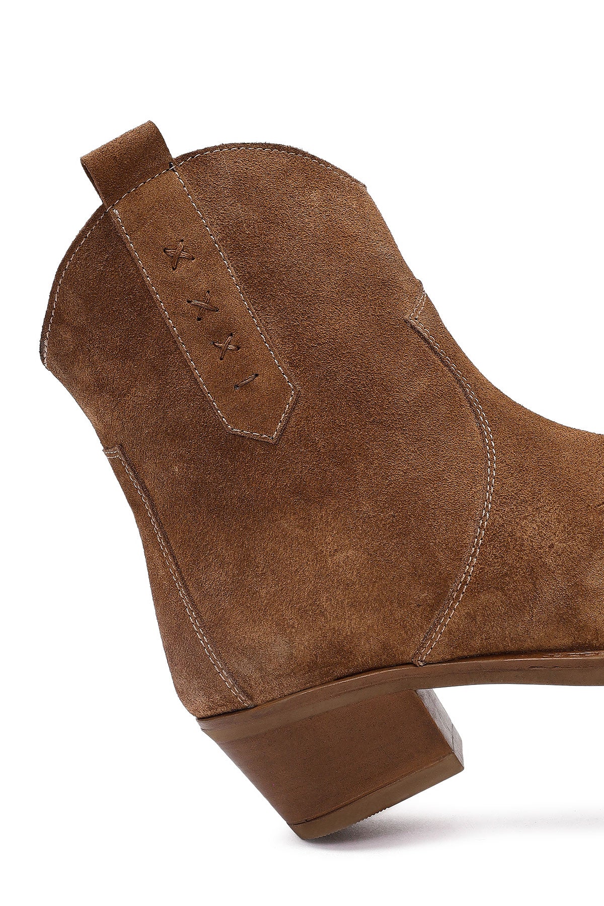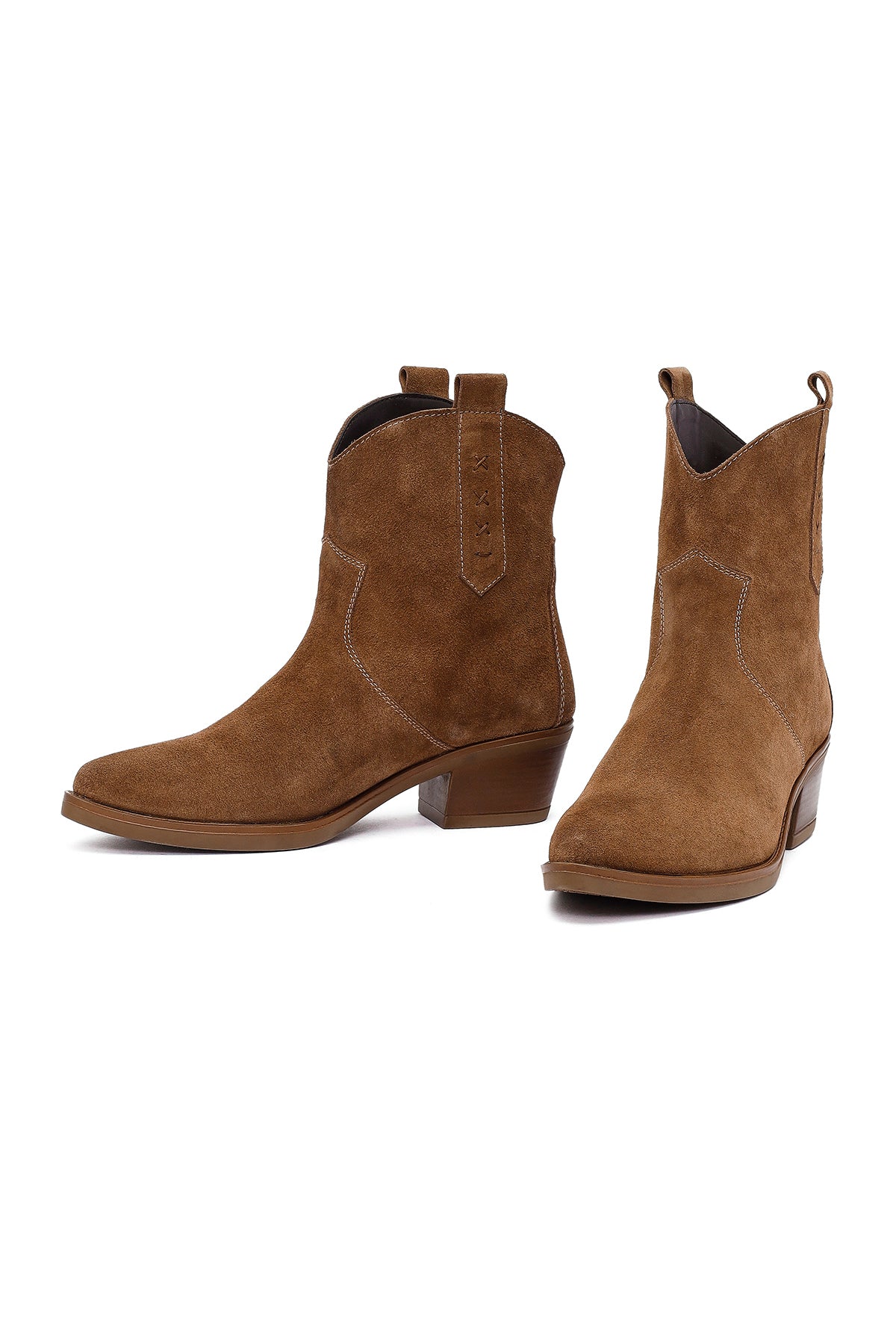 Derimod’un Zarif ve Şıklığı bir arada sunan Kadın Camel Kısa Kalın Topuklu Süet Deri Kovboy Bot ile tarzınızı konuşturun.Ürünün kodu: 25WFD511710 L5