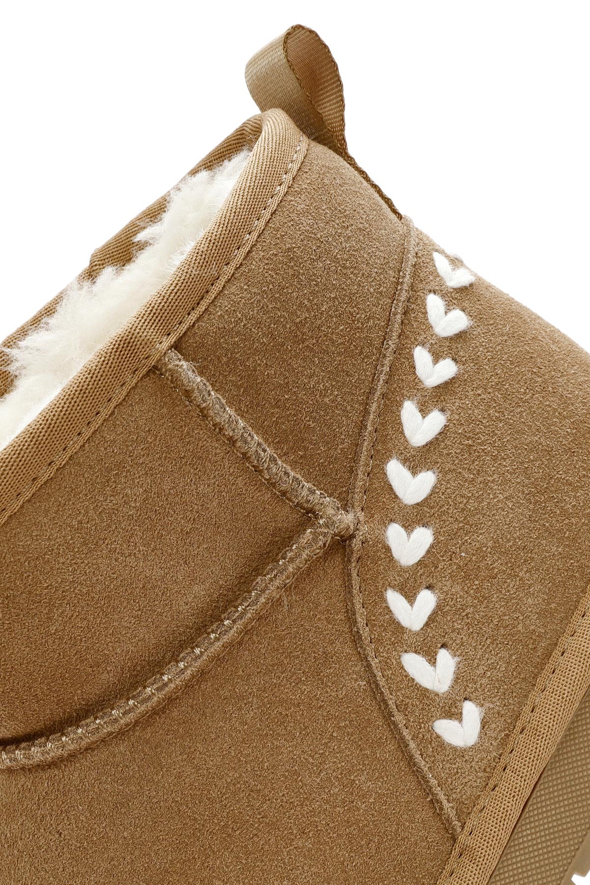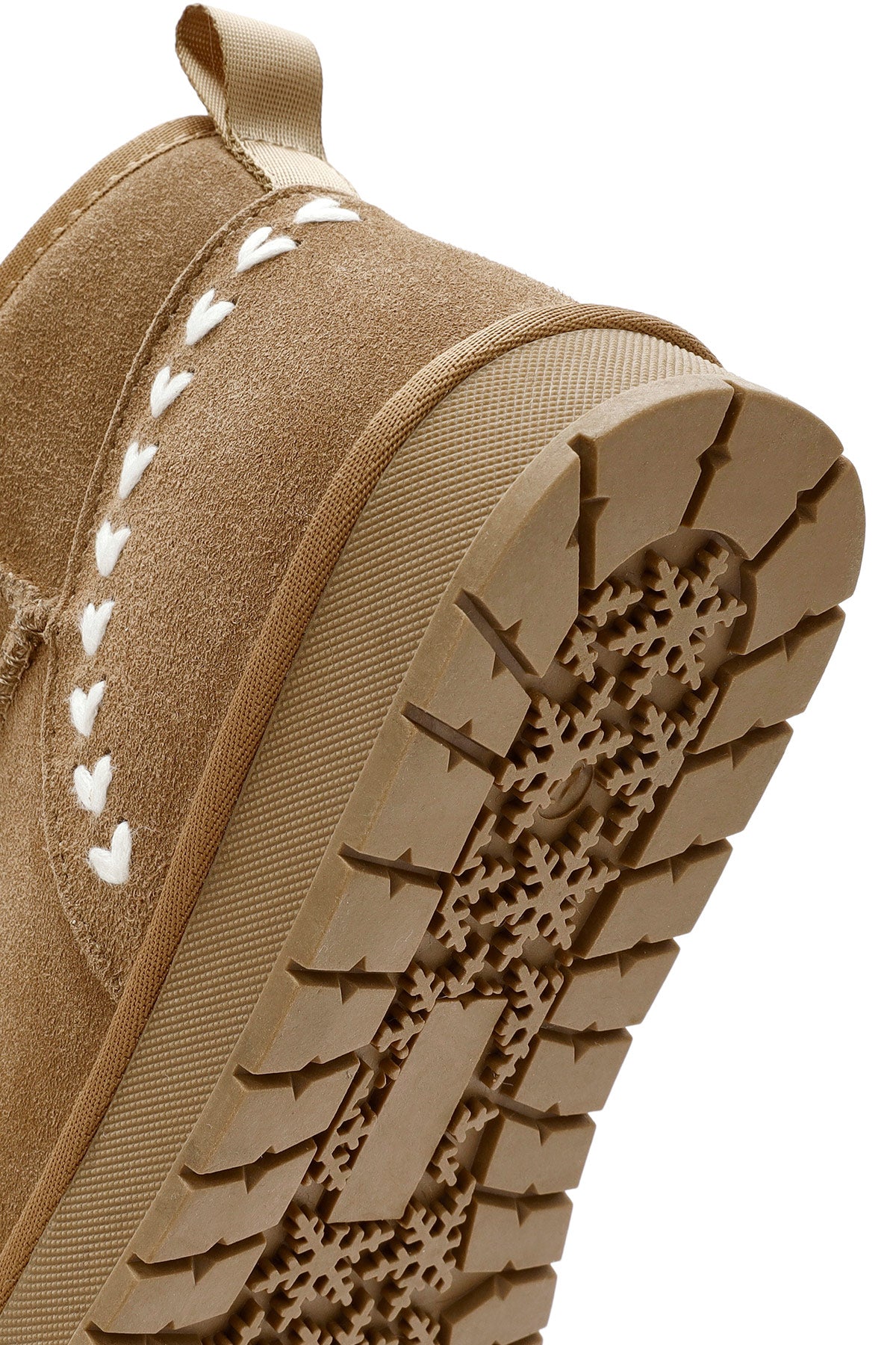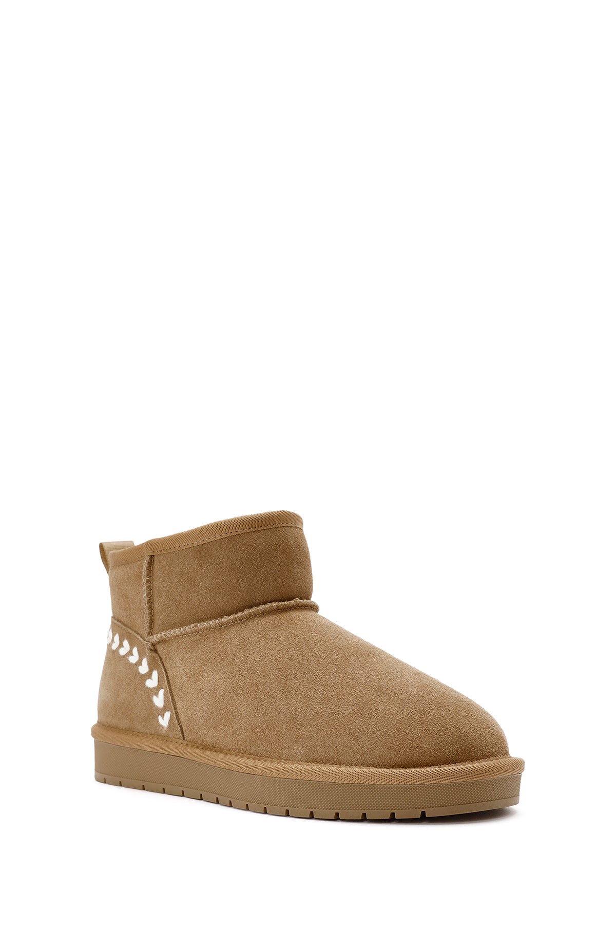 Kış sezonunun vazgeçilmez parçalarından olan camel rengi süet deri bot, sıcacık tasarımı ve şık detaylarıyla öne çıkıyor. 2,5 cm yüksekliğindeki topuğu ile rahat bir kullanım sunarken, suni kürk iç astarı sayesinde soğuk kış günlerinde ayaklarınızı sıcak tutuyor. Arkasındaki kalp desenleri ile feminen bir dokunuş katan model, casual görünümünüze zarif bir hava katıyor. Özellikle jean ve günlük kıyafetlerle mükemmel uyum sağlayan bot, sonbahar ve kış aylarında günlük kullanım için ideal bir tercih sunuyor. Ürün kodu: 24WFD478110