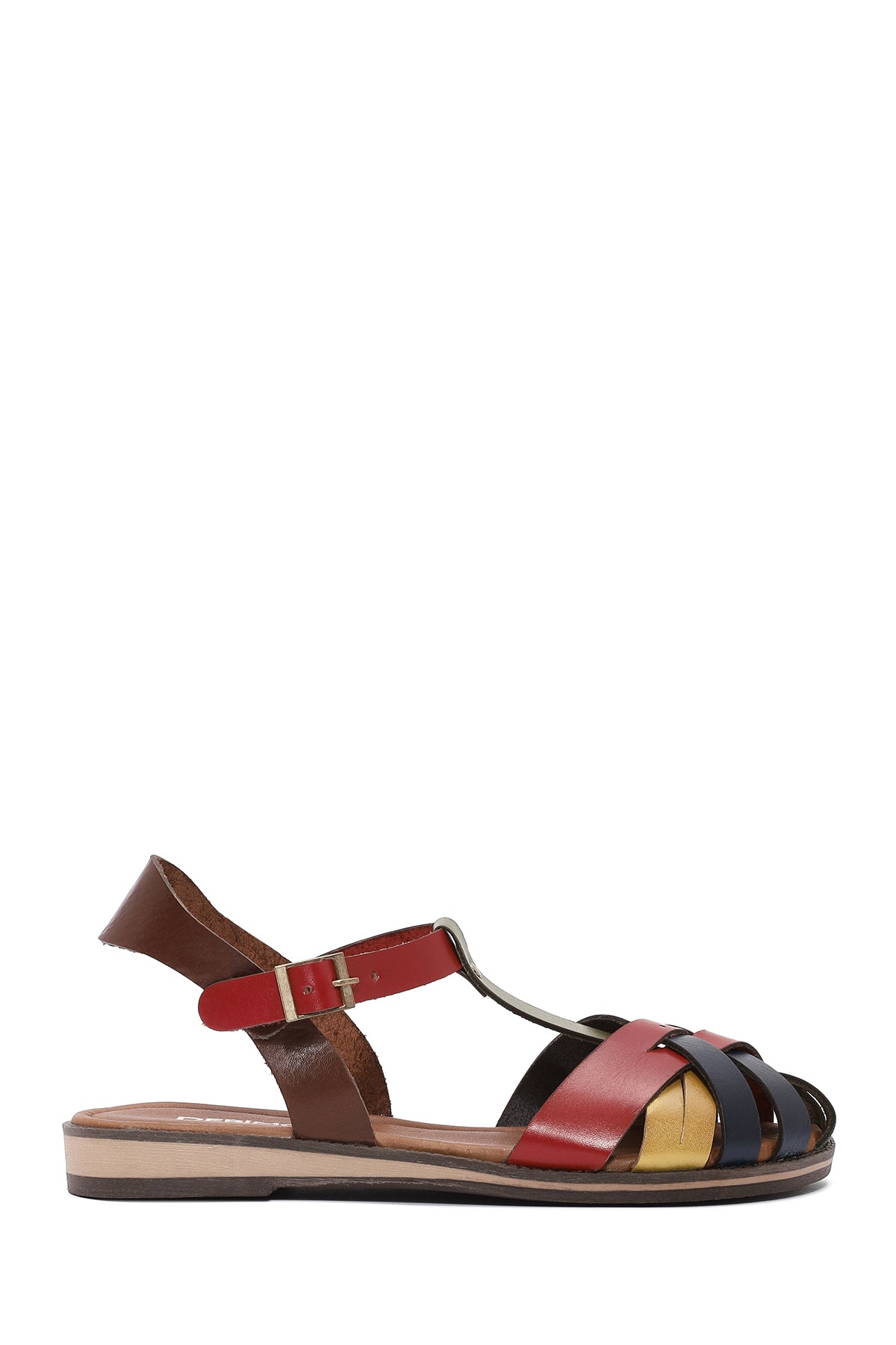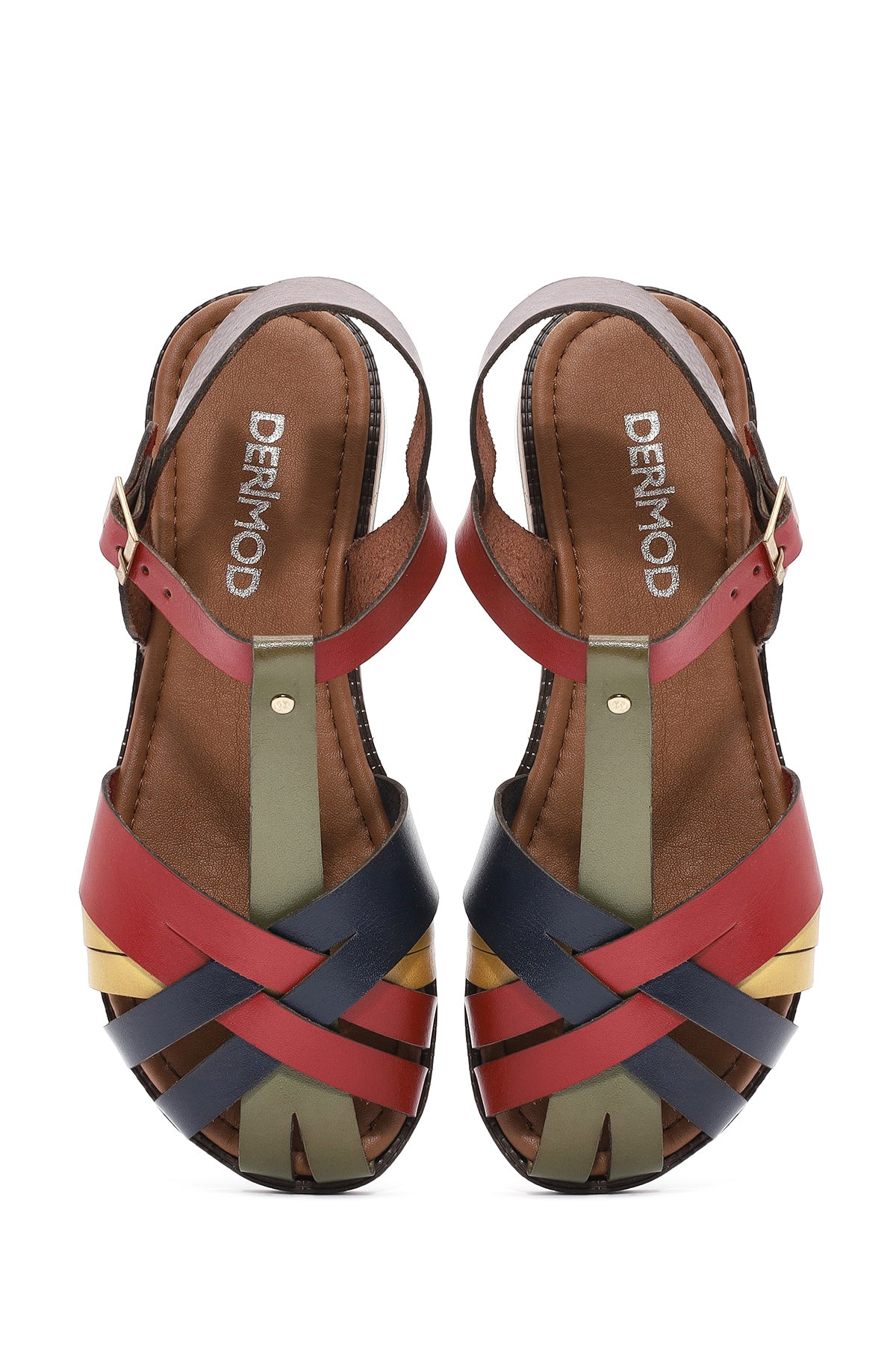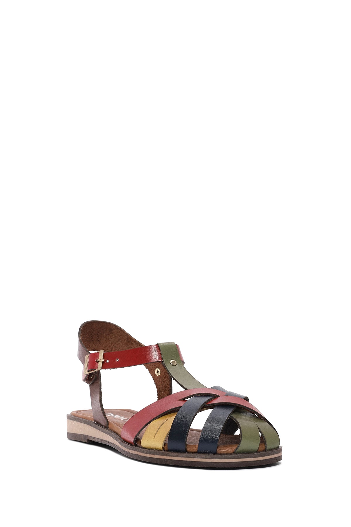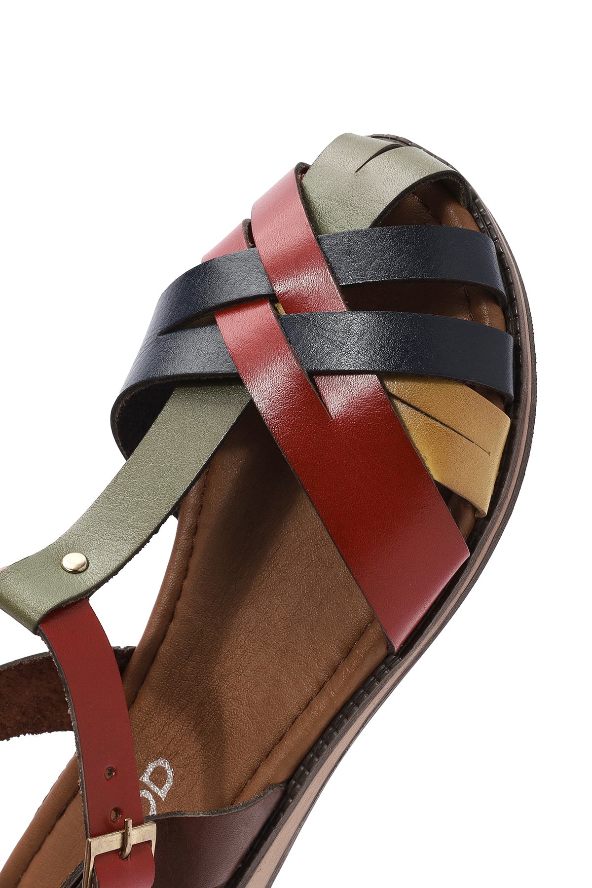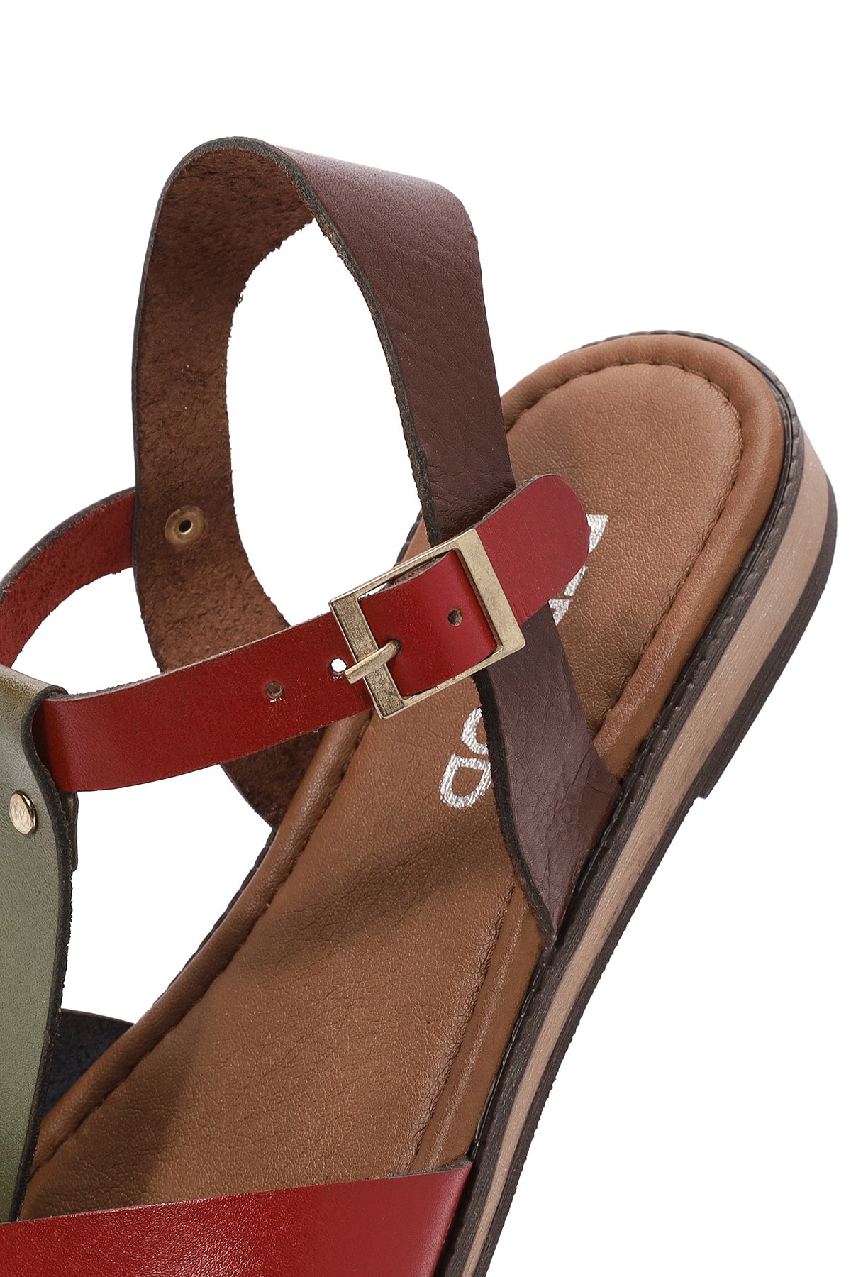 Kadın Çok Renkli Tokalı Deri Bodrum Sandalet