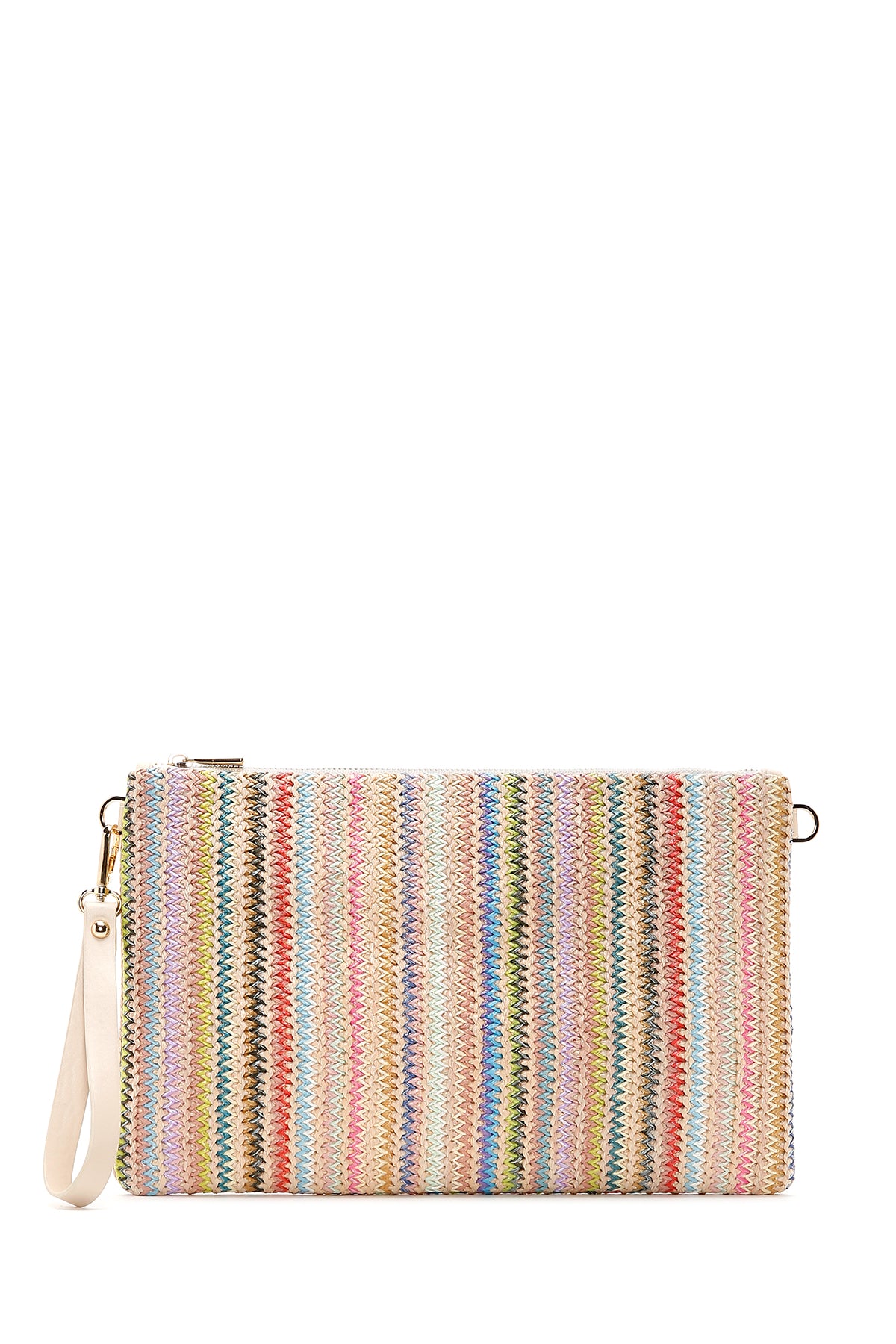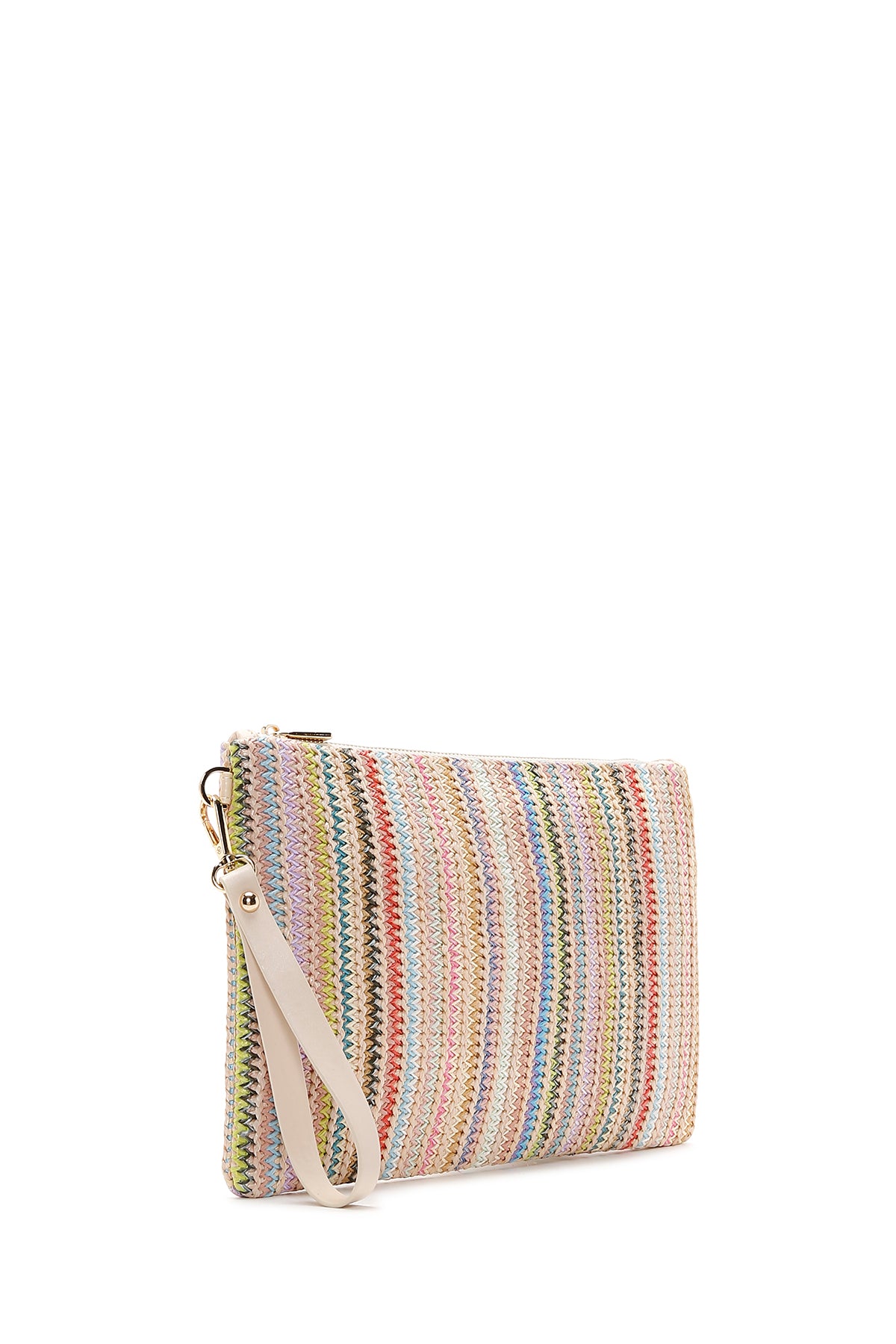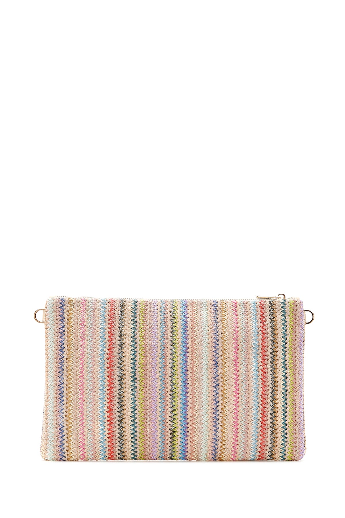 Kadın Çok Renkli Uzun Zincir Askılı Hasır Portföy Çanta