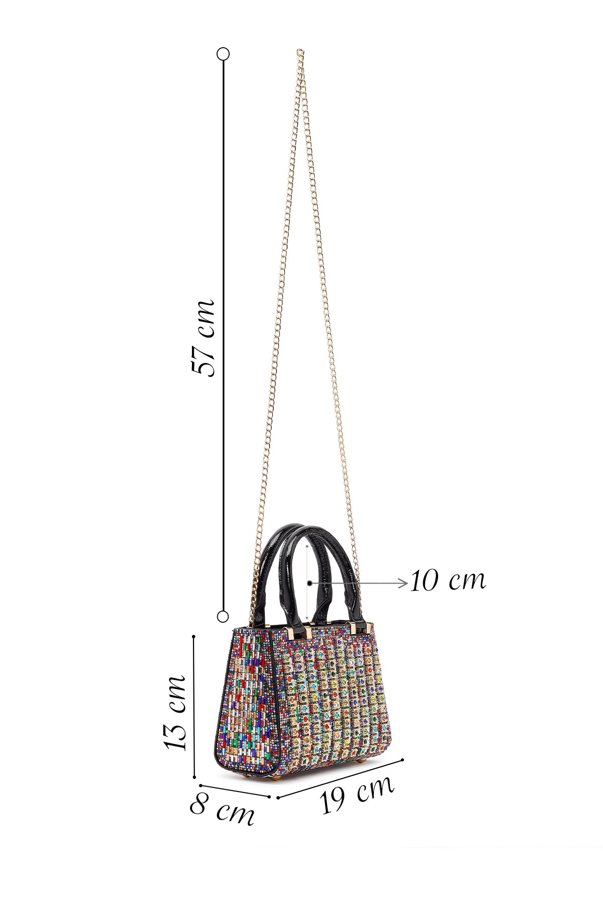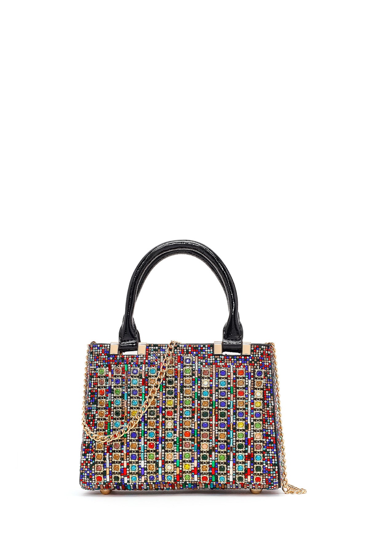Kadın Çok Renkli Uzun Zincir Askılı Taşlı Mini Abiye Çanta