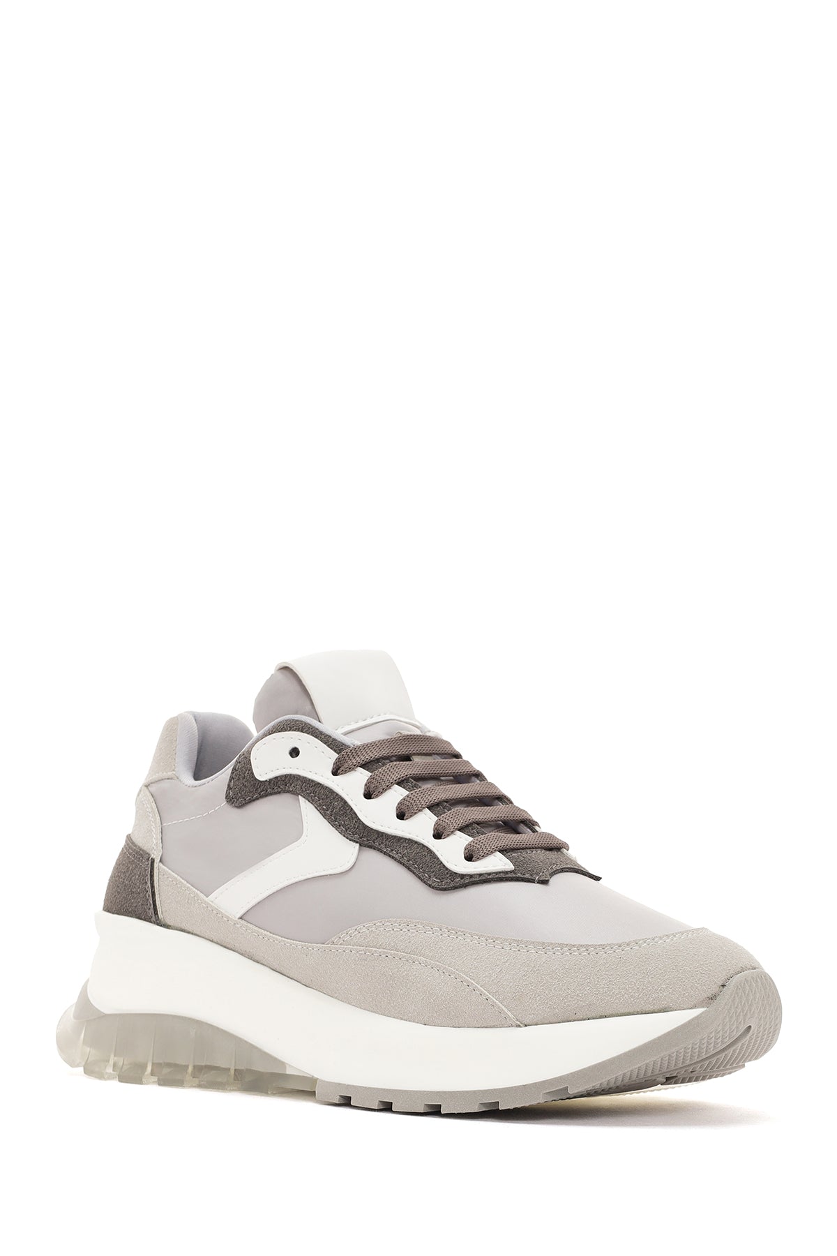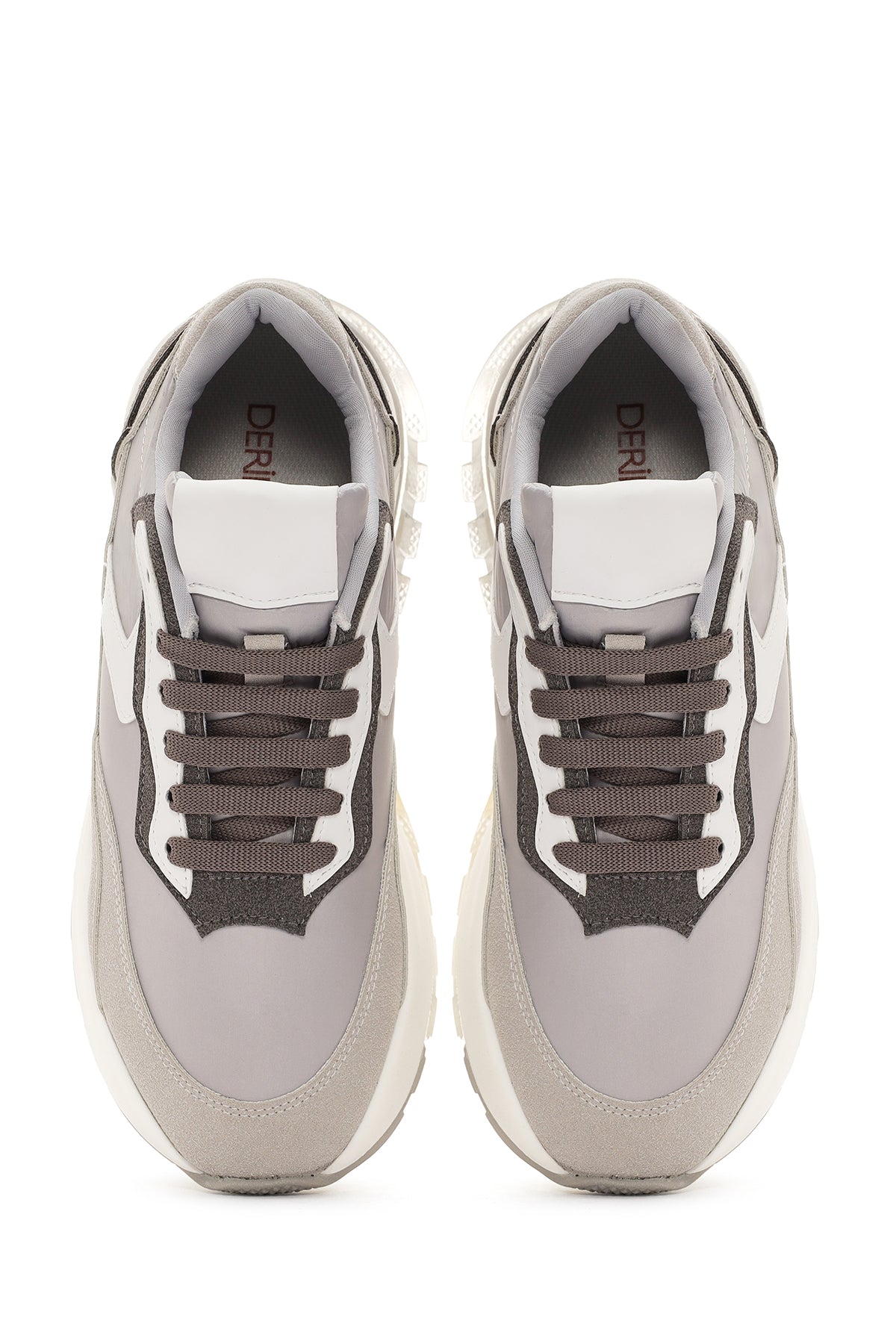 Kadın Gri Bağcıklı Kalın Tabanlı Spor Sneaker
