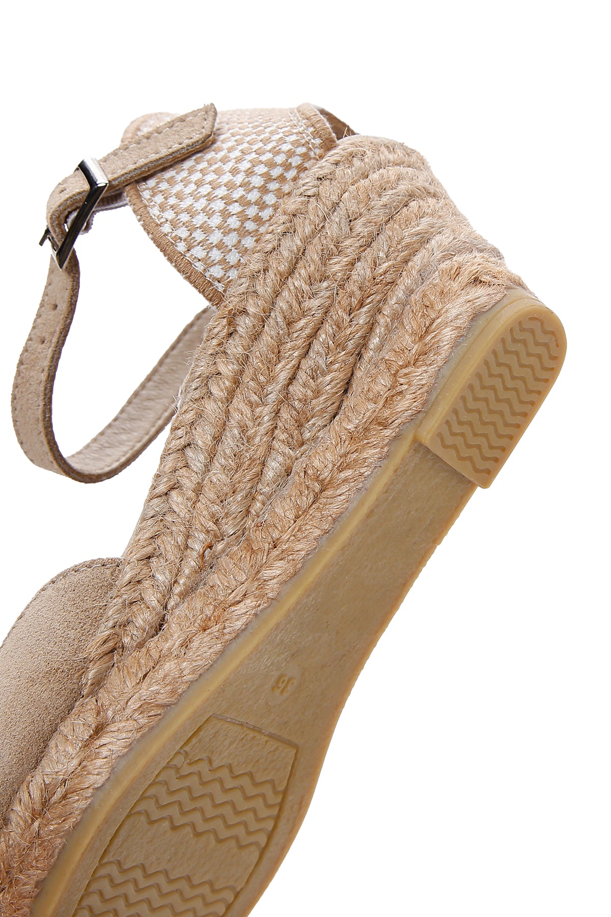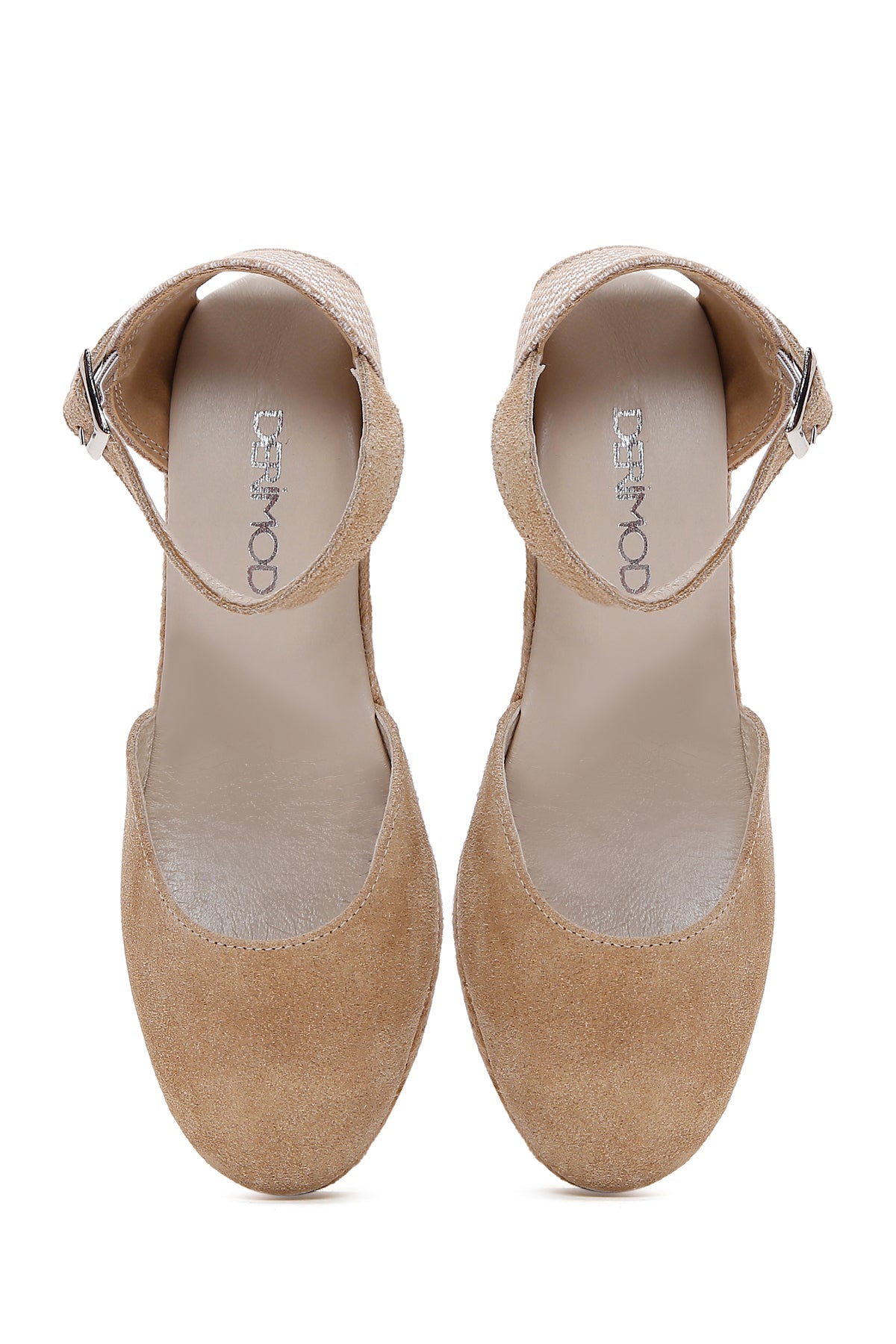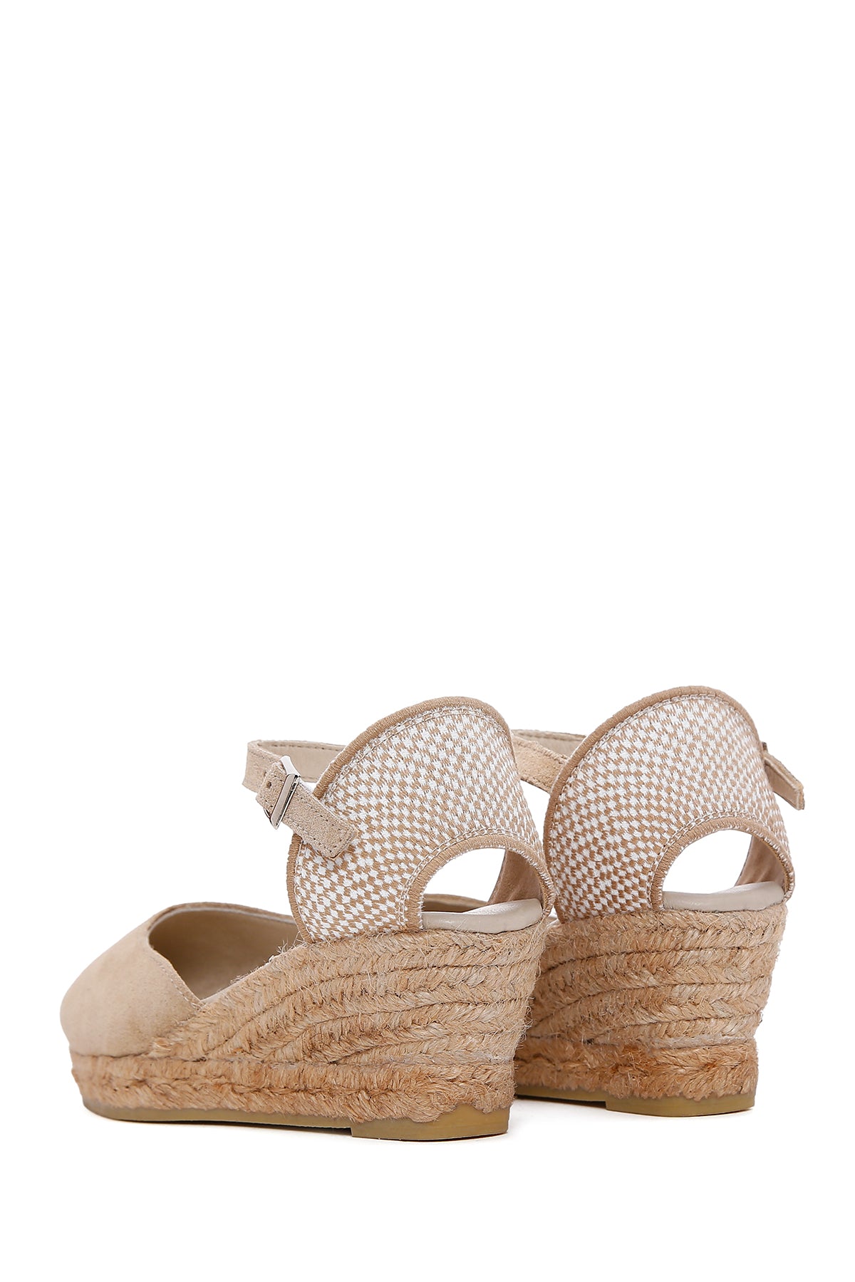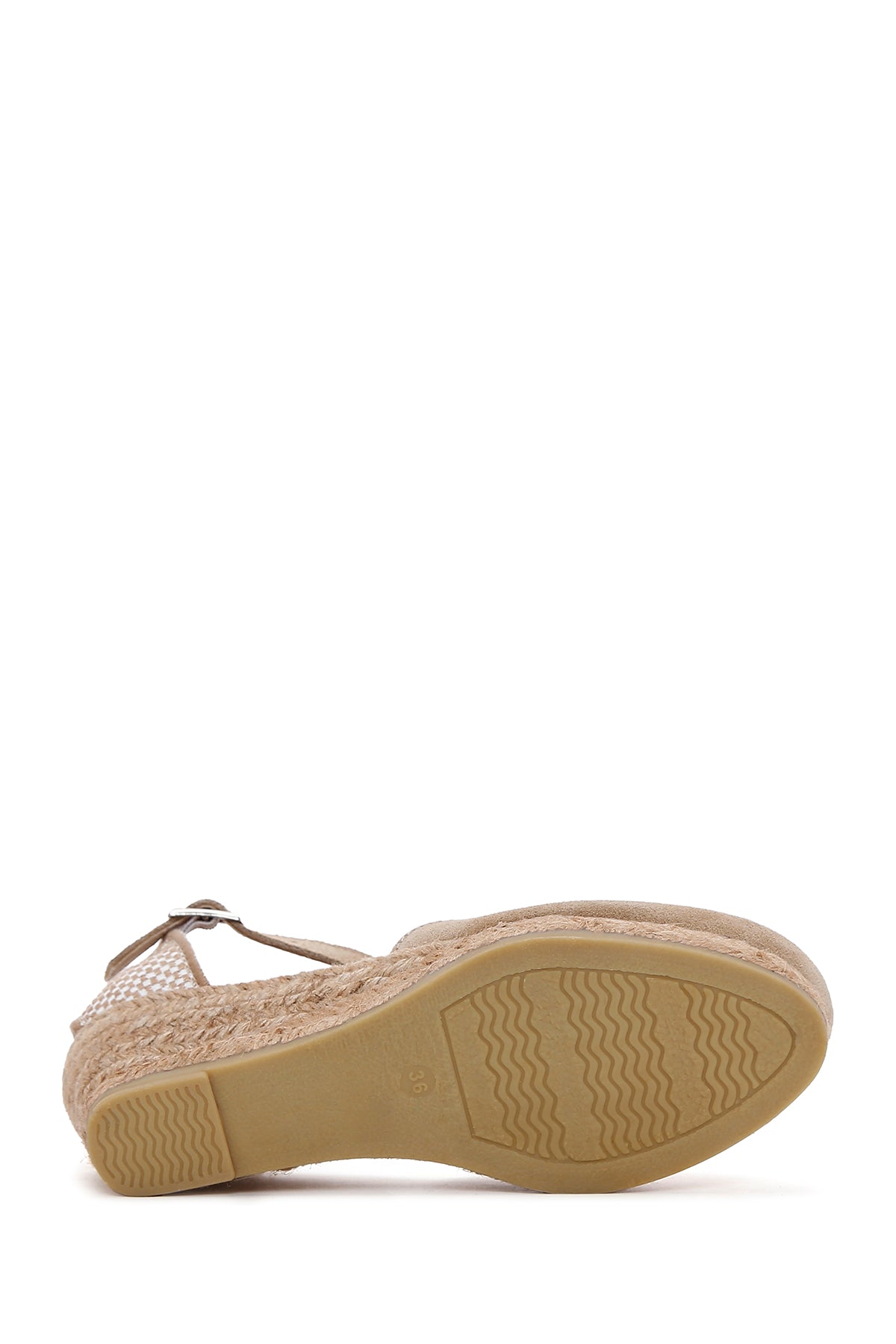 Kadın Gri Bilekten Bantlı Dolgu Topuklu Süet Deri Espadril