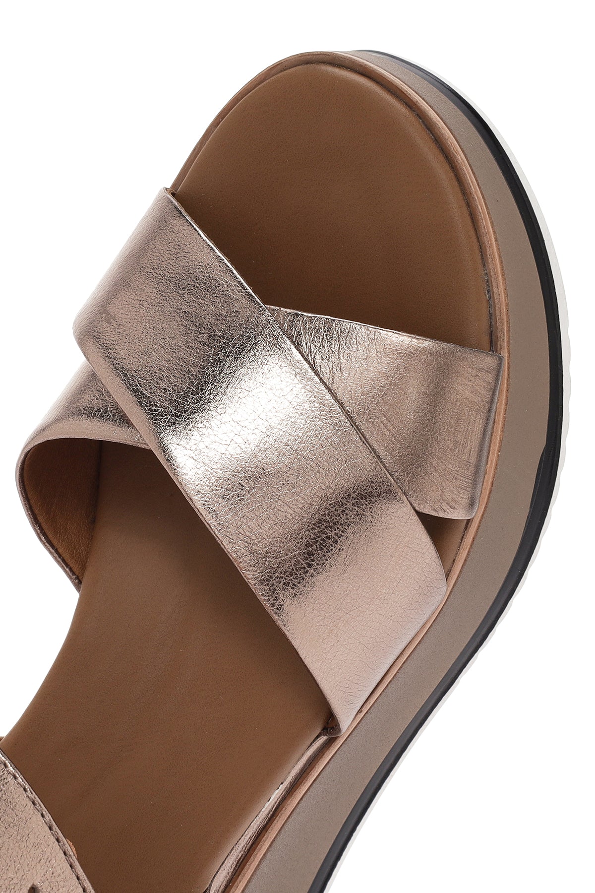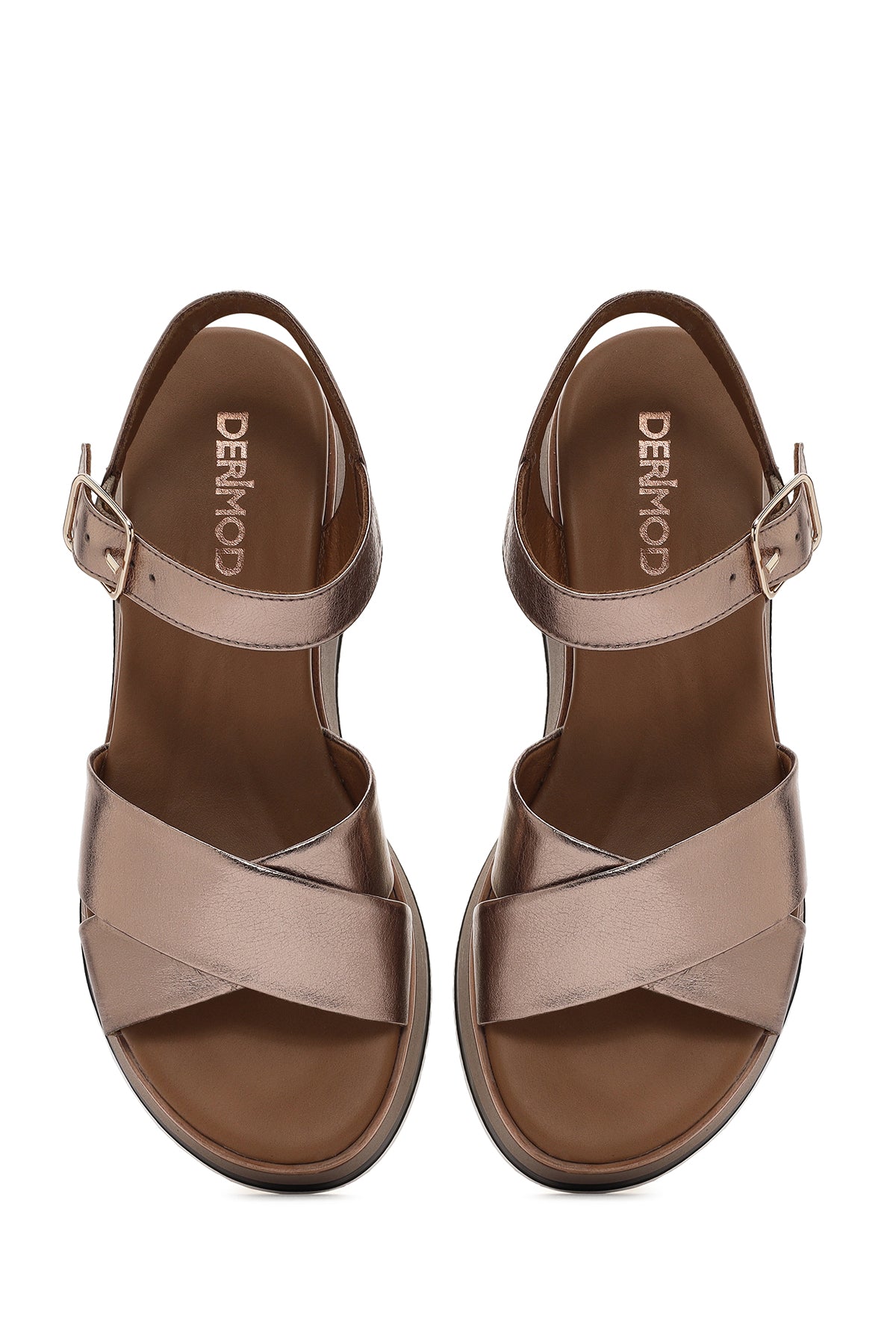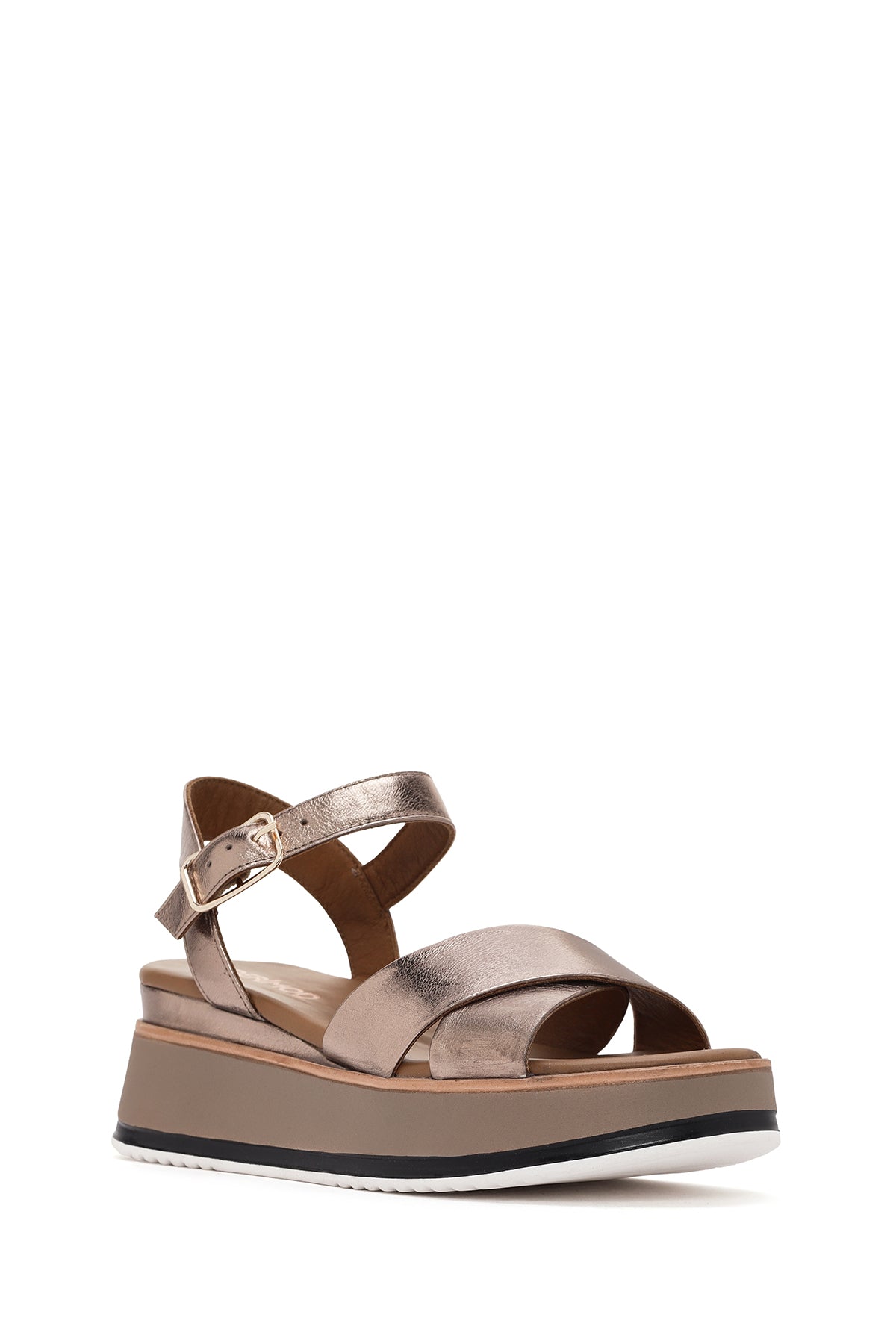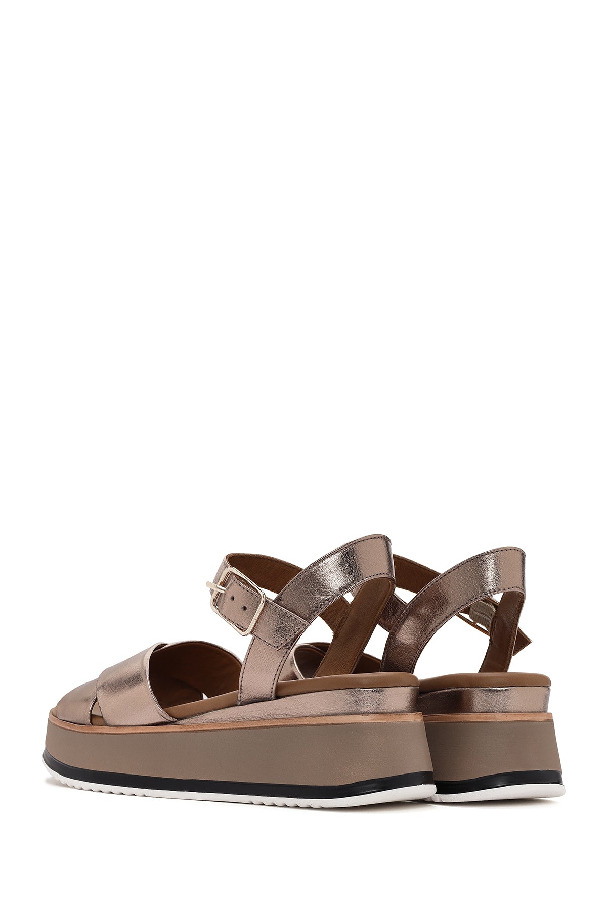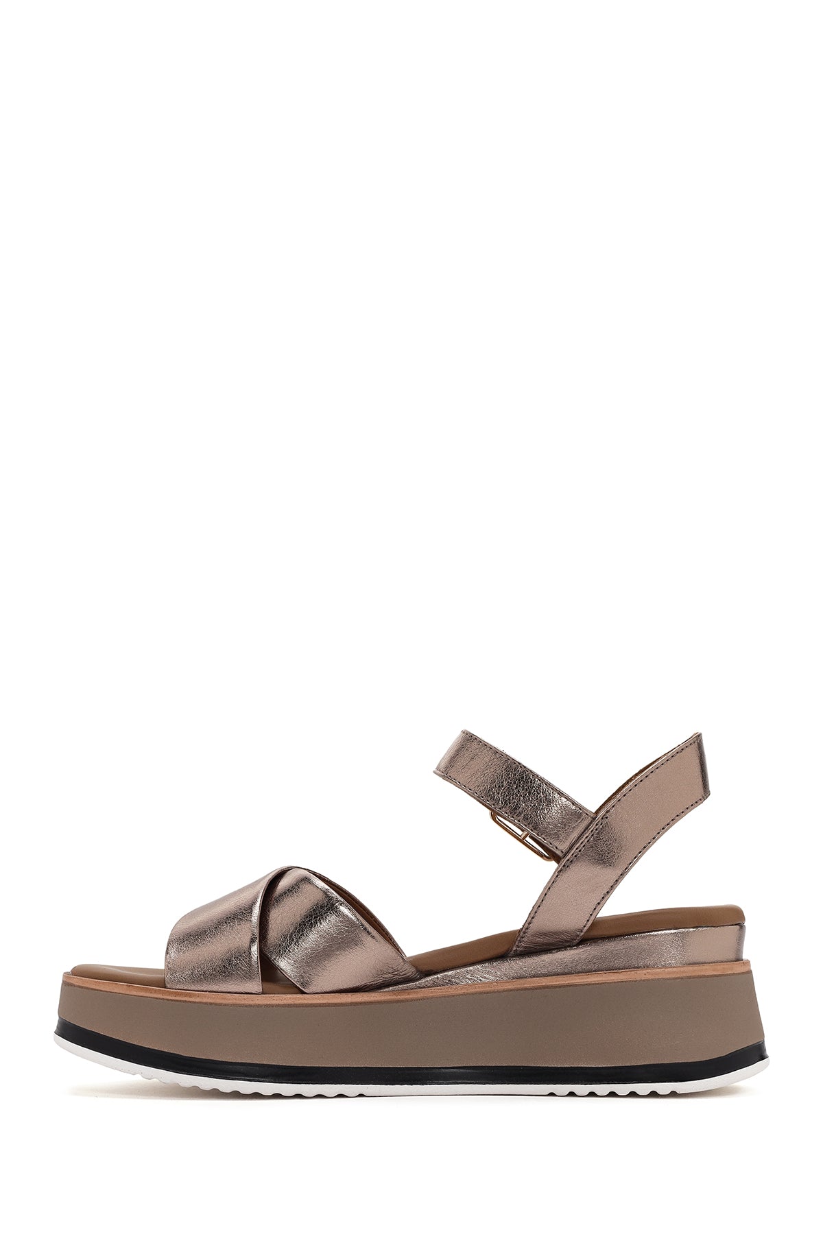 Kadın Gri Bilekten Bantlı Kalın Tabanlı Deri Sandalet