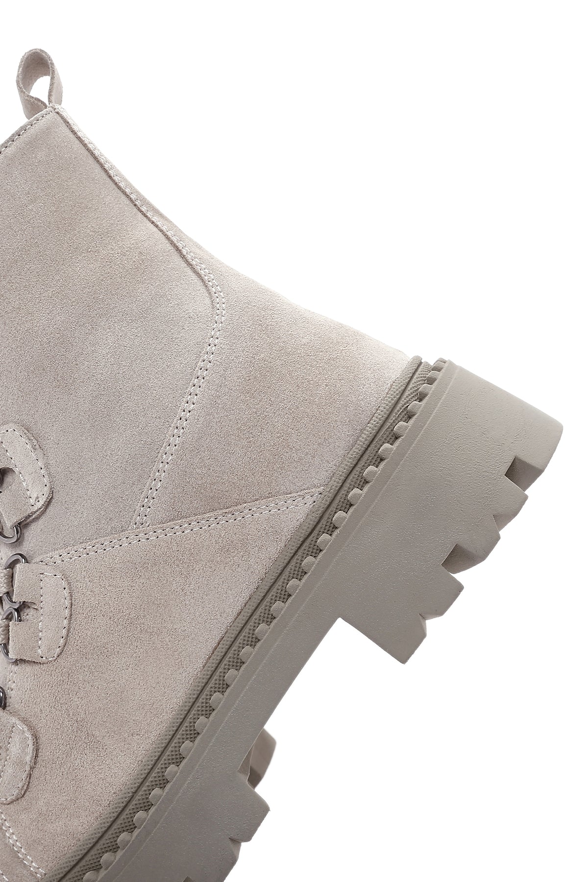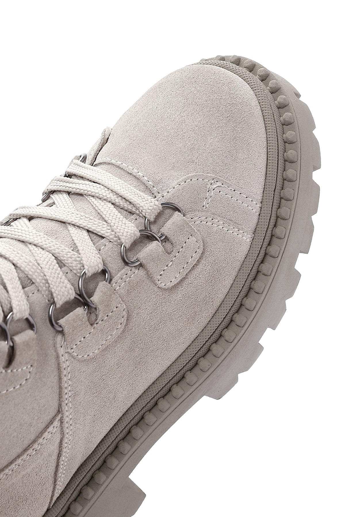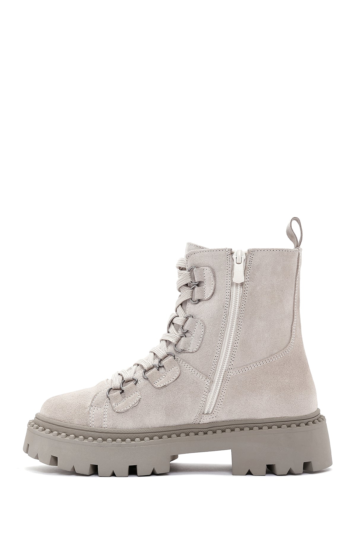Derimod’un Zarif ve Şıklığı bir arada sunan Kadın Gri Süet Deri Fermuarlı Postal Bot ile tarzınızı konuşturun. Ürünün kodu: 23WFD420710 T9