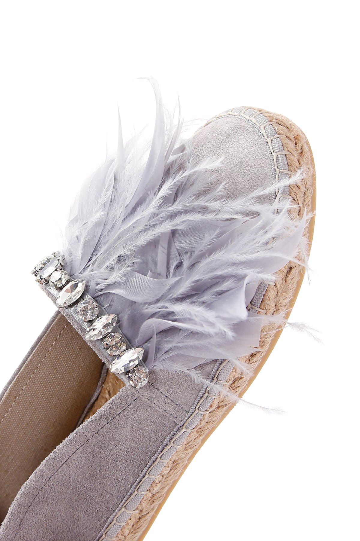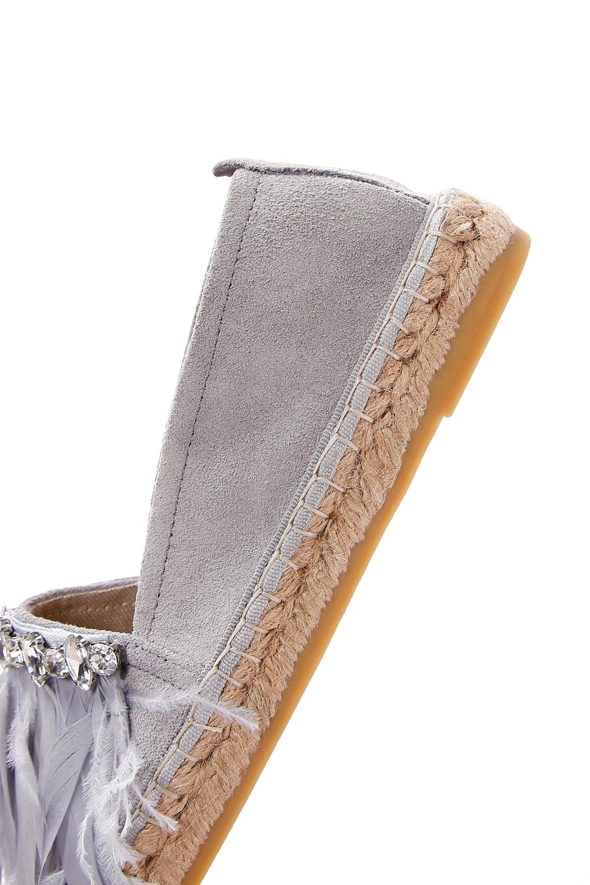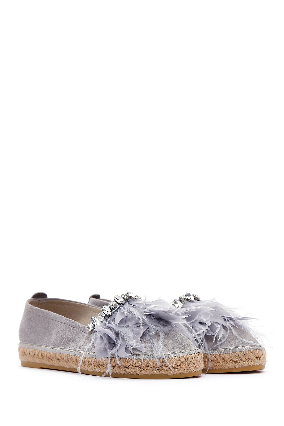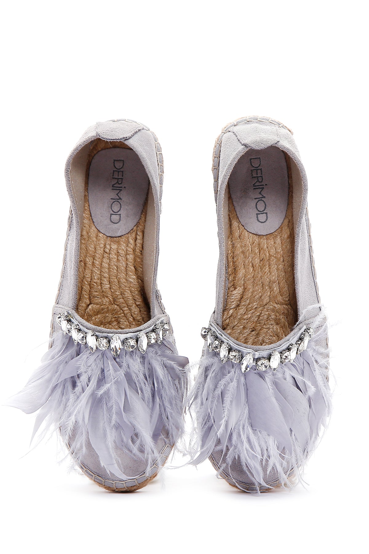 Derimod’un Zarif ve Şıklığı bir arada sunan Kadın Gri Süet Deri Tüylü Taşlı Hasır Taban Espadril ile tarzınızı konuşturun. Ürünün kodu: 23SFD205810 13