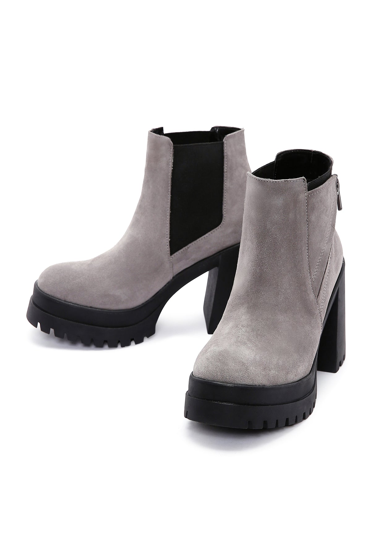 Derimod’un Zarif ve Şıklığı bir arada sunan Kadın Gri Süet Deri Yüksek Topuklu Platformlu Bot ile tarzınızı konuşturun. Ürünün kodu: 23WFD192210 13