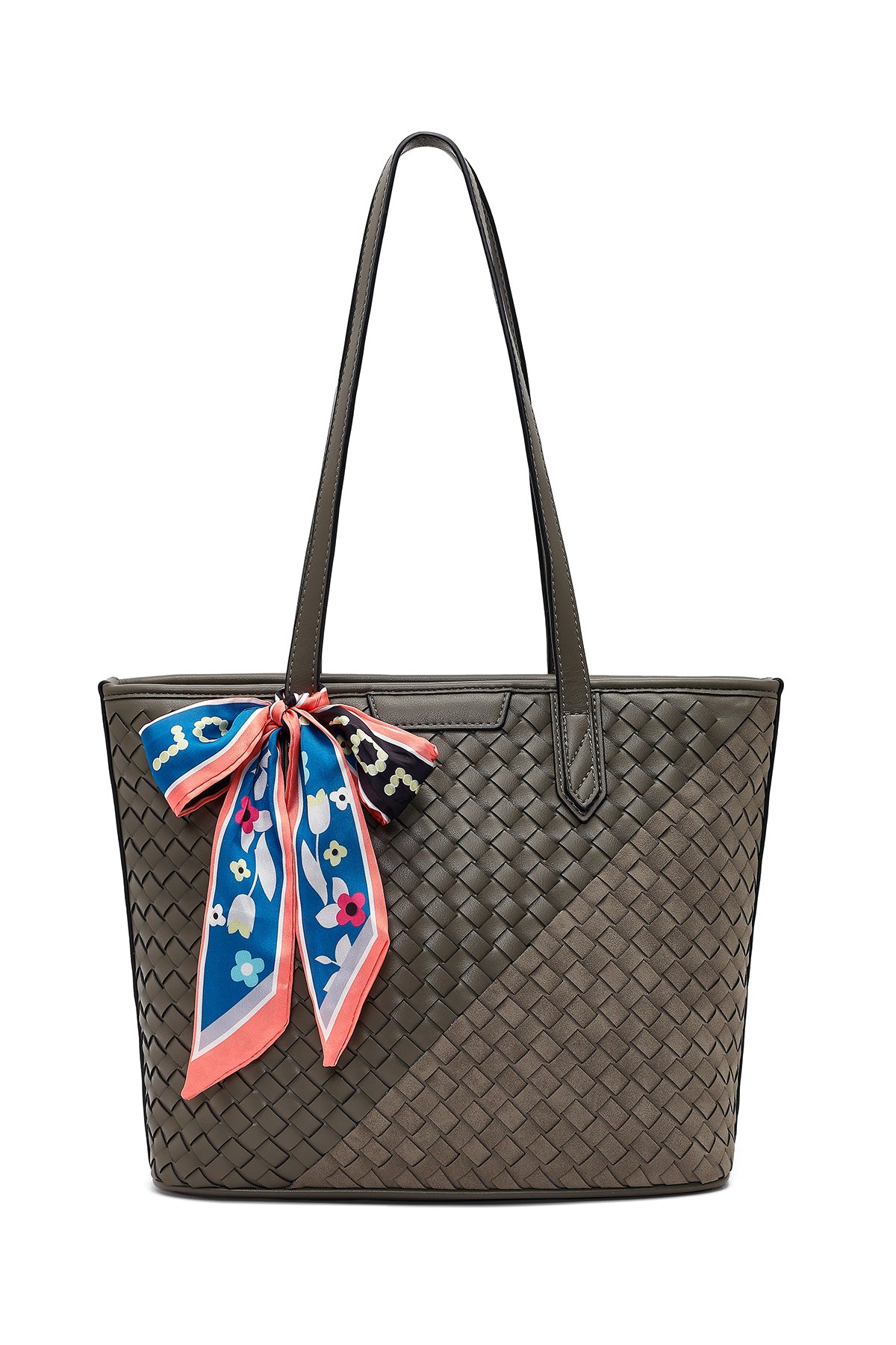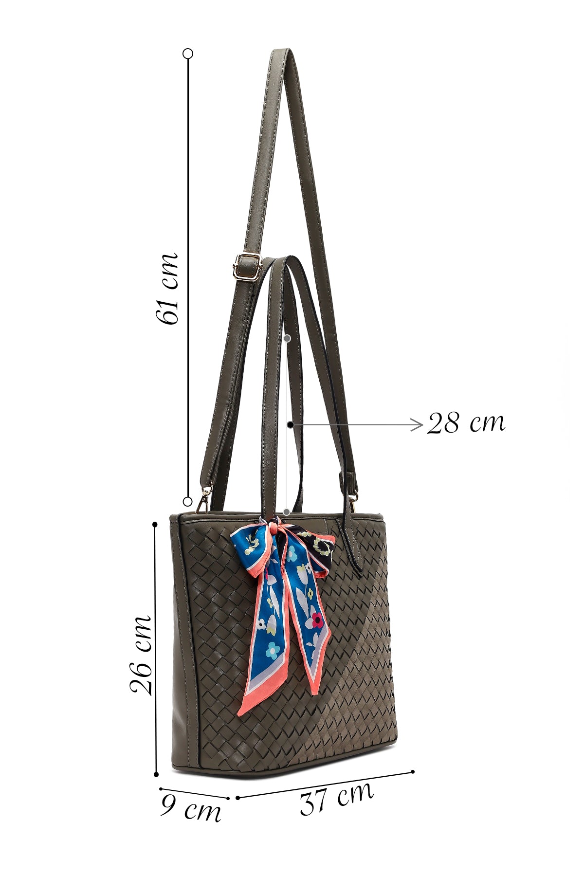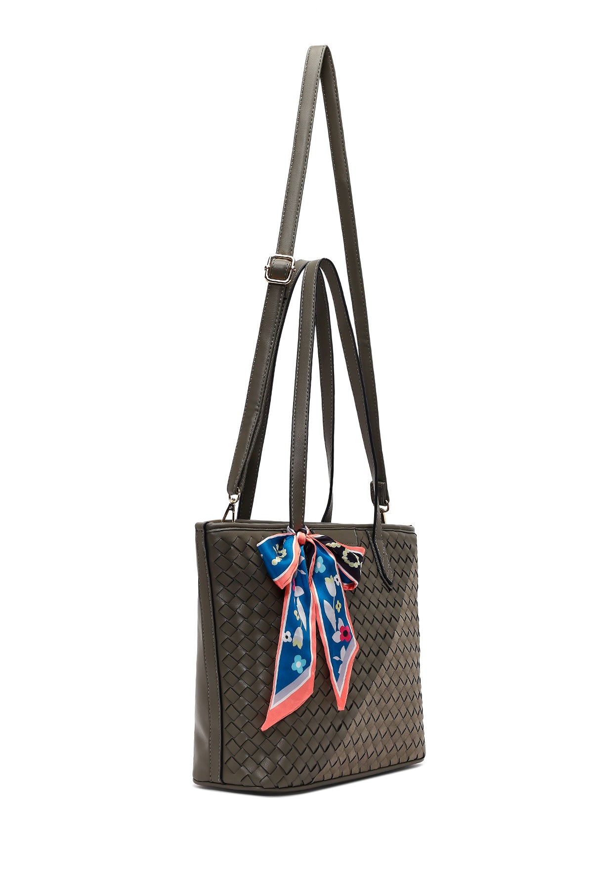 Kadın Gri Uzun Askılı Aksesuarlı Örgü Omuz Çantası