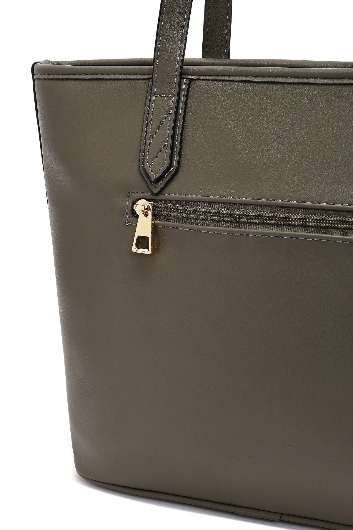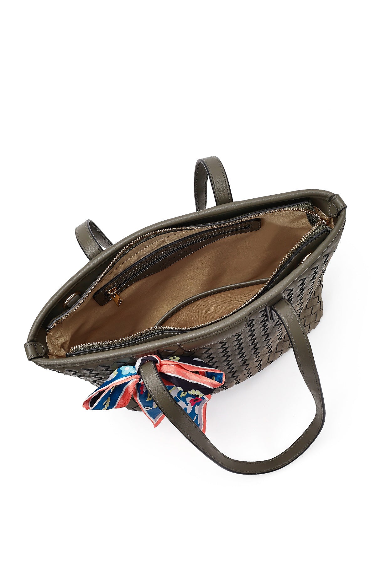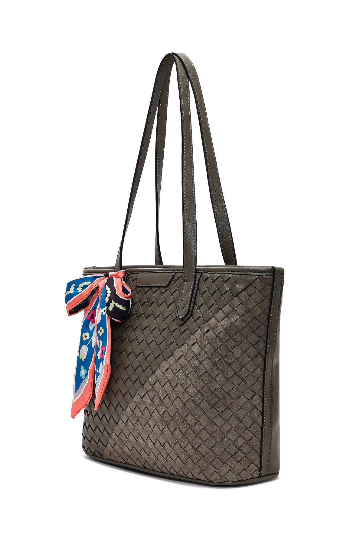 Kadın Gri Uzun Askılı Aksesuarlı Örgü Omuz Çantası