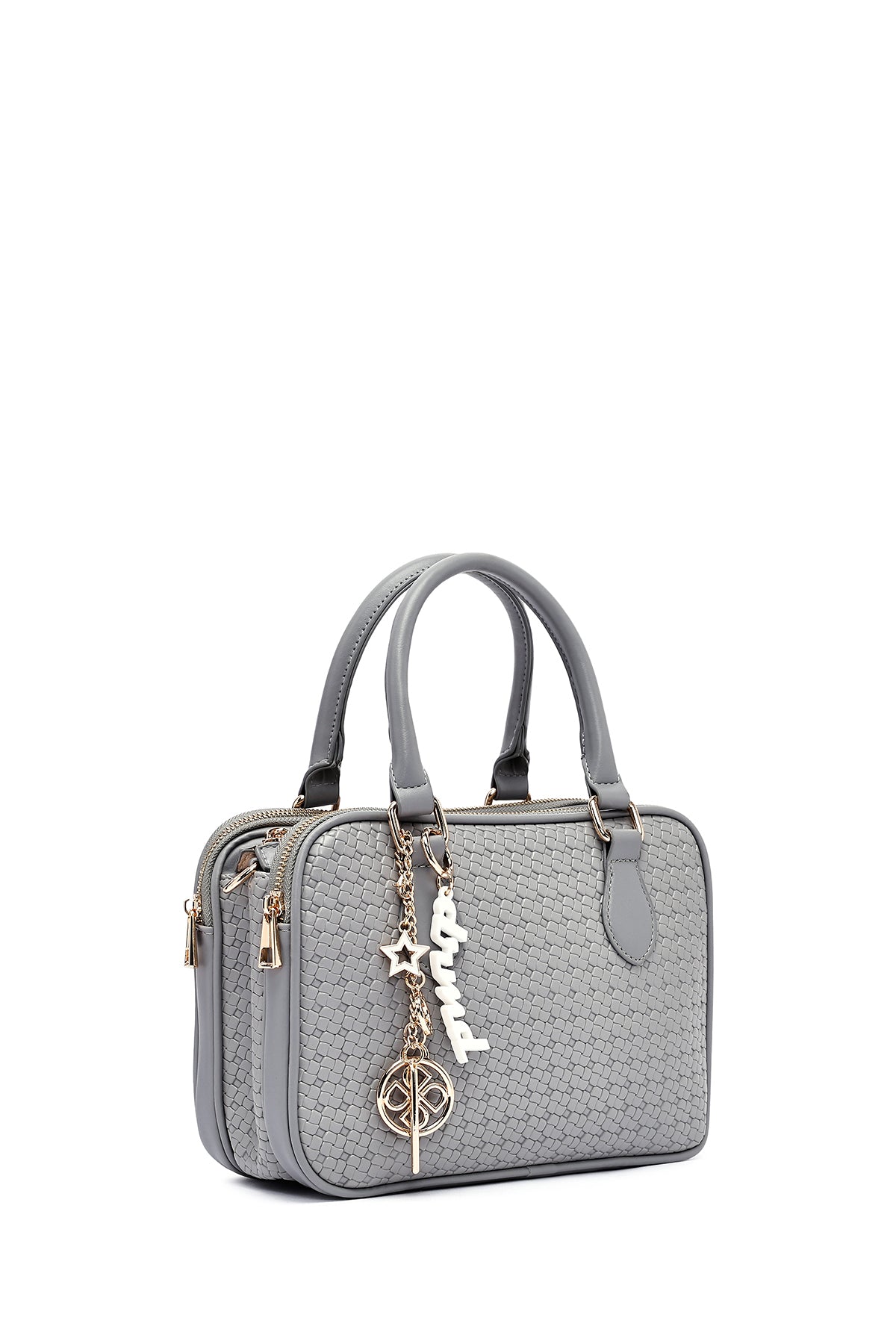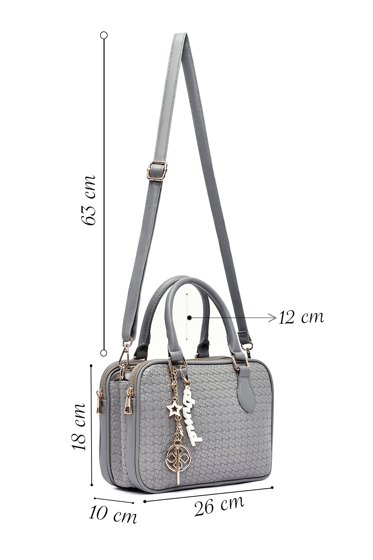 Kadın Gri Uzun Askılı Baskılı Klasik Kol Çantası