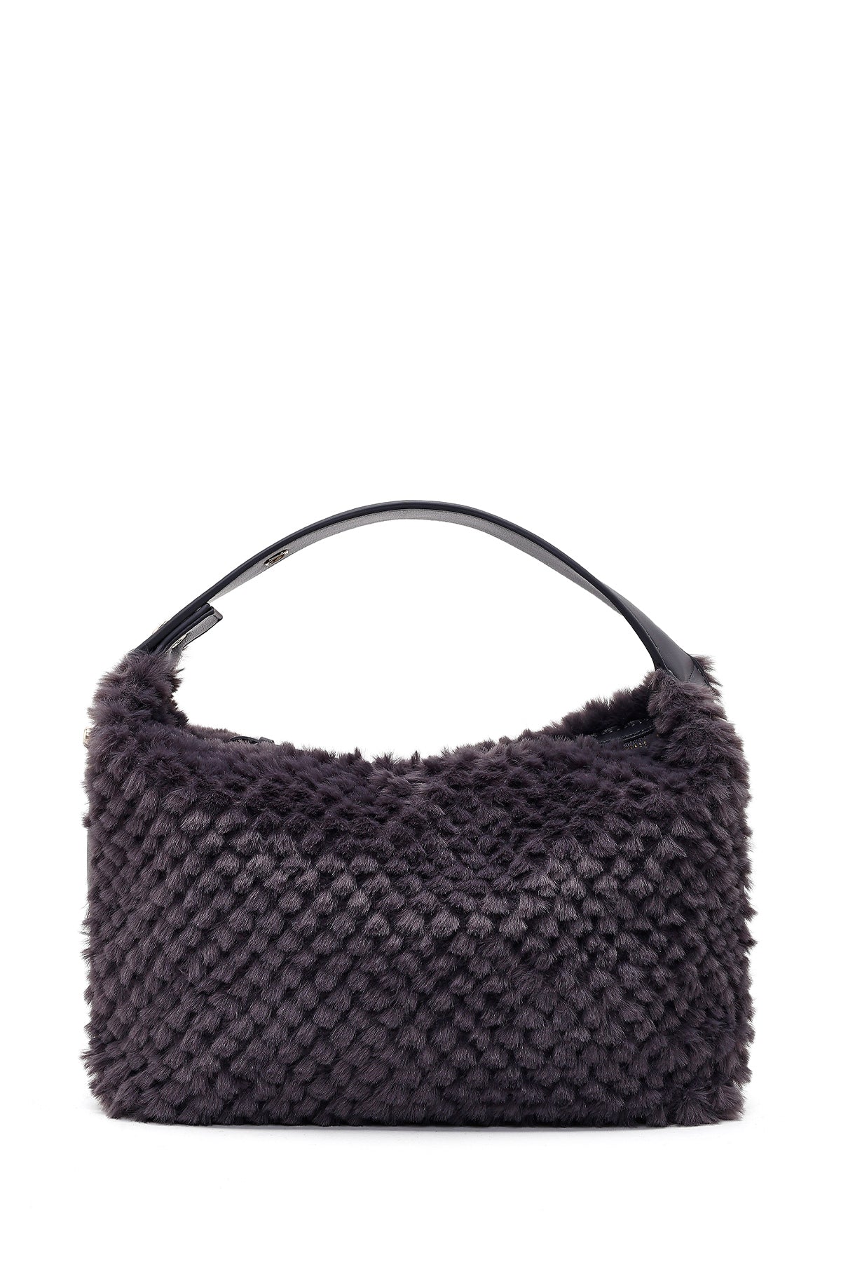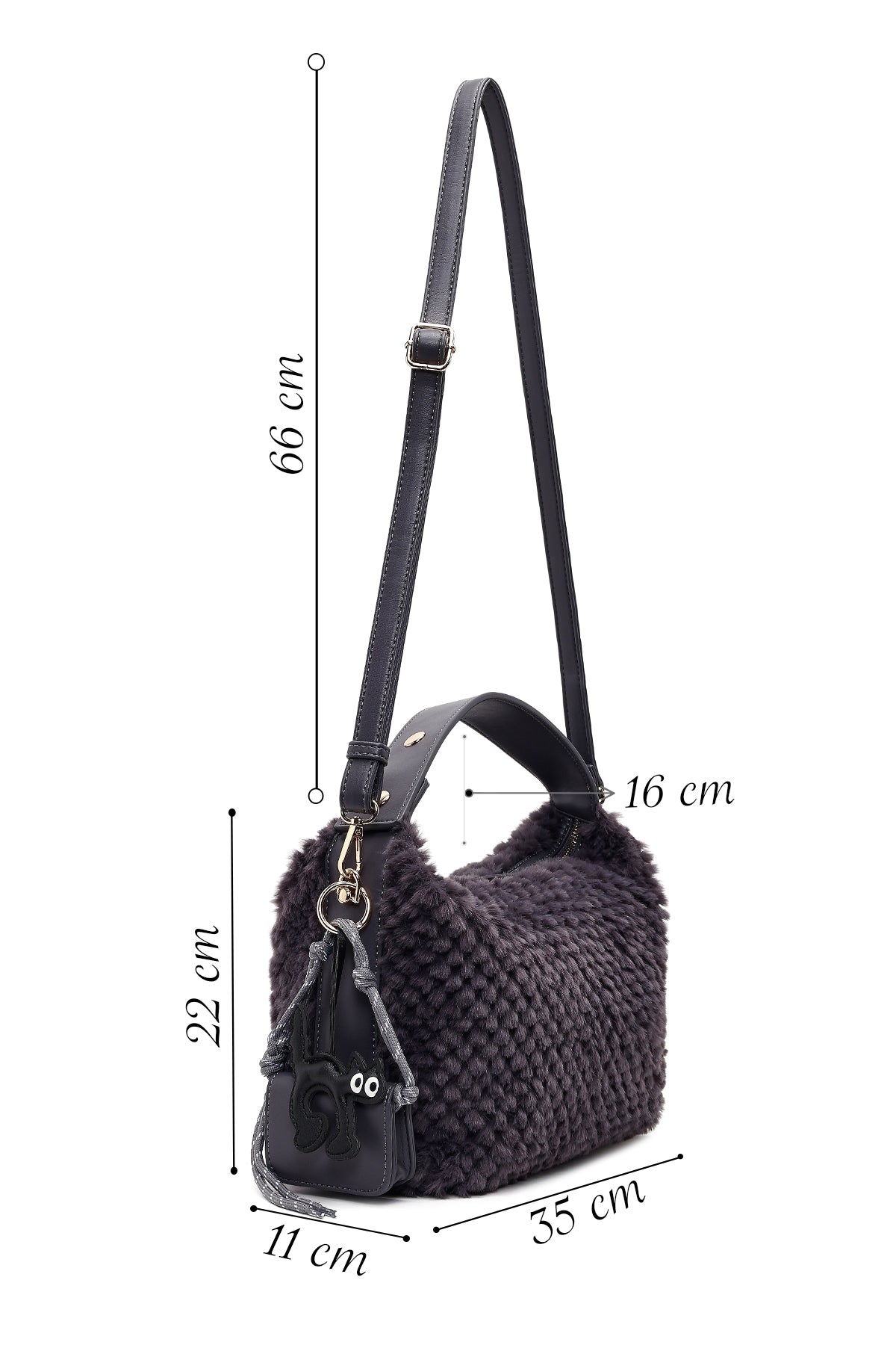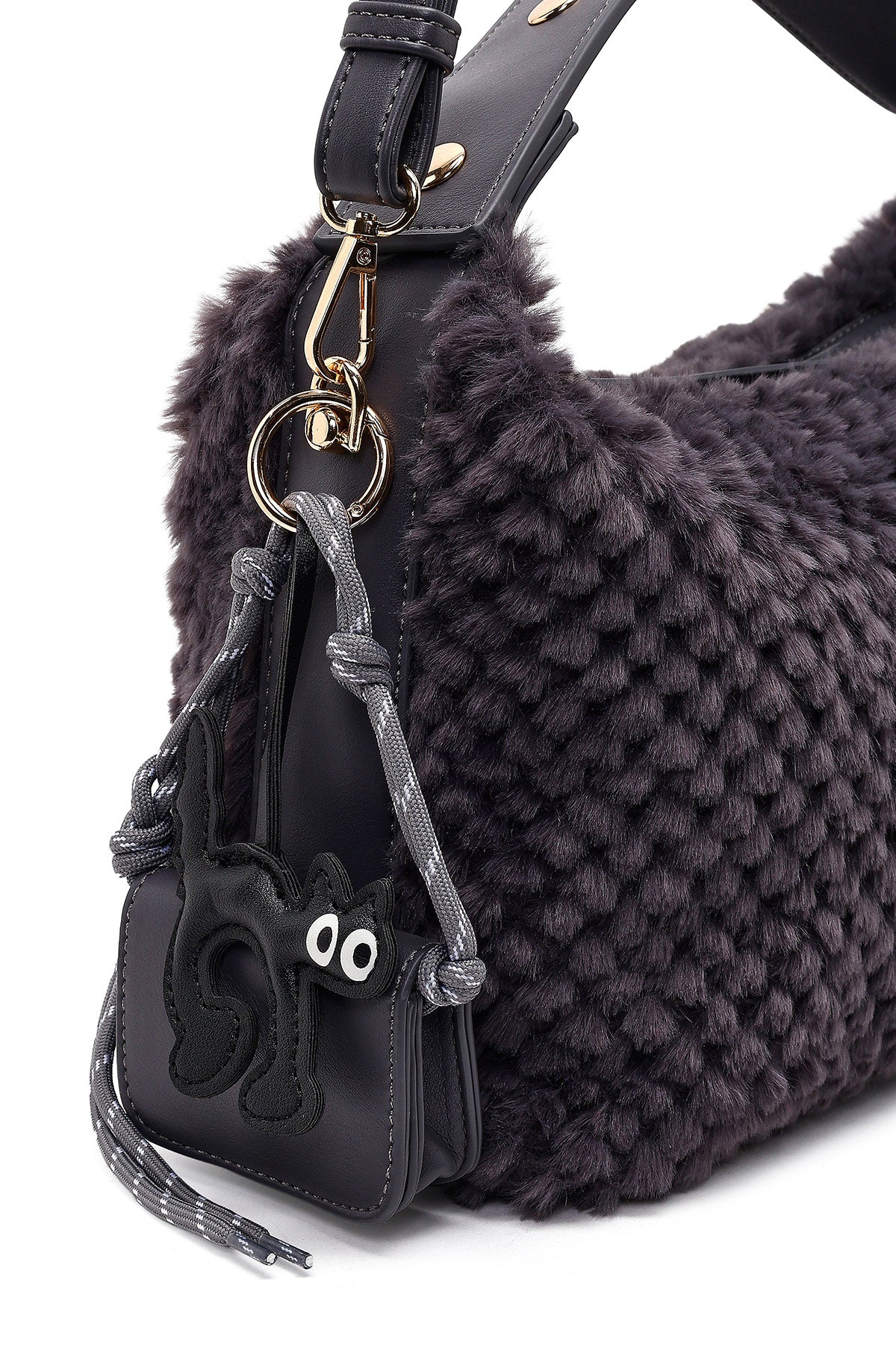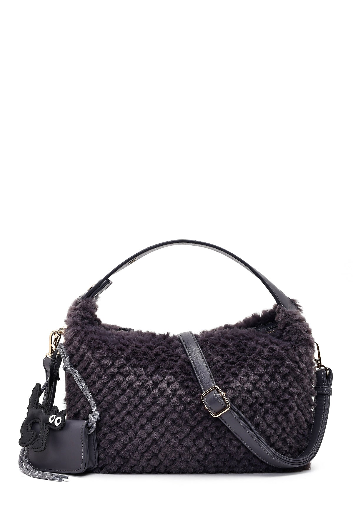 Kadın Gri Uzun Askılı Charmlı Peluş Omuz Çantası