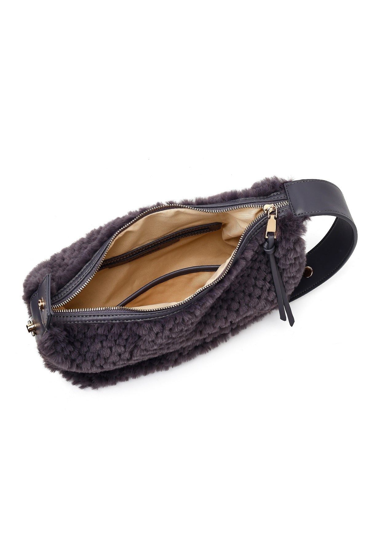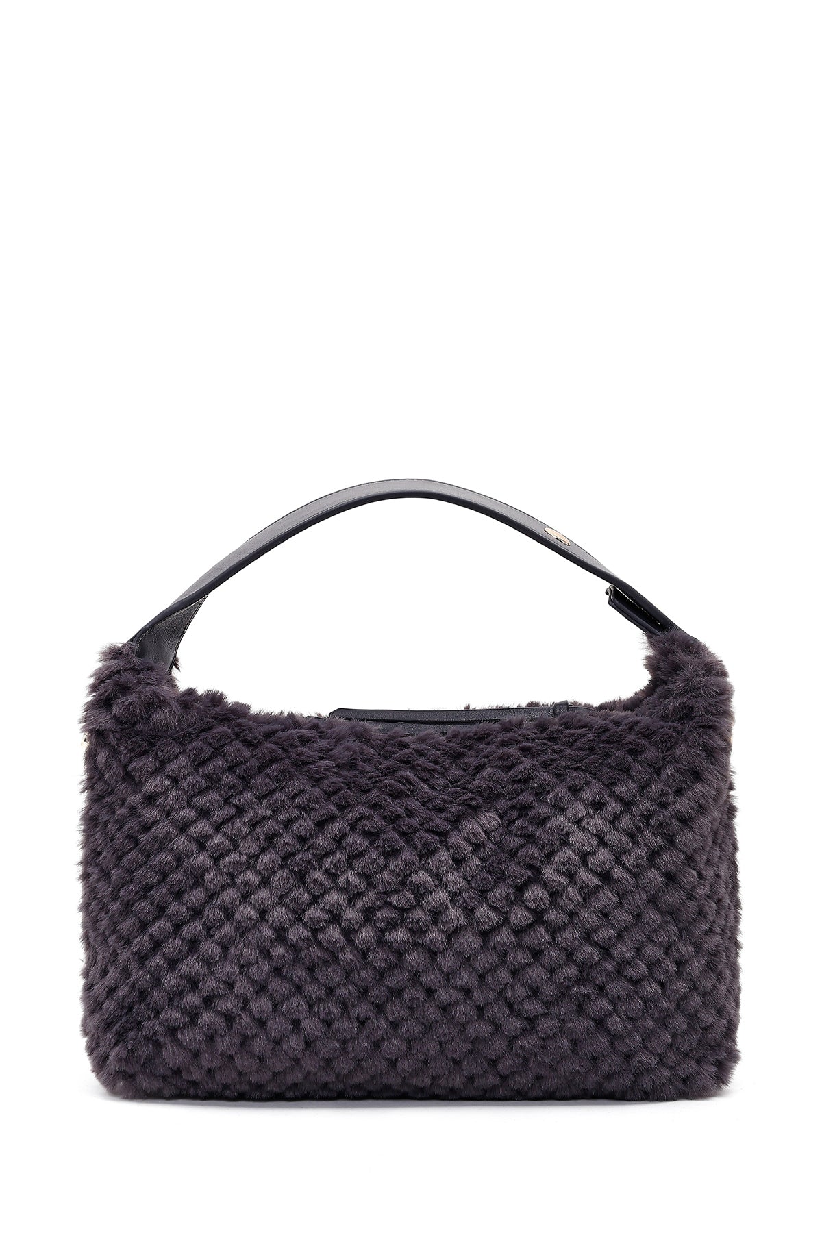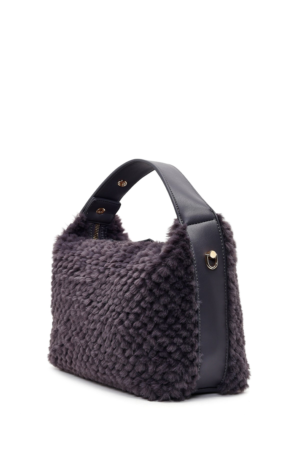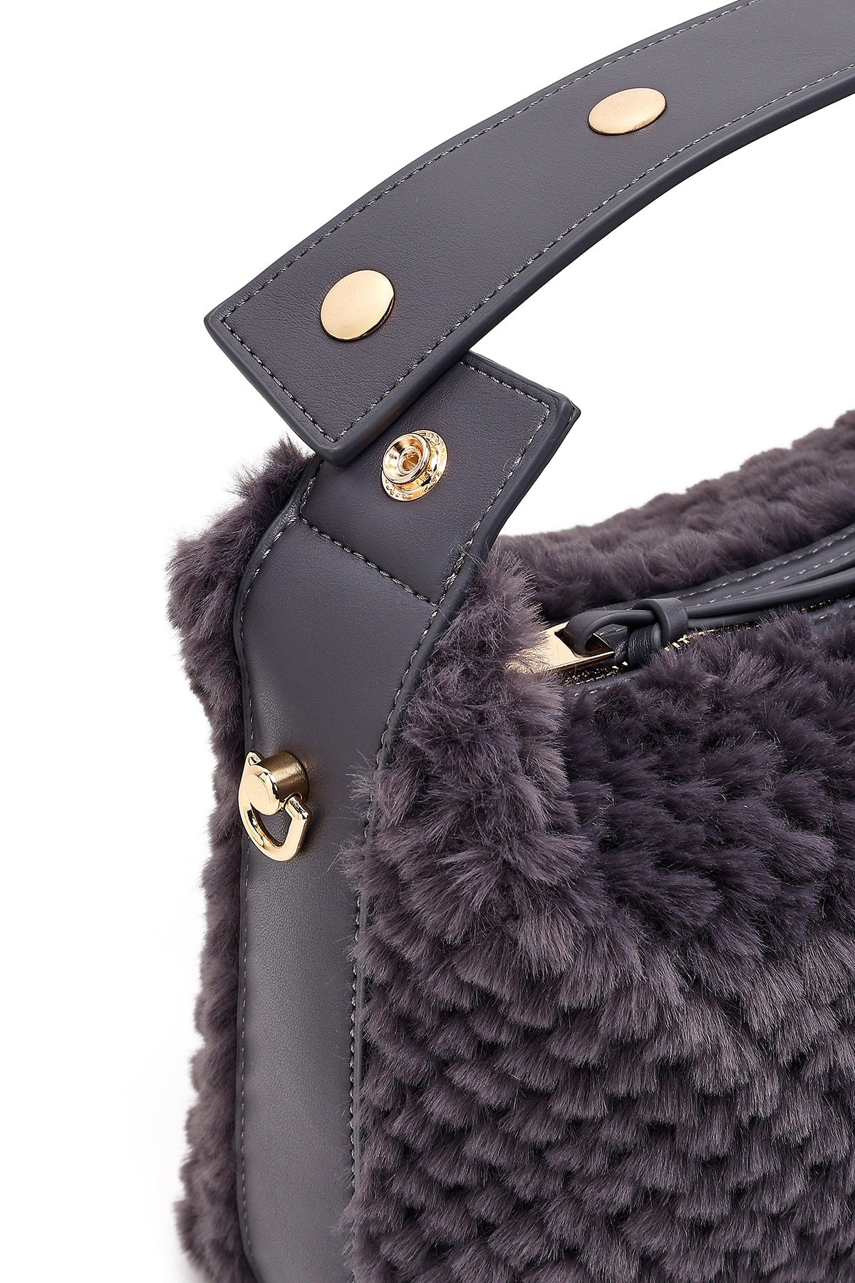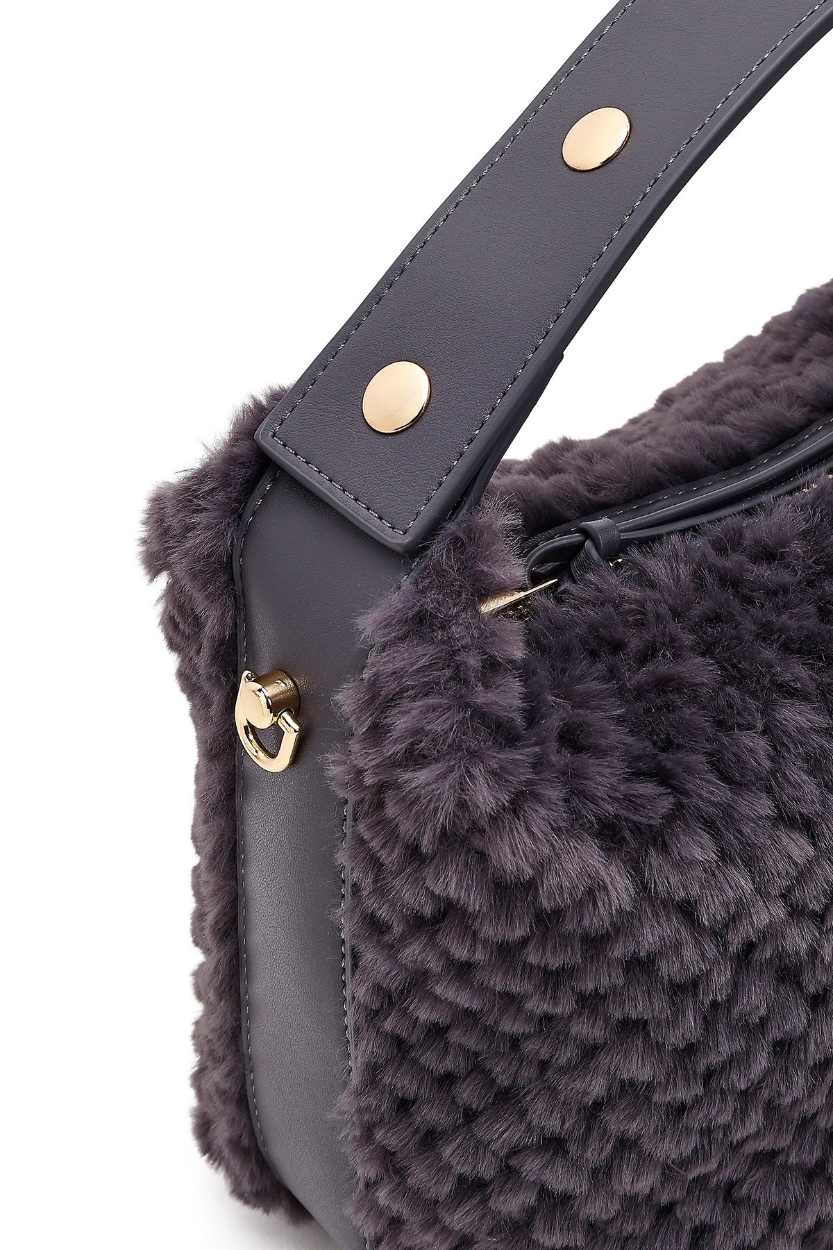 Kadın Gri Uzun Askılı Charmlı Peluş Omuz Çantası
