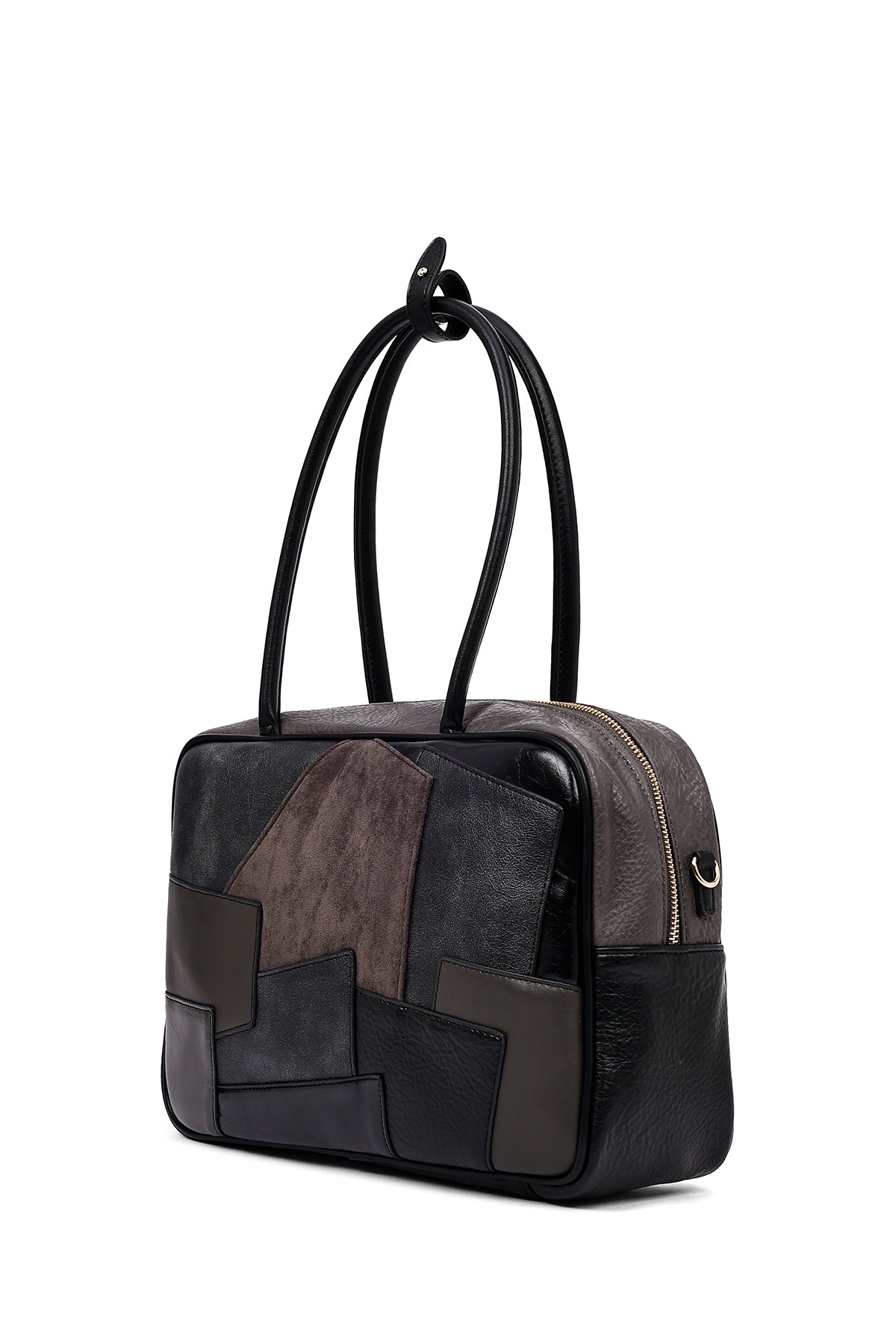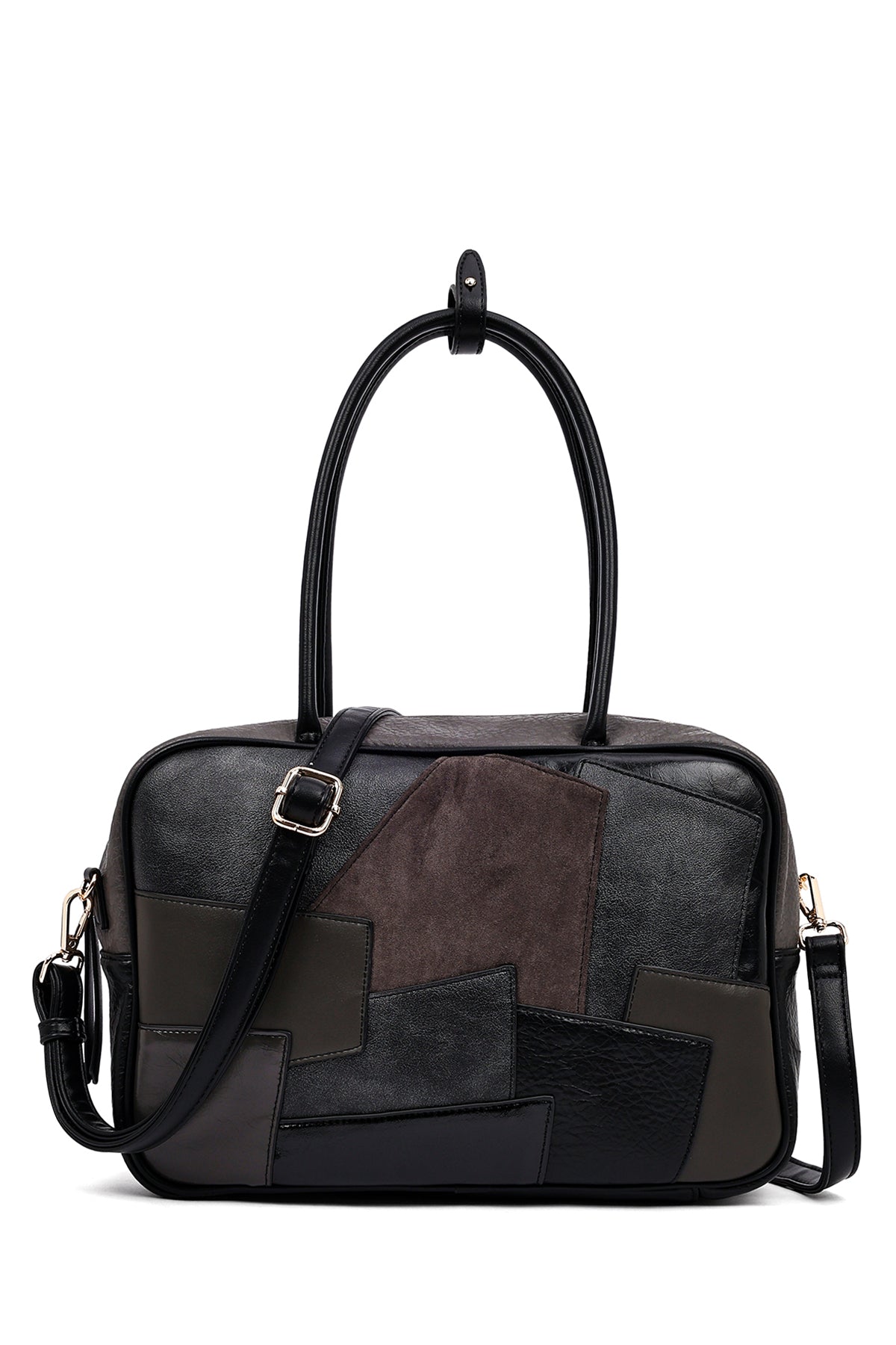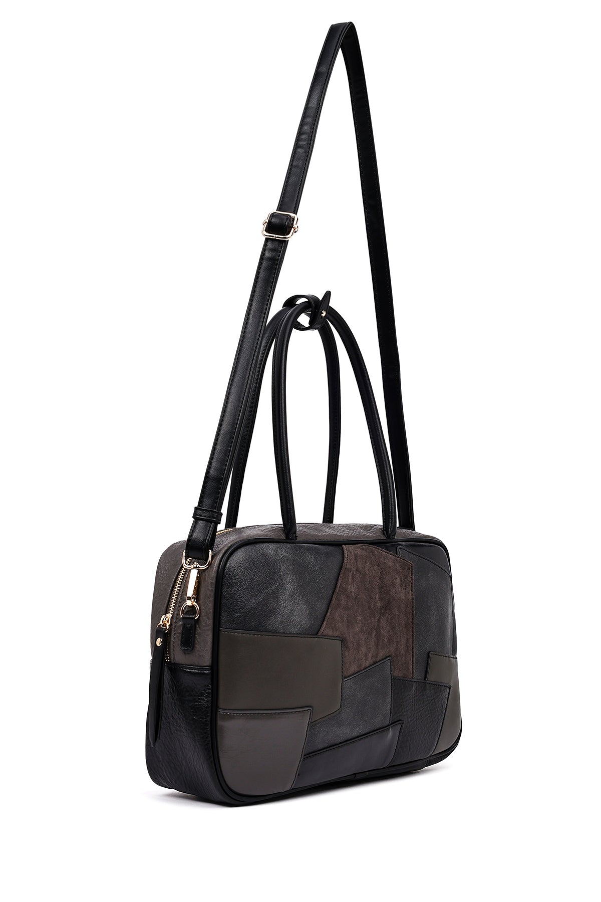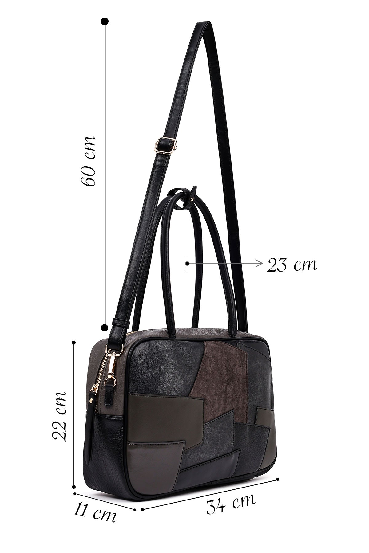 Kadın Gri Uzun Askılı Desenli Kol Çantası