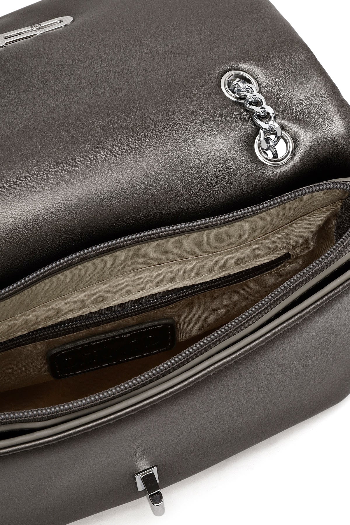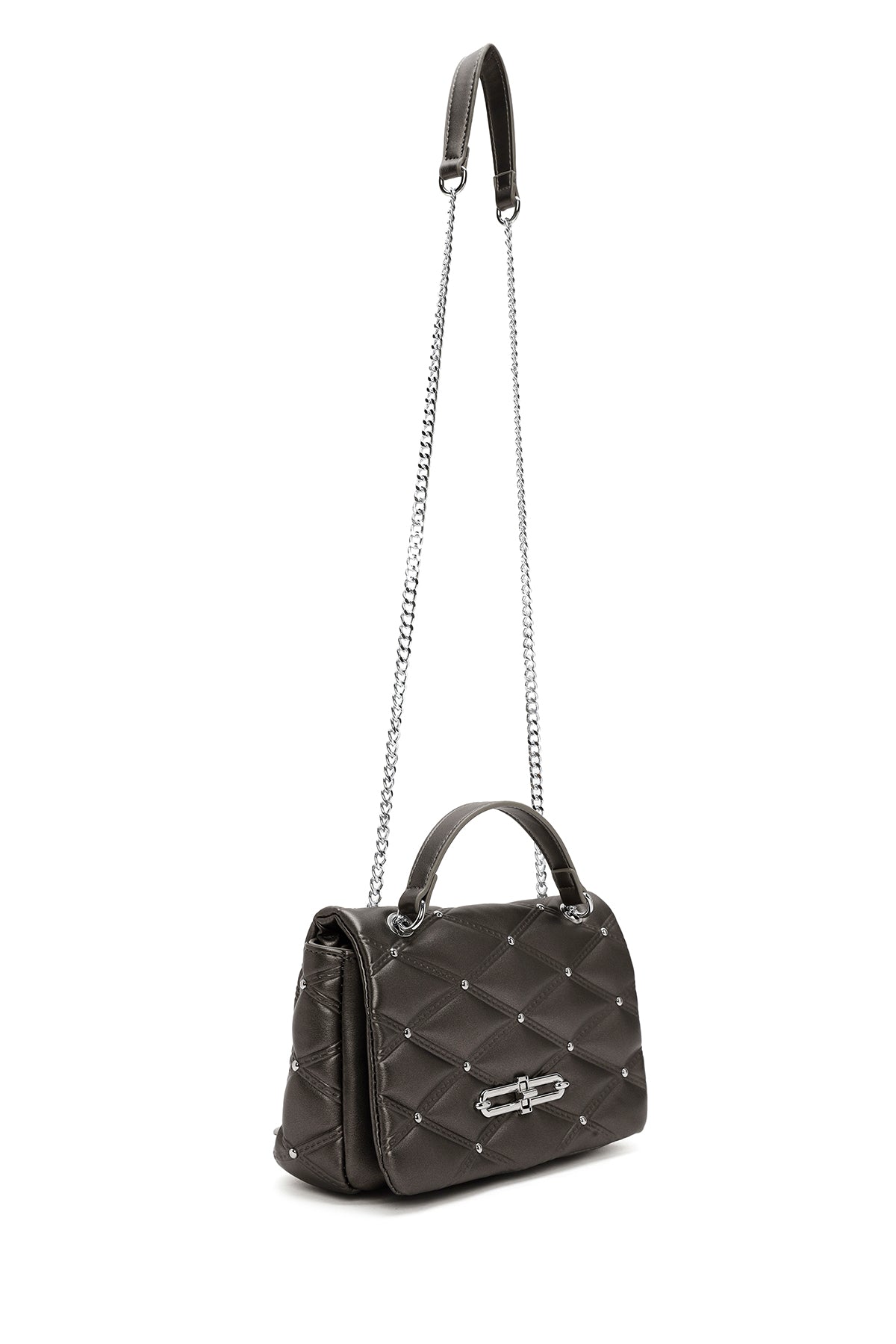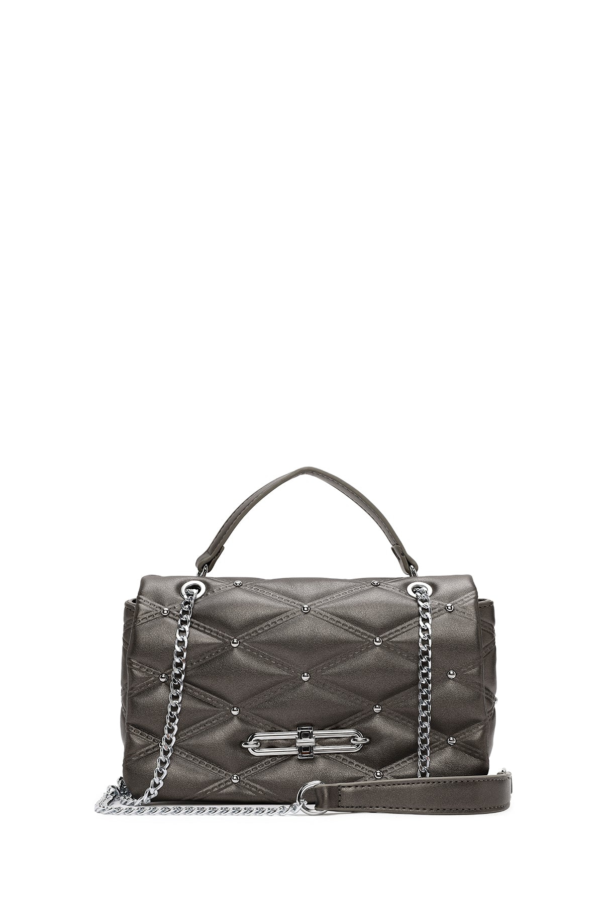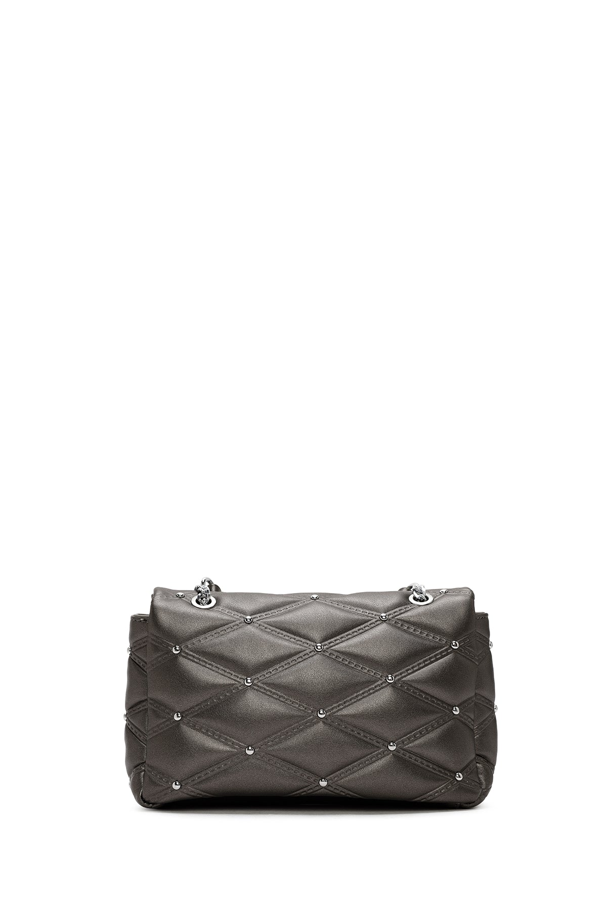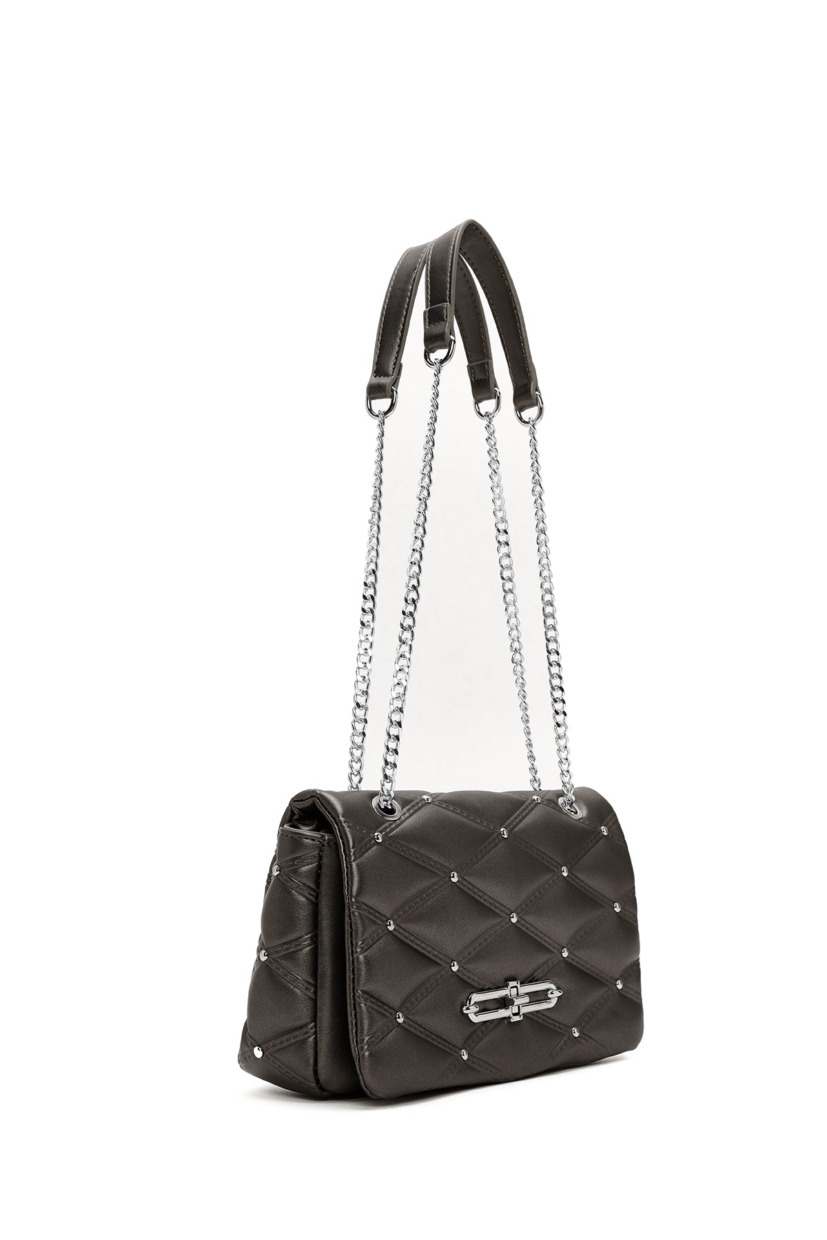 Kadın Gri Uzun Askılı Kapitone Desenli Omuz Çantası