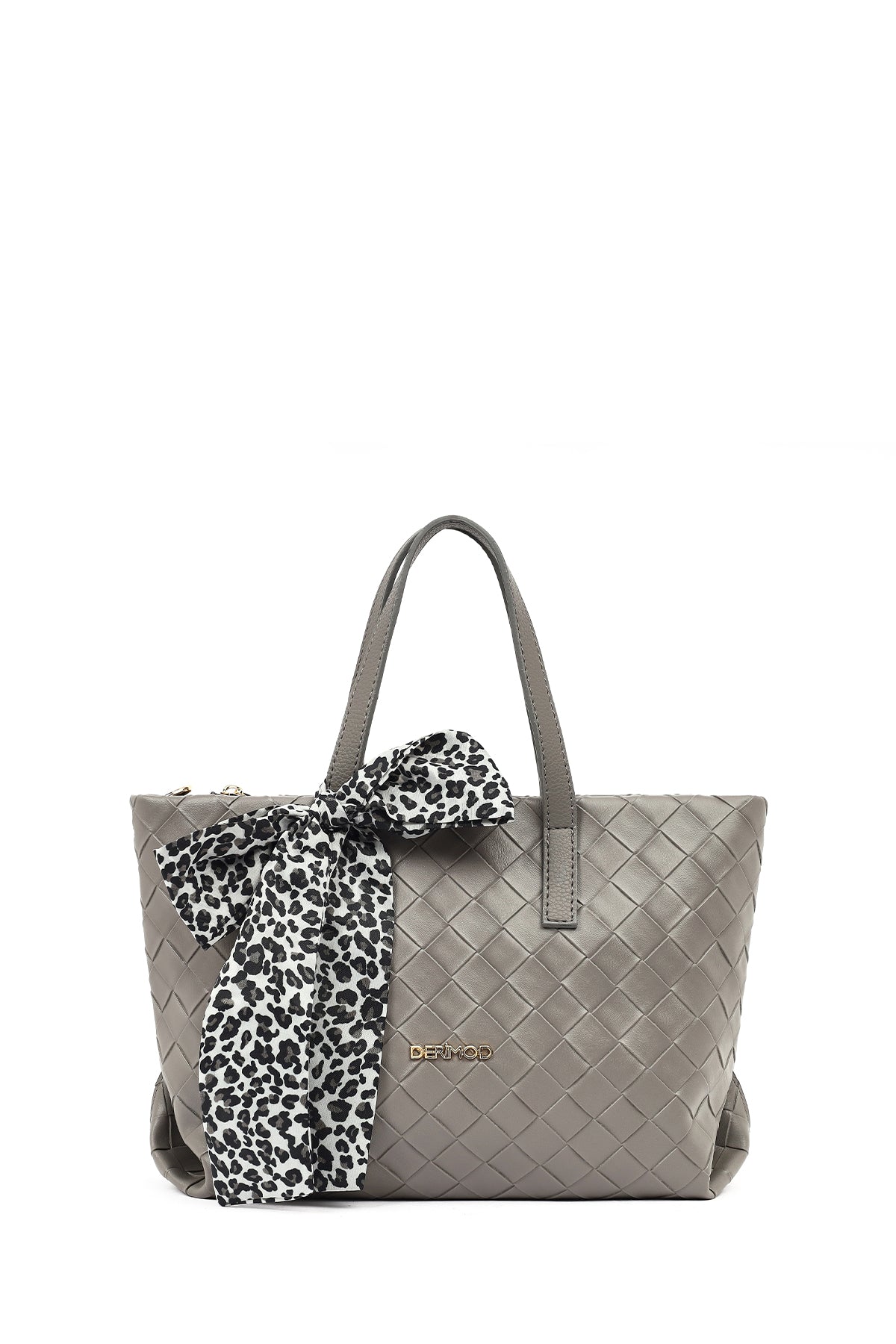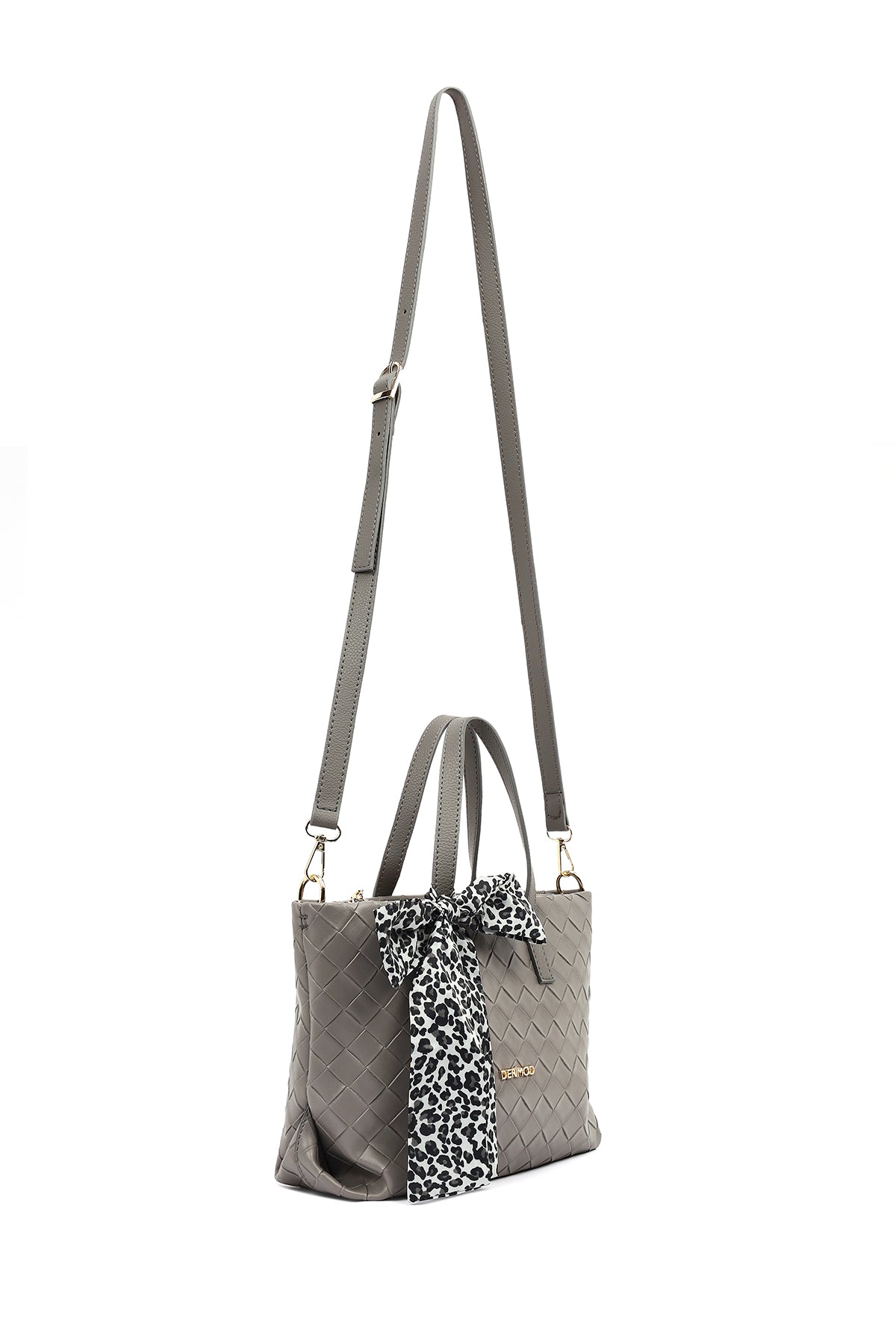 Kadın Gri Uzun Askılı Örgülü Kol Çantası