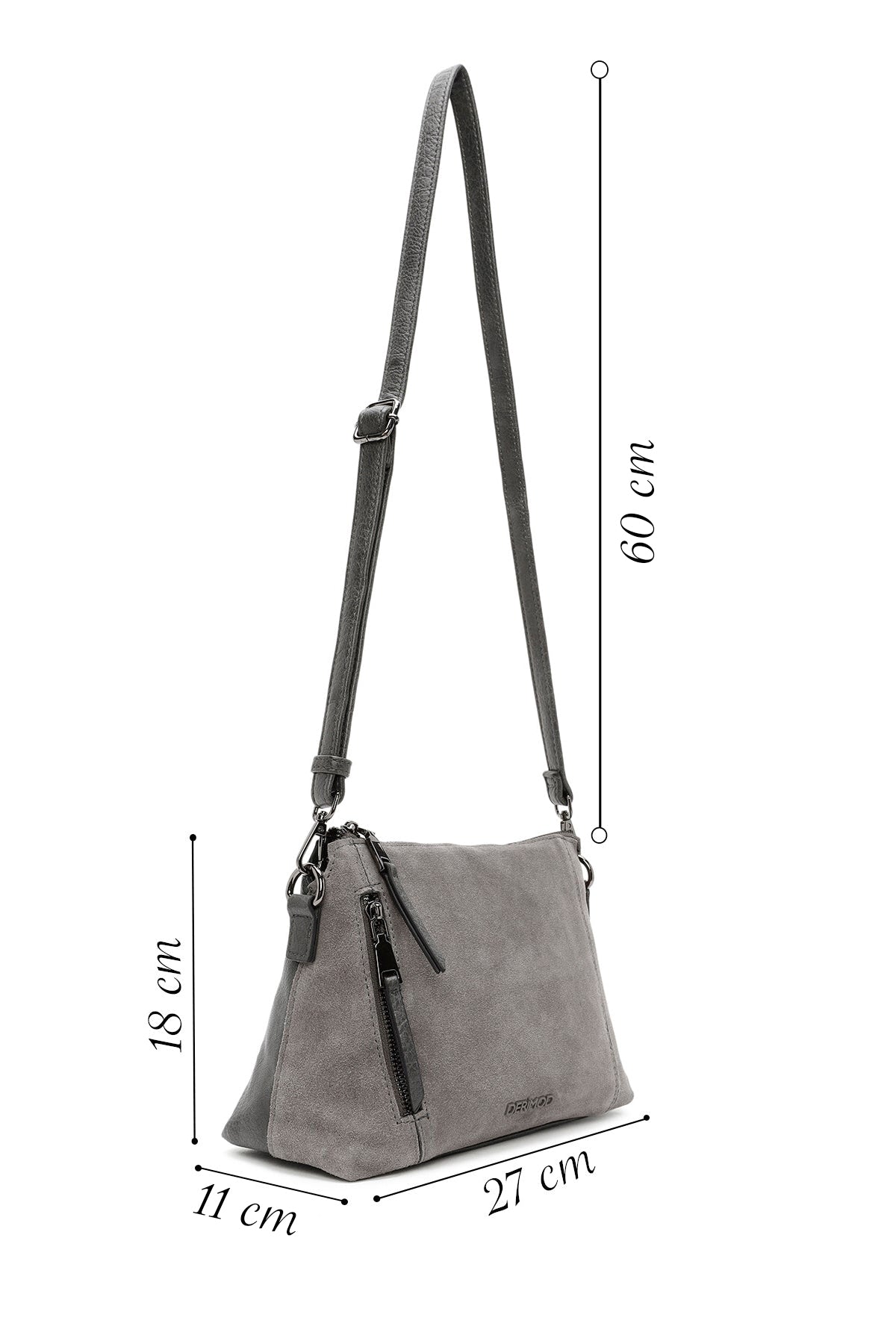 Kadın Gri Uzun Askılı Süet Çapraz Çanta