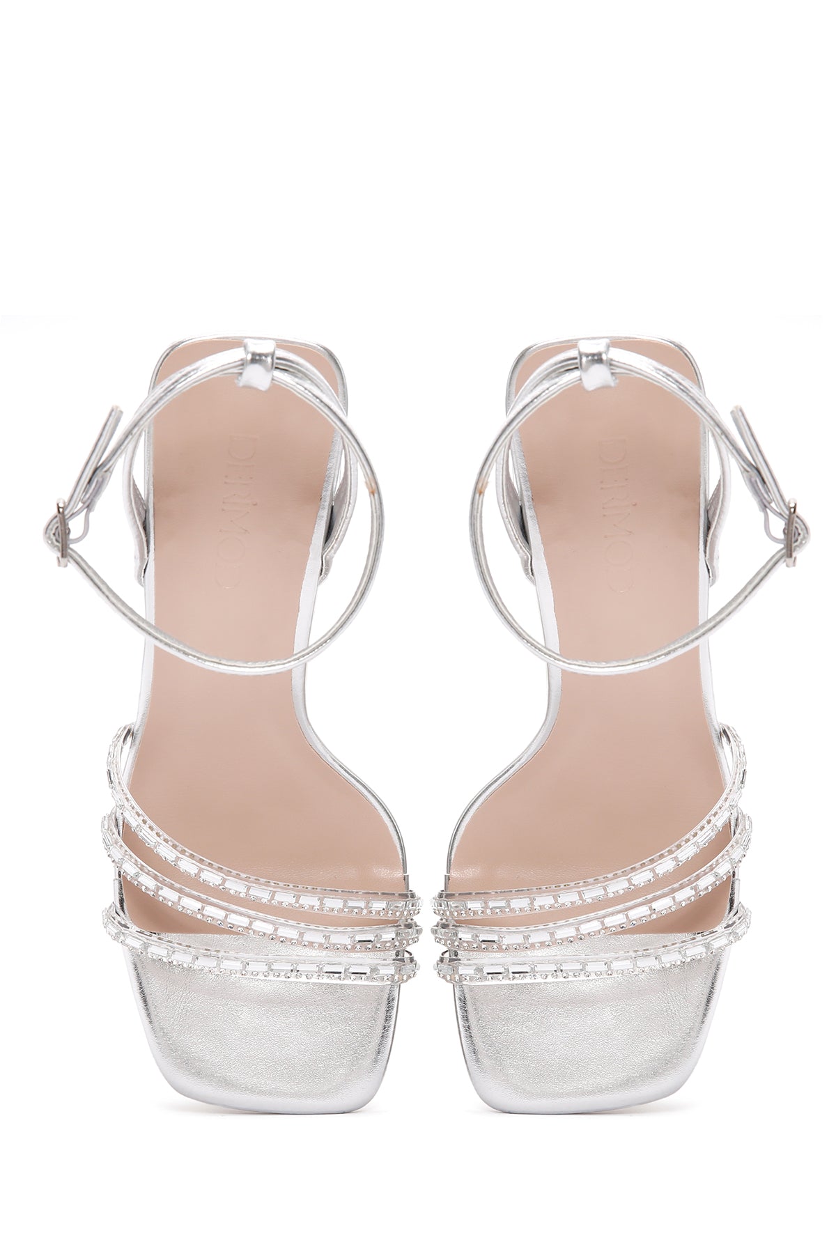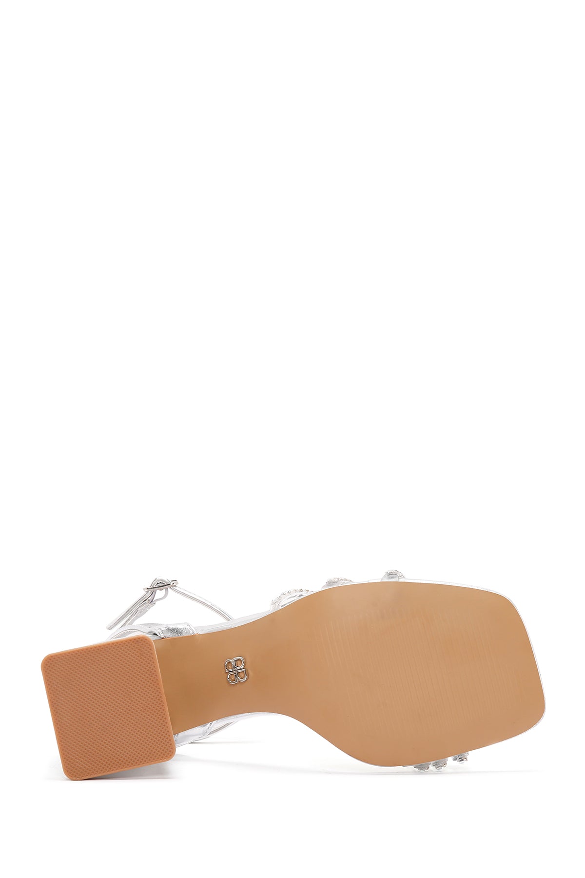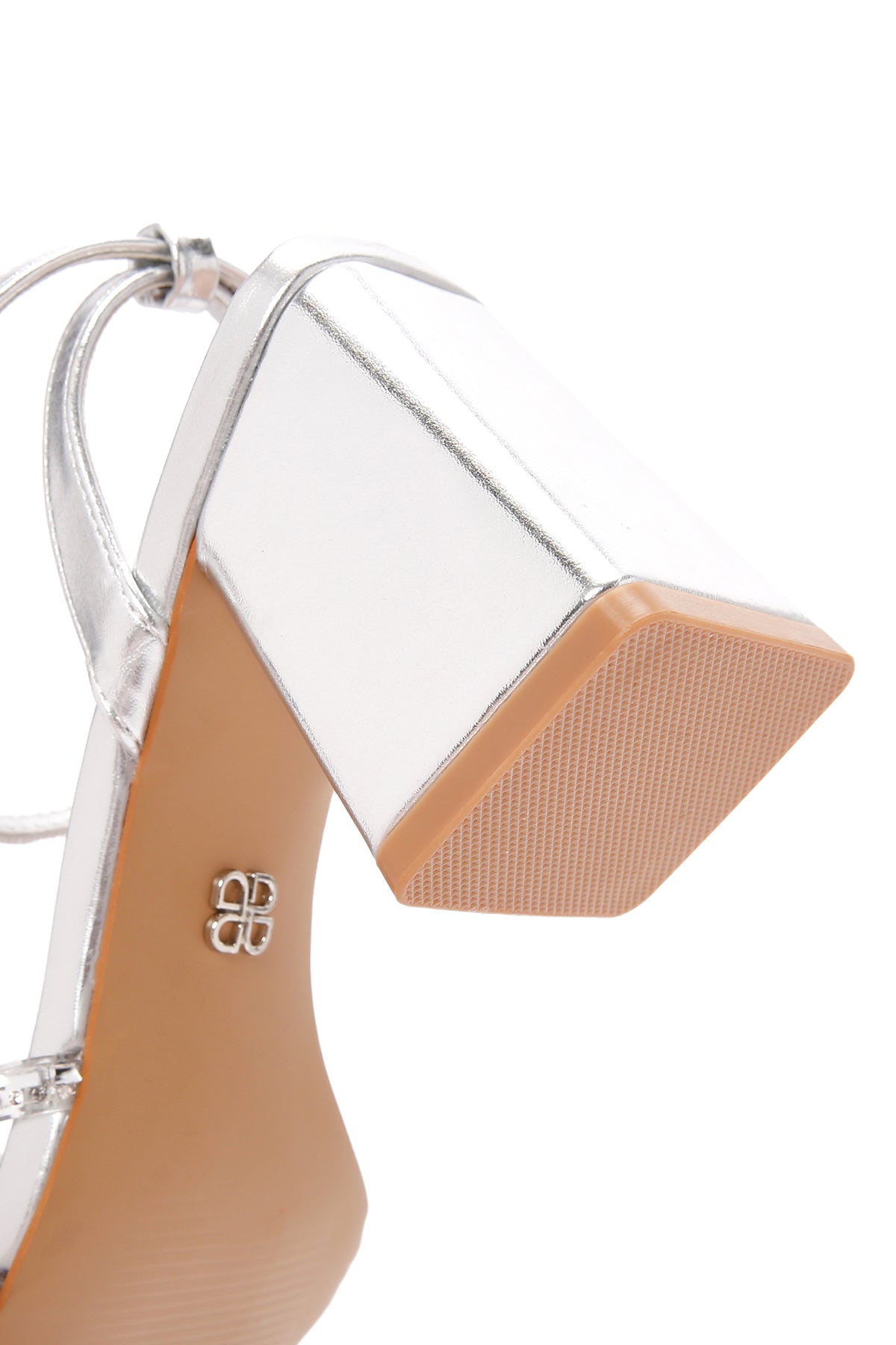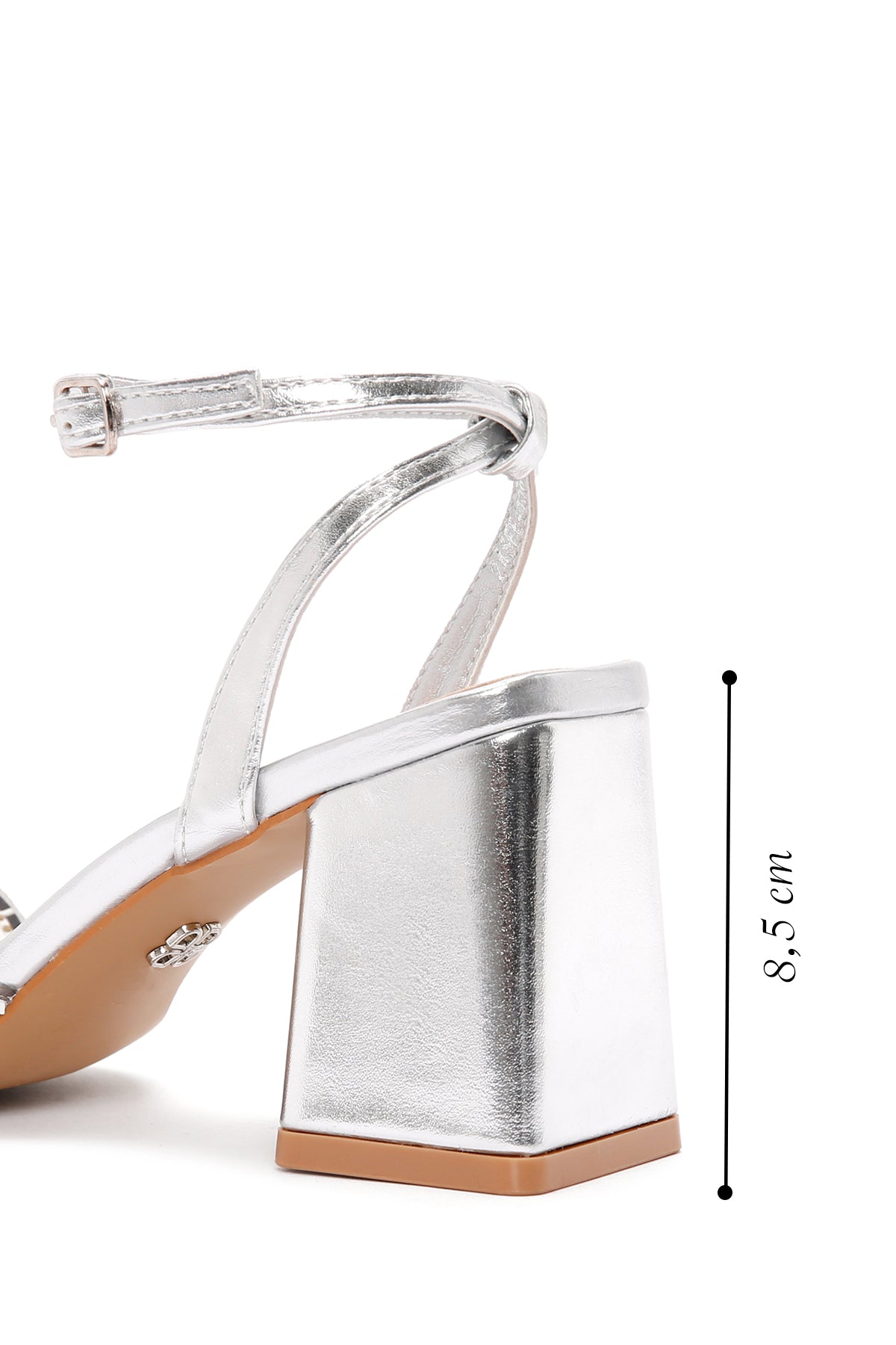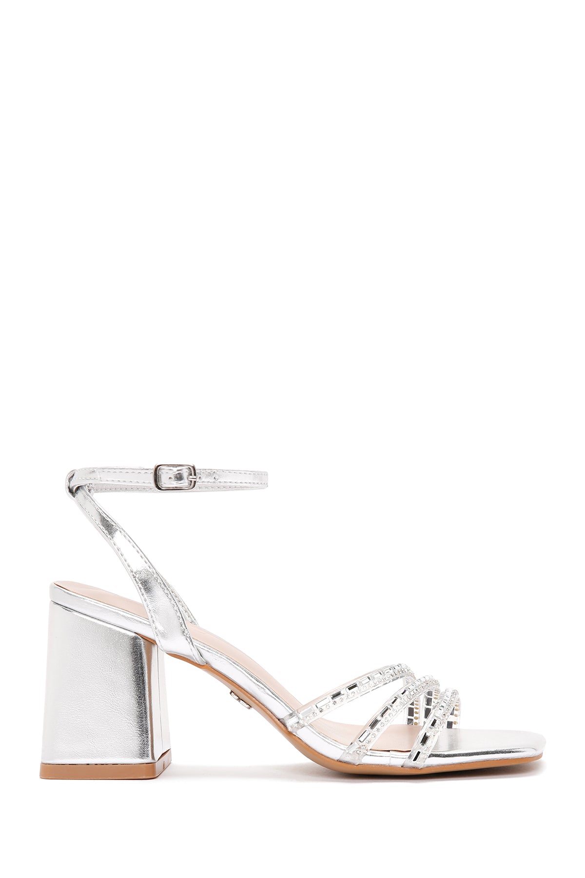 Kadın Gümüş Bilekten Bantlı Topuklu Sandalet