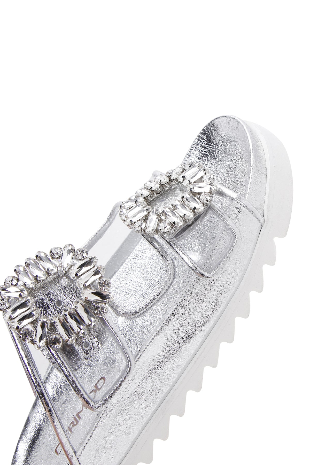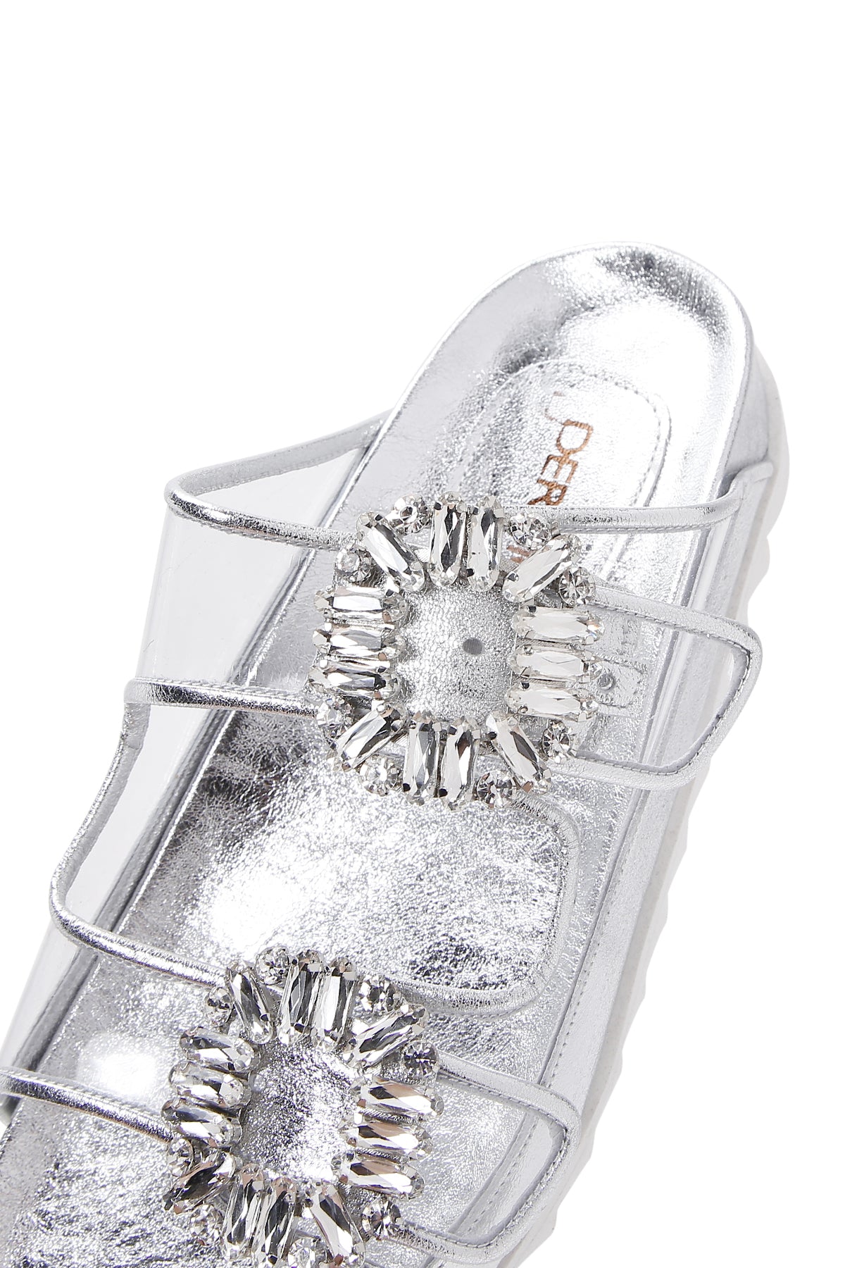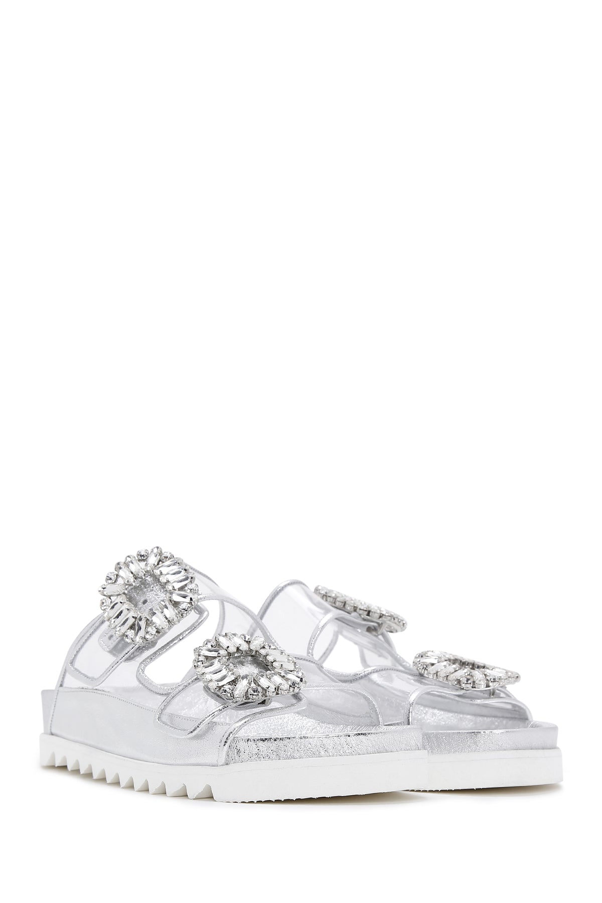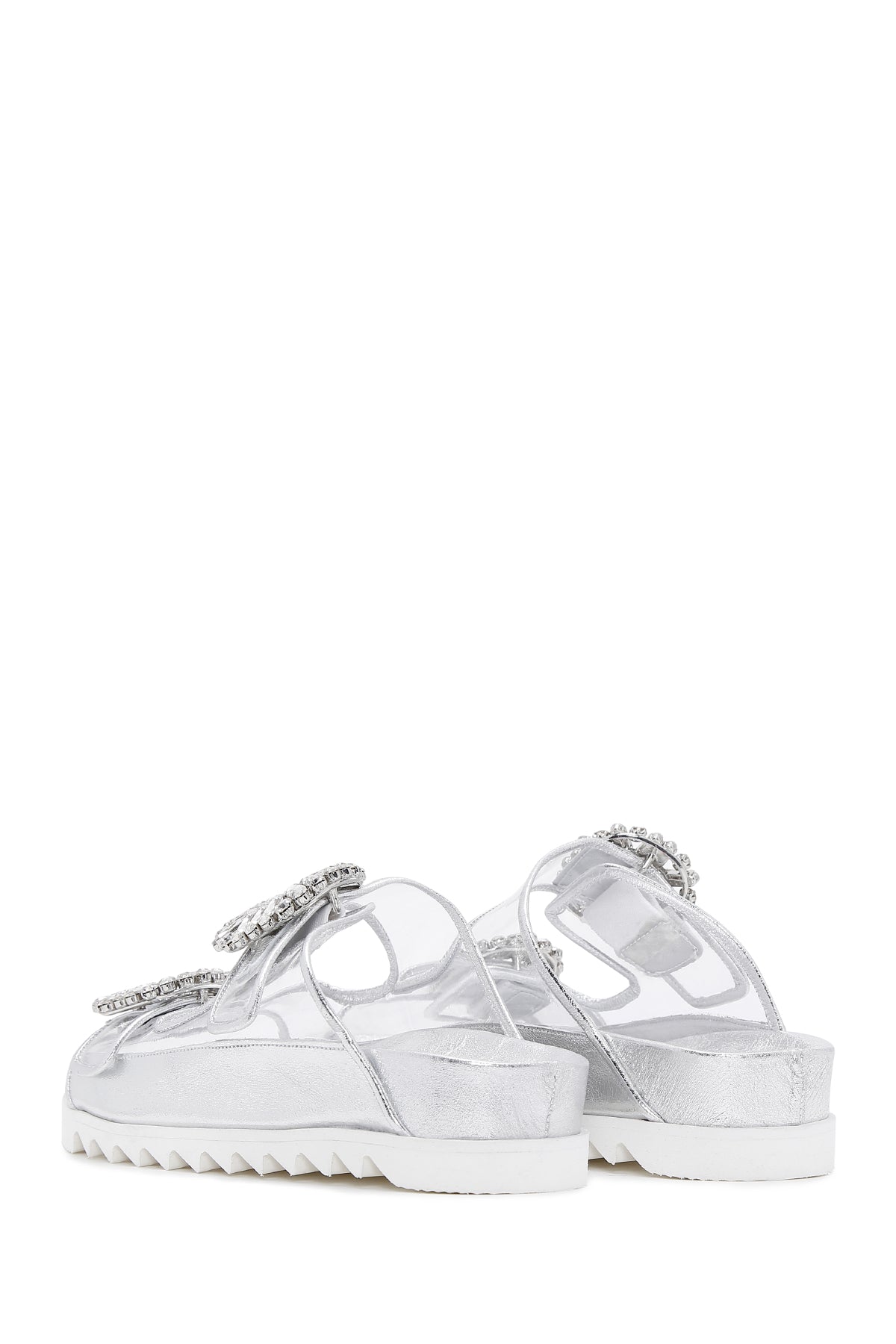 Derimod’un Zarif ve Şıklığı bir arada sunan Kadın Gümüş Deri Taşlı Şeffaf Terlik ile tarzınızı konuşturun. Ürünün kodu: 23SFD120414 GR