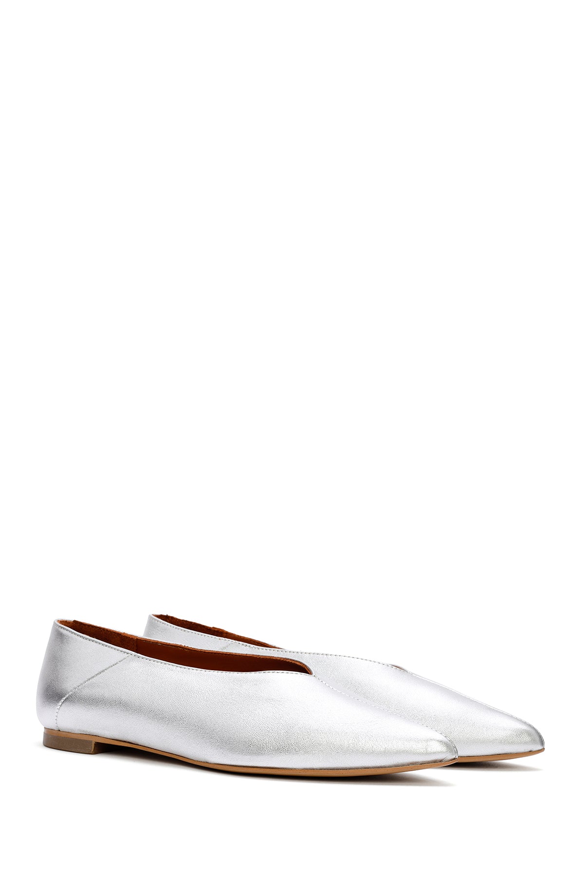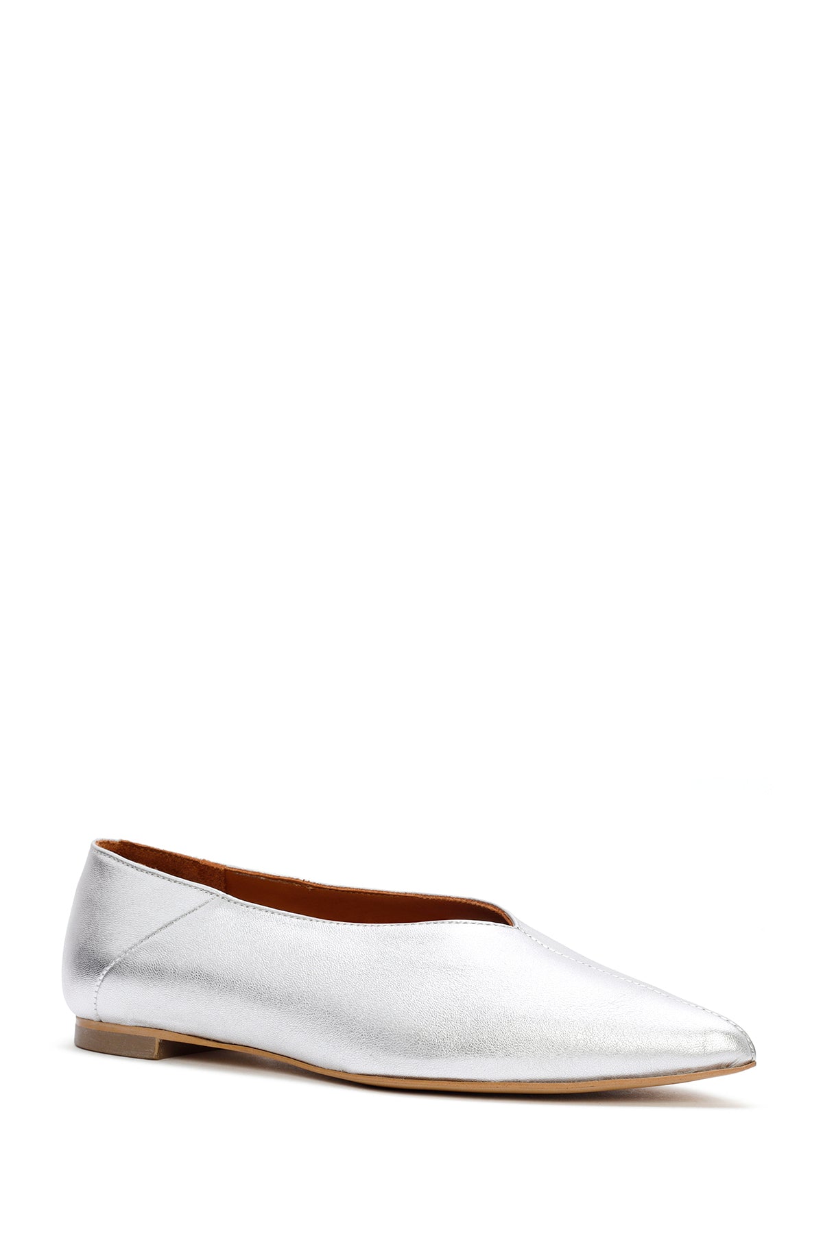 Kadın Gümüş Metalik Deri Babet