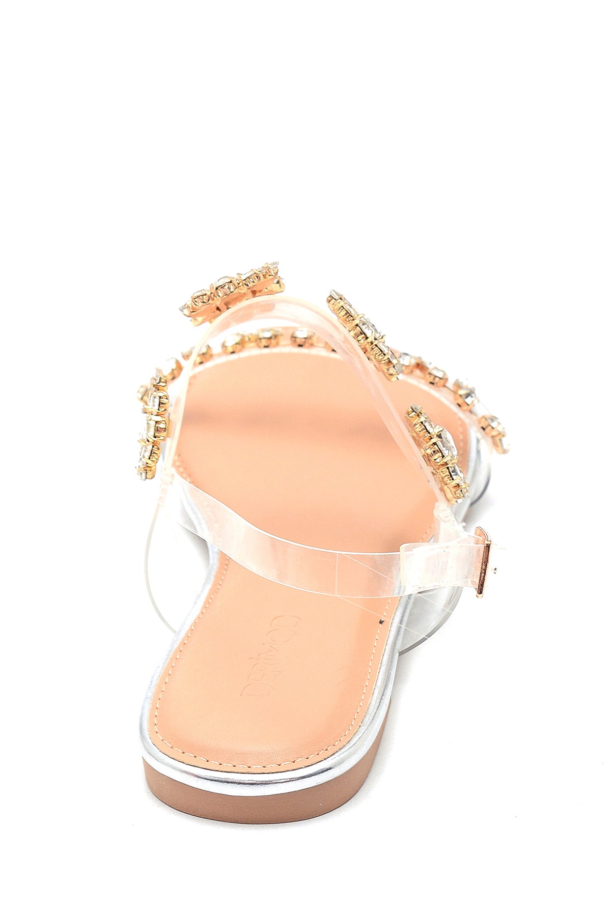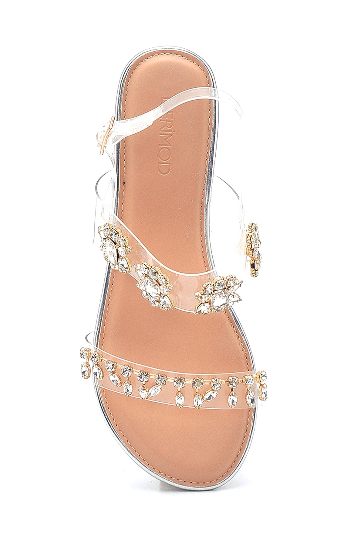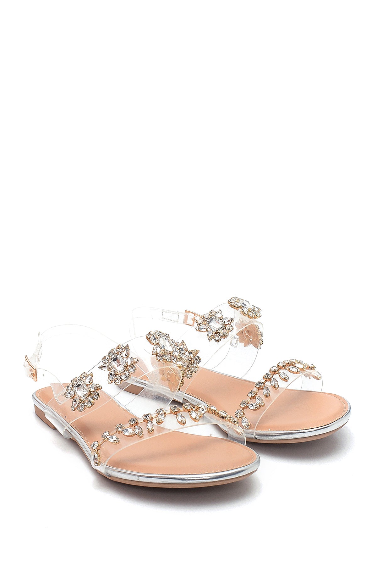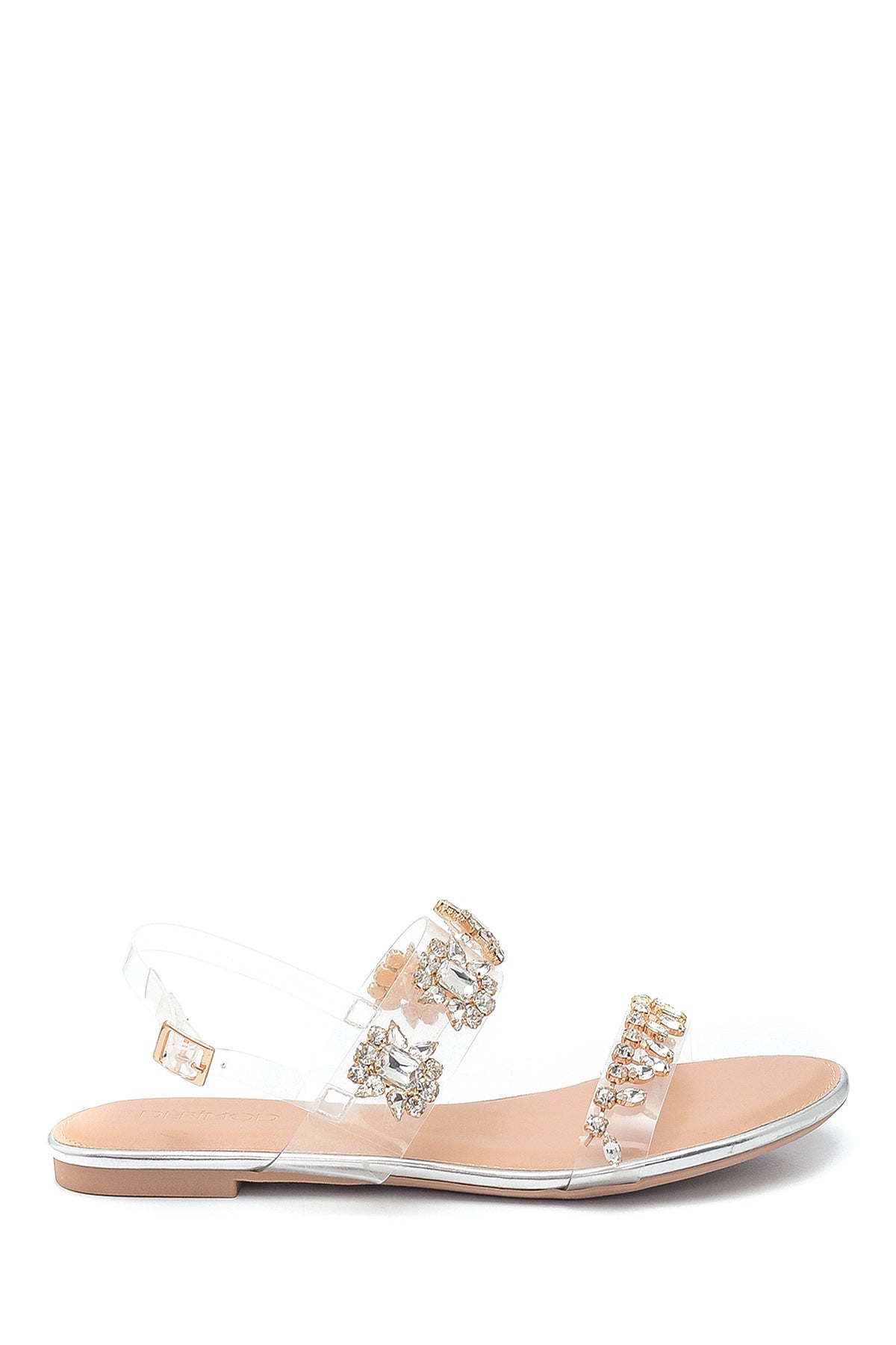 Derimod’un Zarif ve Şıklığı bir arada sunan Kadın Gümüş Şeffaf Taş Detaylı Sandalet ile tarzınızı konuşturun. Ürünün kodu: 20SFE1818PV GR