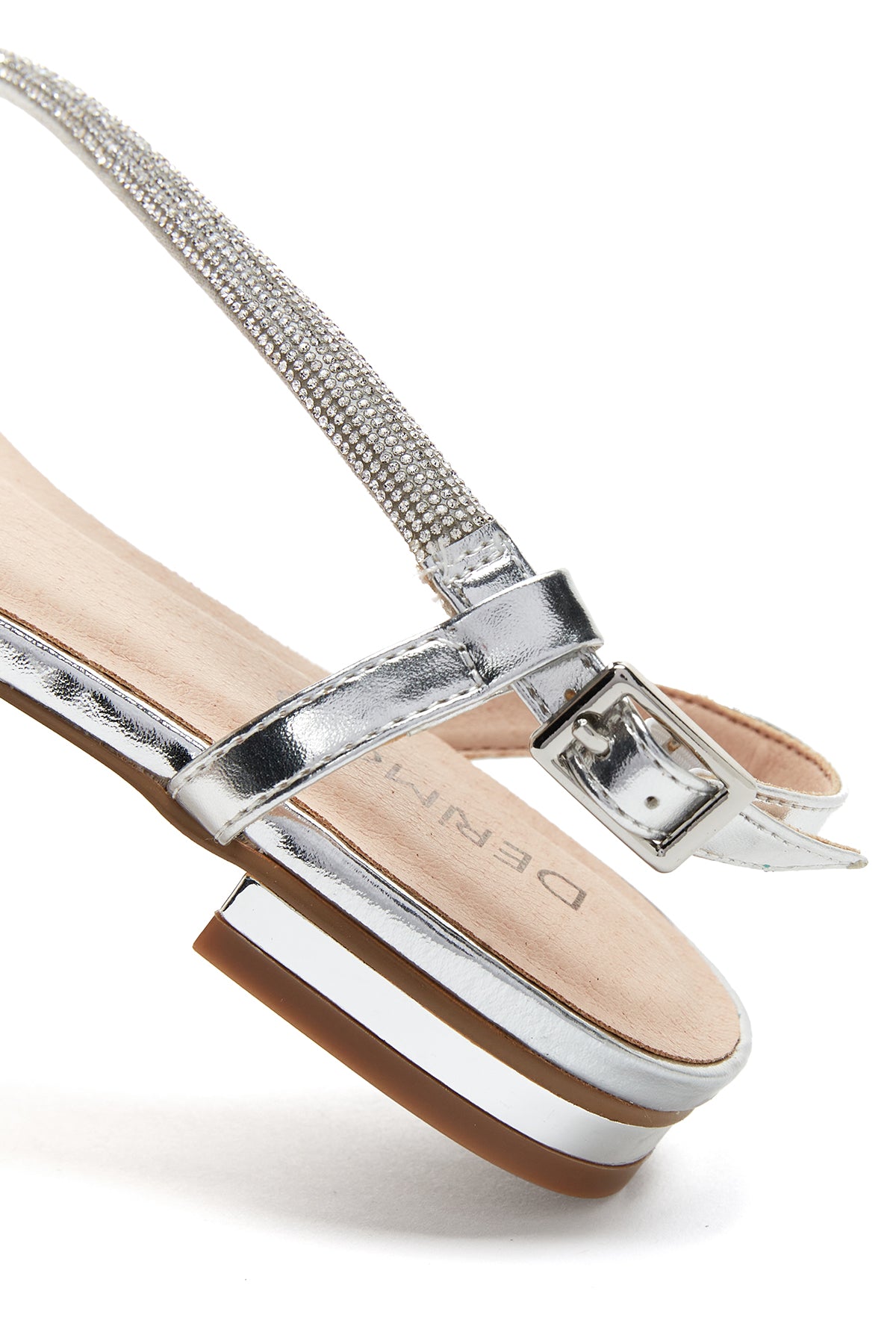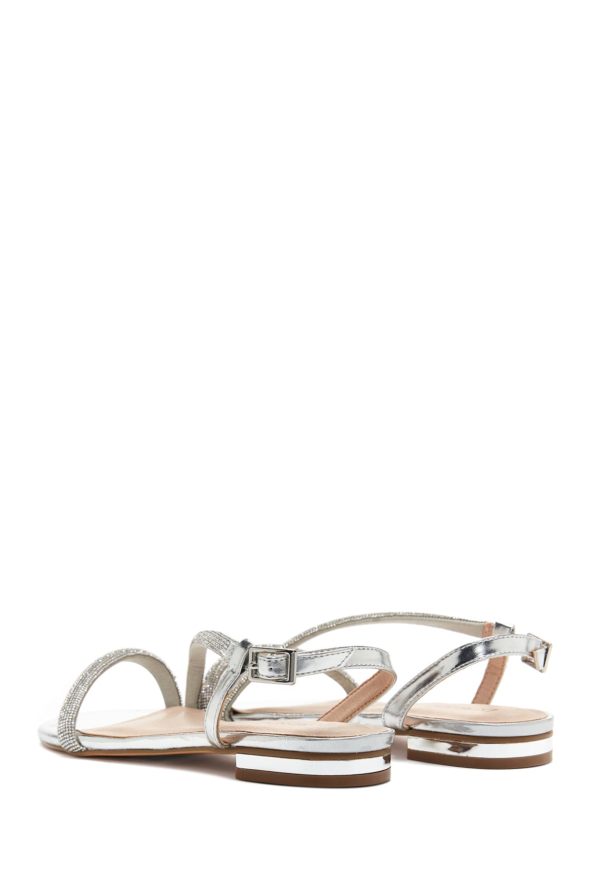 Derimod’un Zarif ve Şıklığı bir arada sunan Kadın Gümüş Taşlı Düz Sandalet ile tarzınızı konuşturun. Ürünün kodu: 23SFD4411TS GR