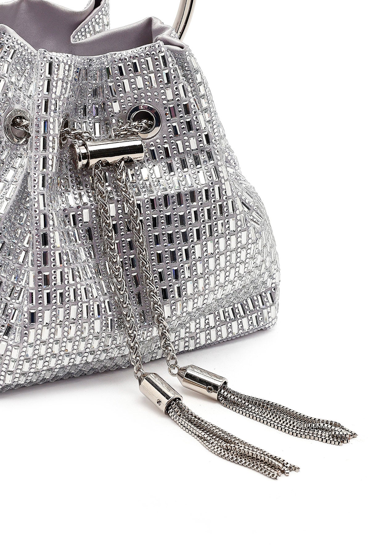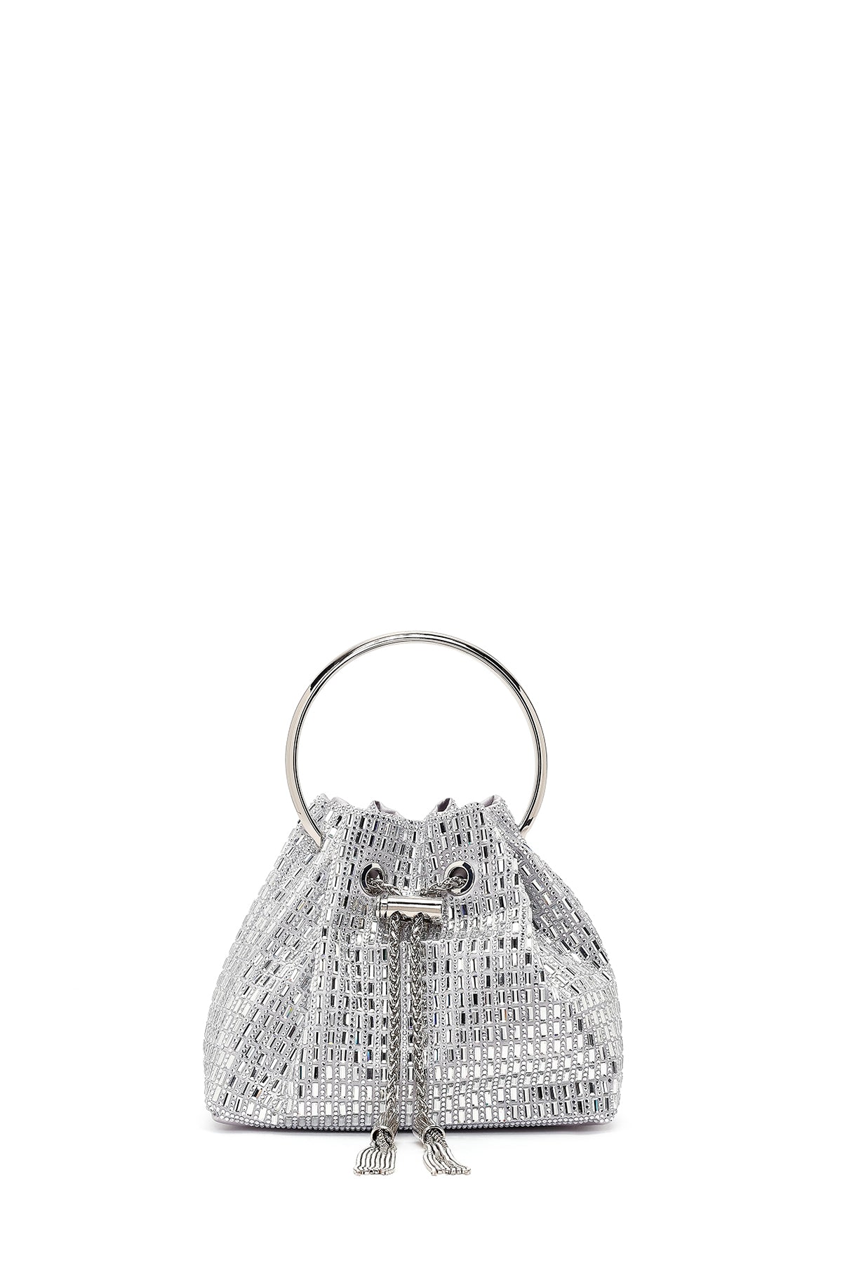 Kadın Gümüş Taşlı Mini Abiye Kol Çantası