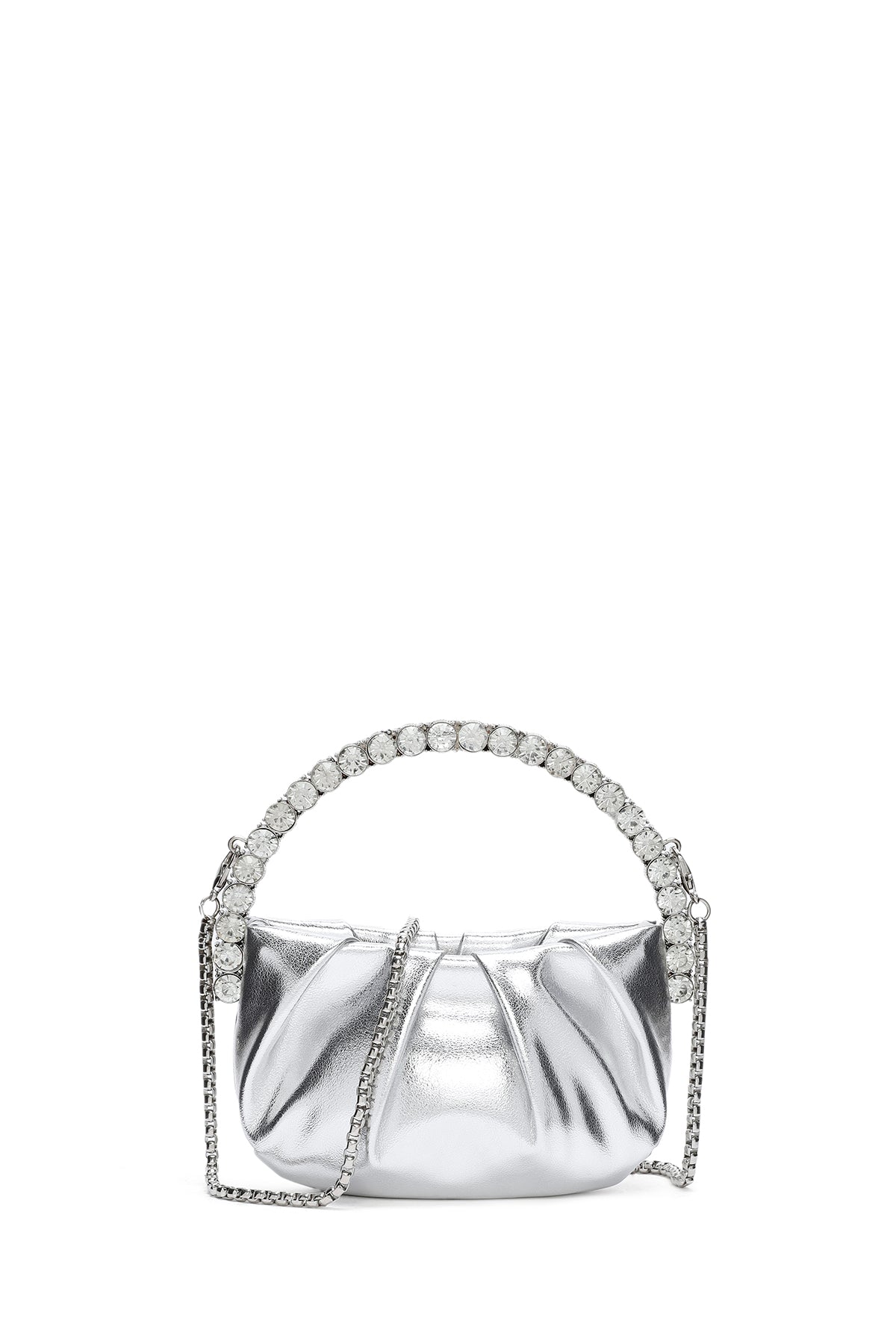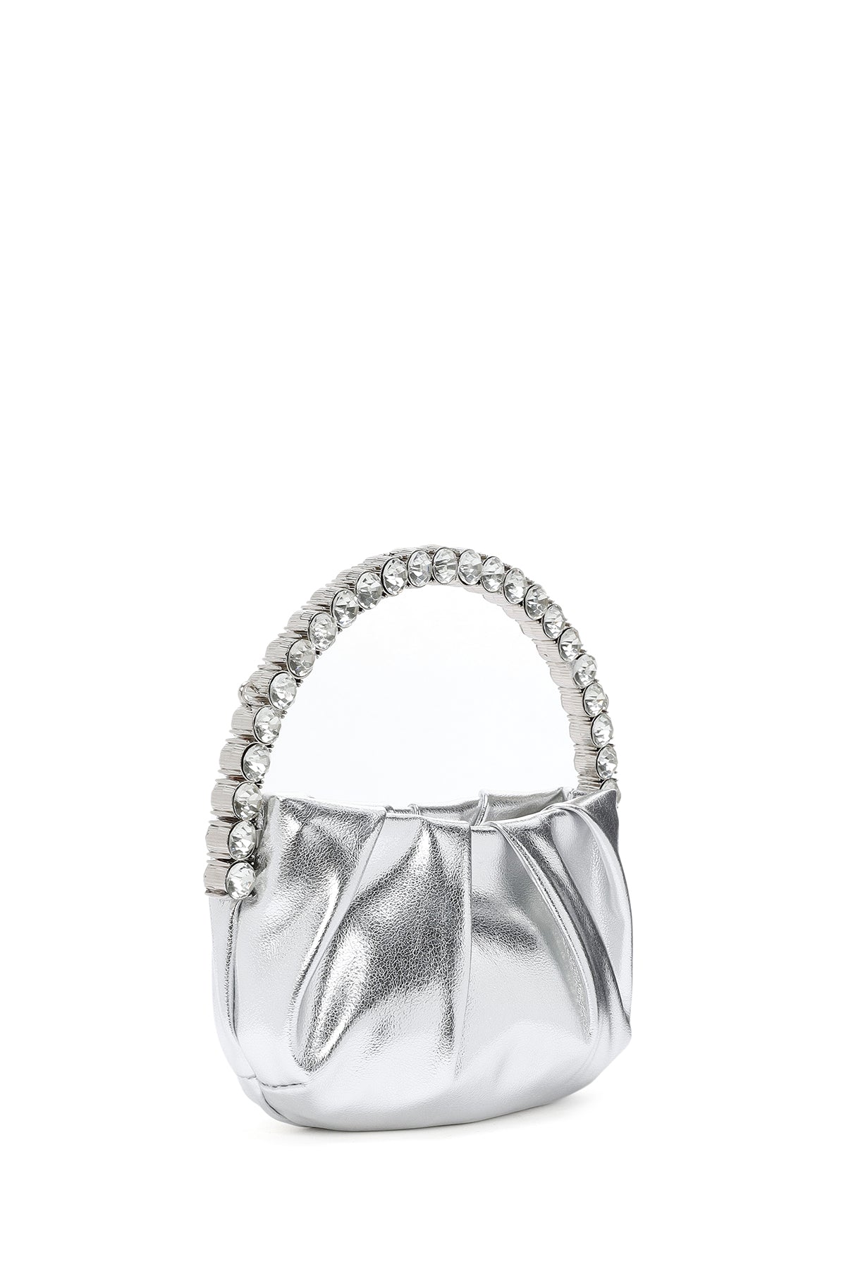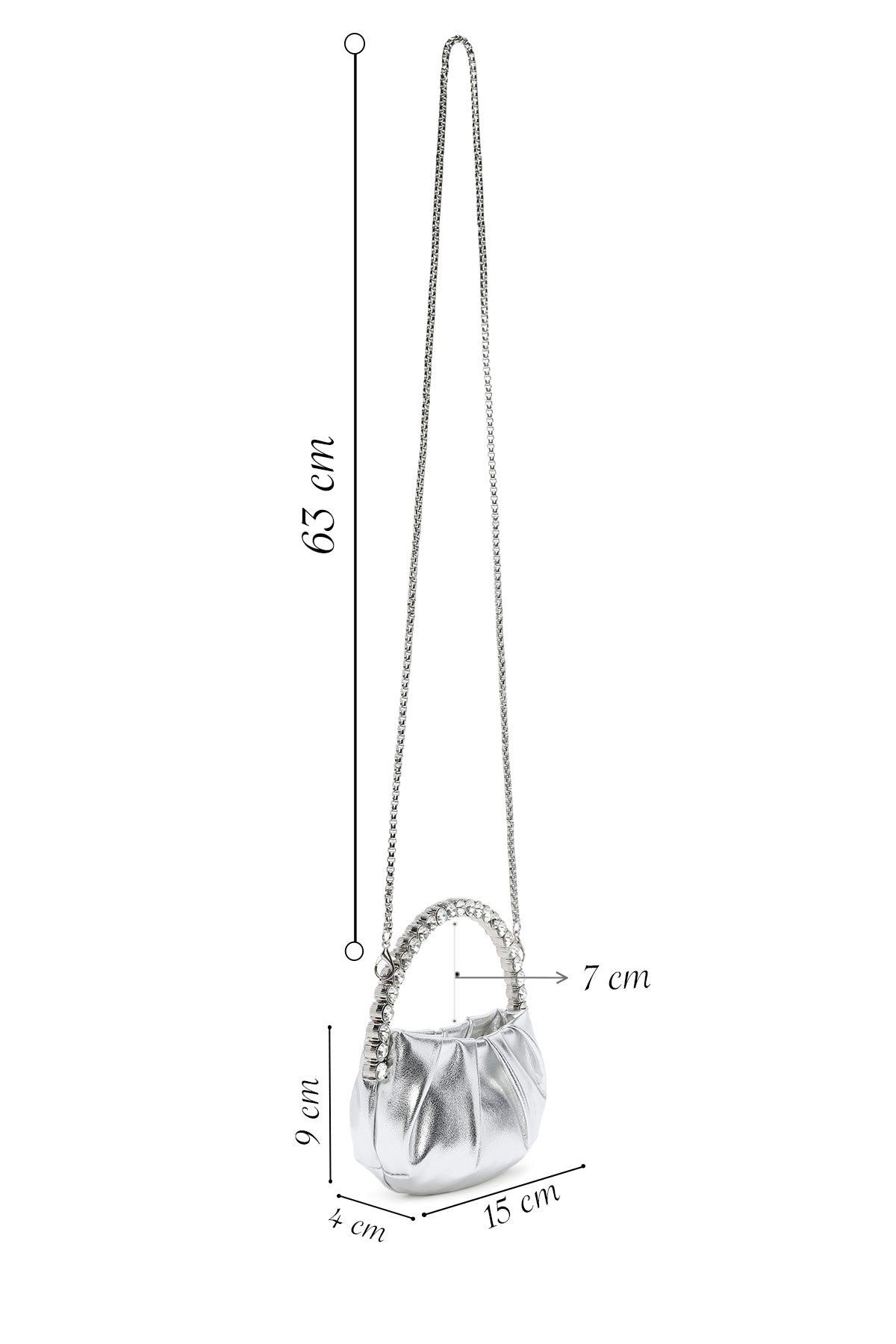 Kadın Gümüş Uzun Askılı Metalik Abiye Çapraz Çanta