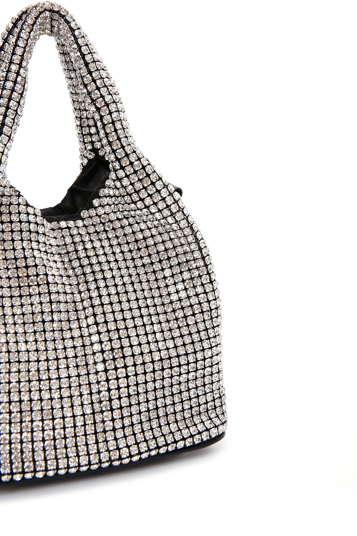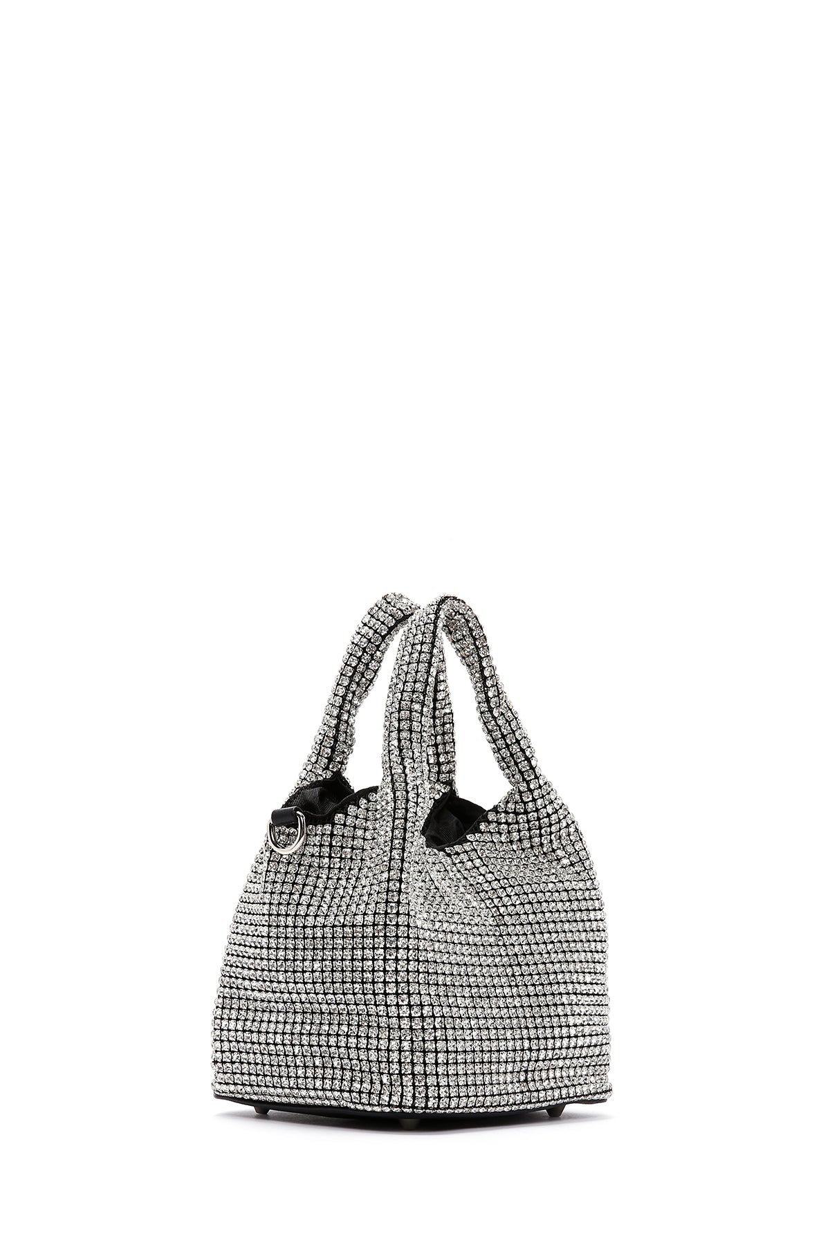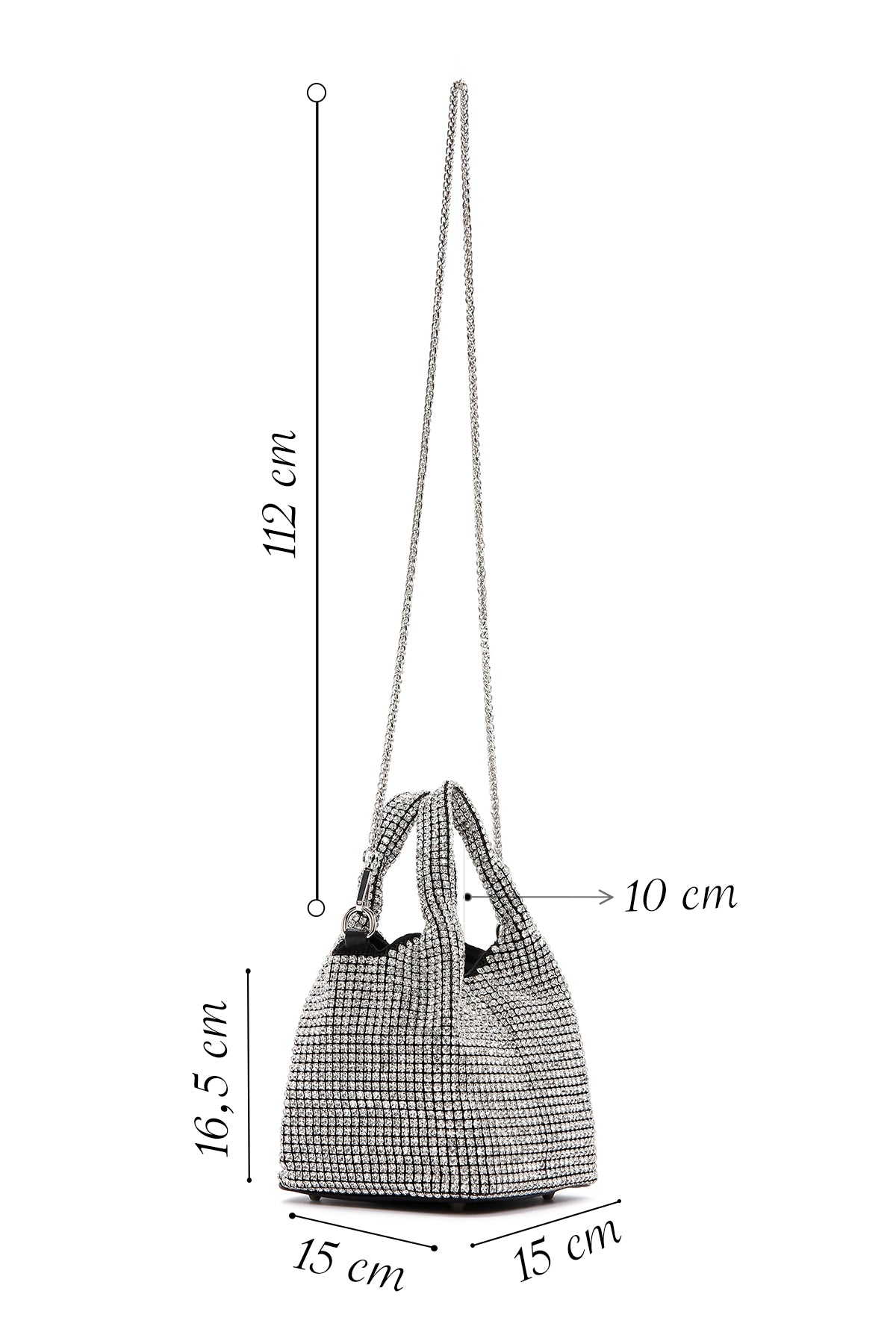 Kadın Gümüş Uzun Zincir Askılı Taşlı Çapraz Çanta