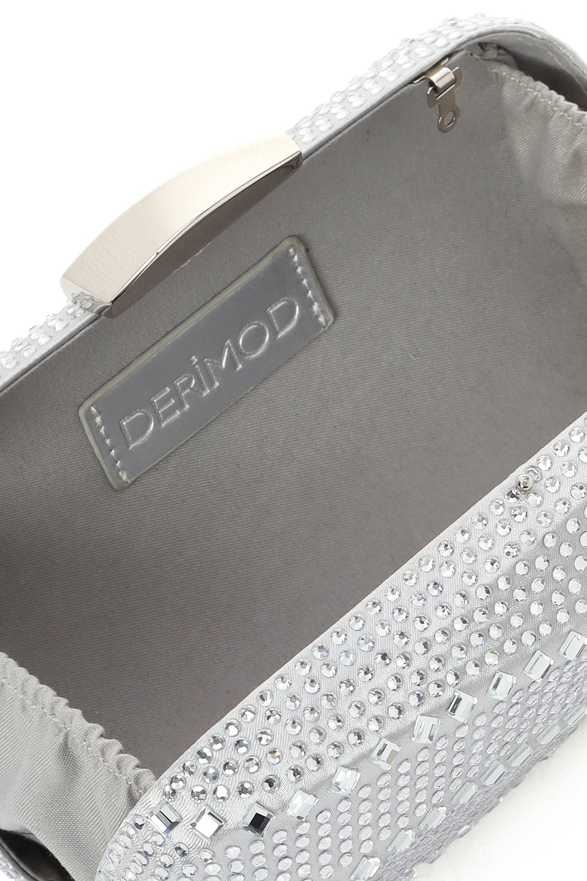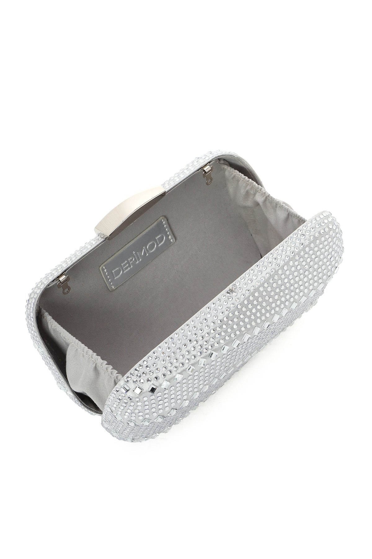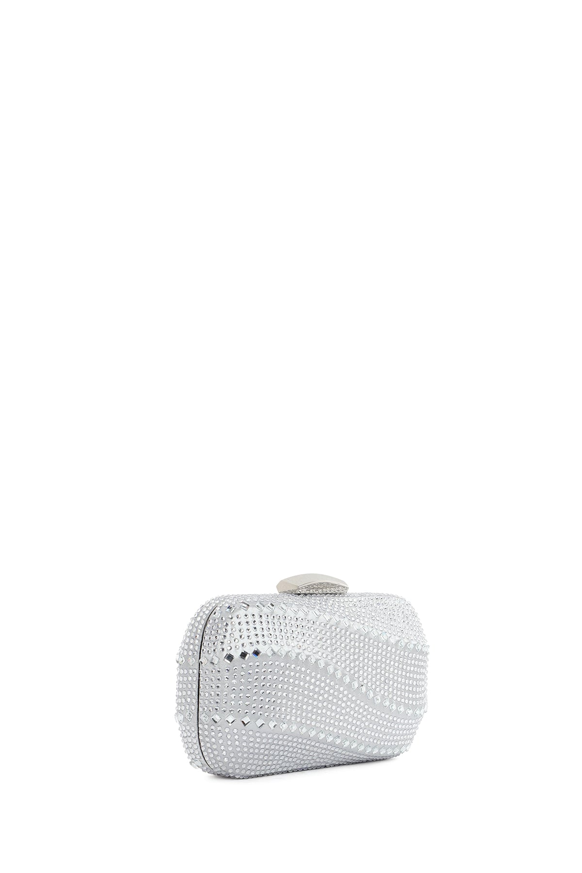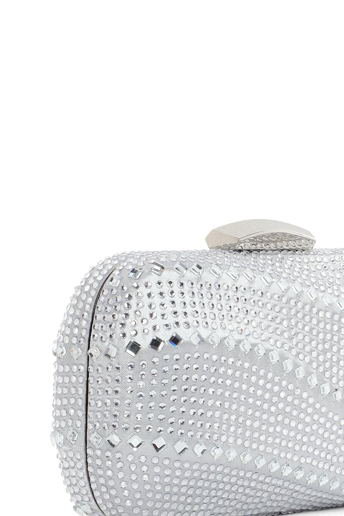 Kadın Gümüş Uzun Zincir Askılı Taşlı Mini Kutu Abiye Çanta