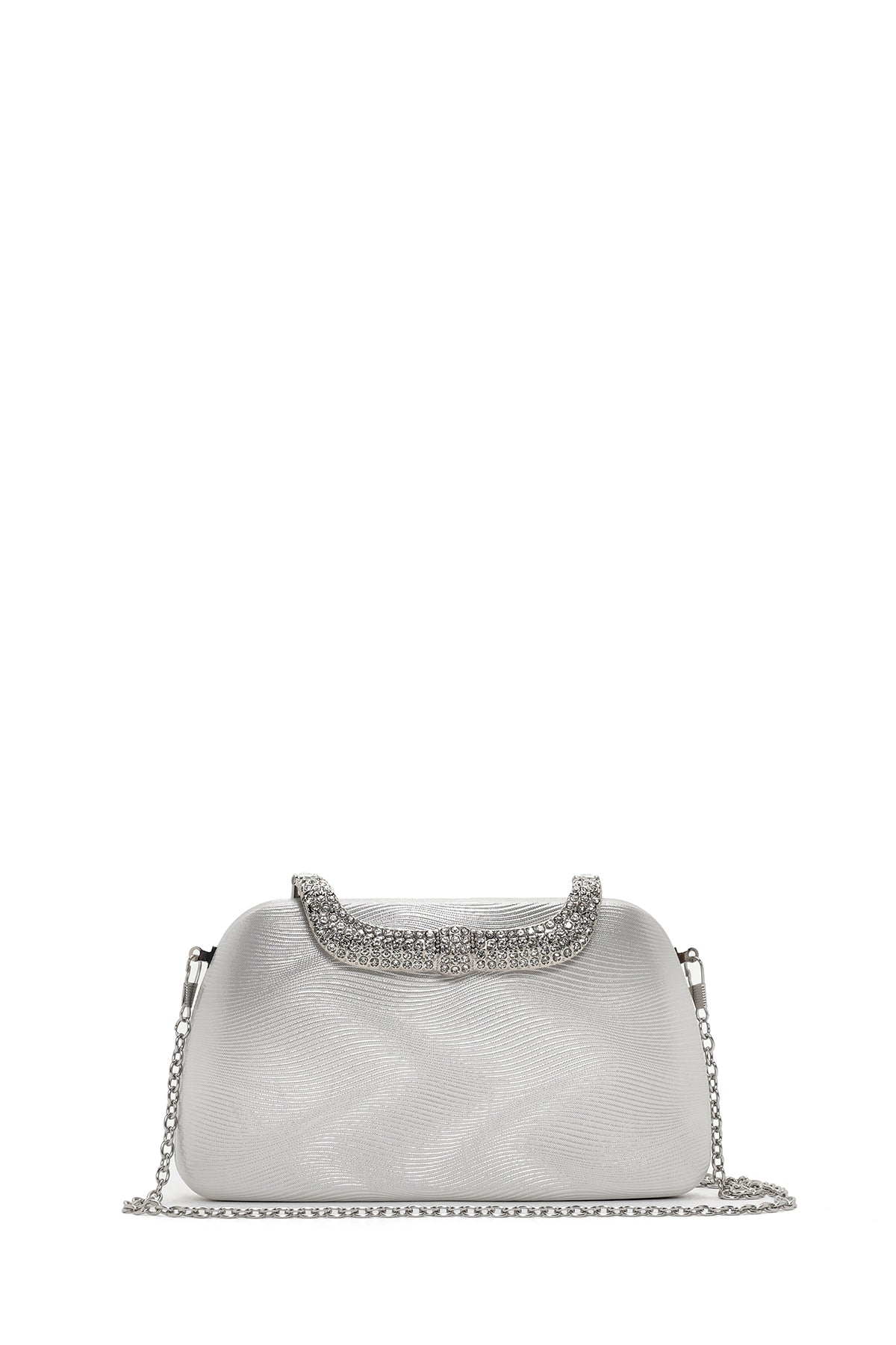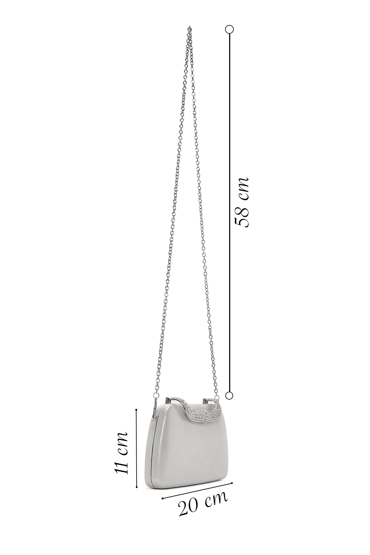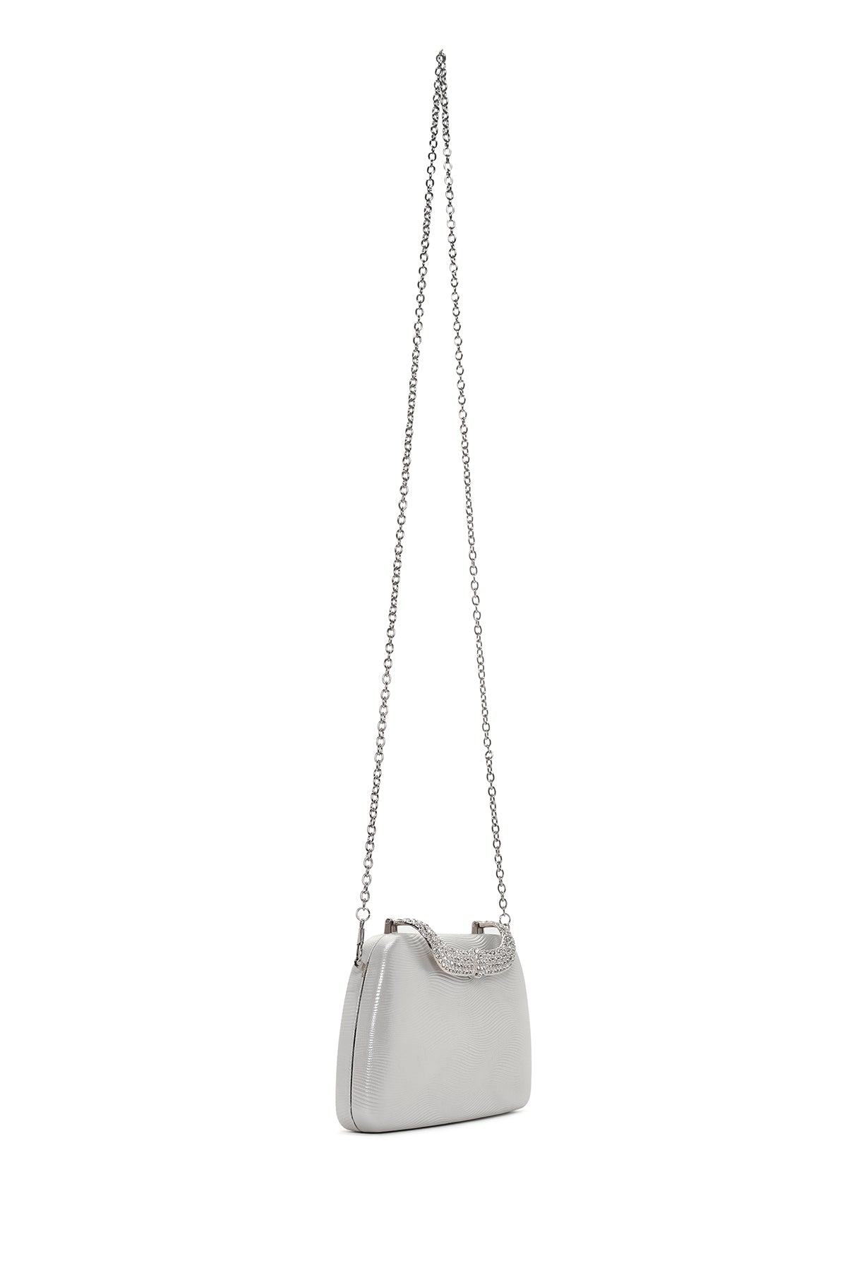 Kadın Gümüş Uzun Zincir Askılı Taşlı Portföy Çanta