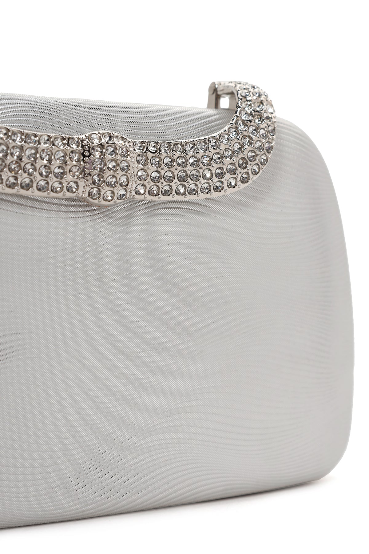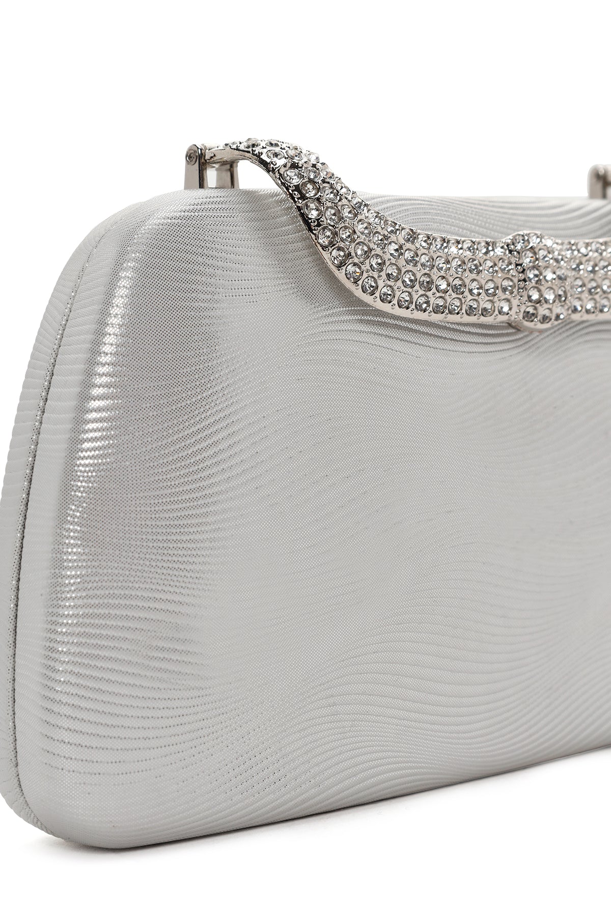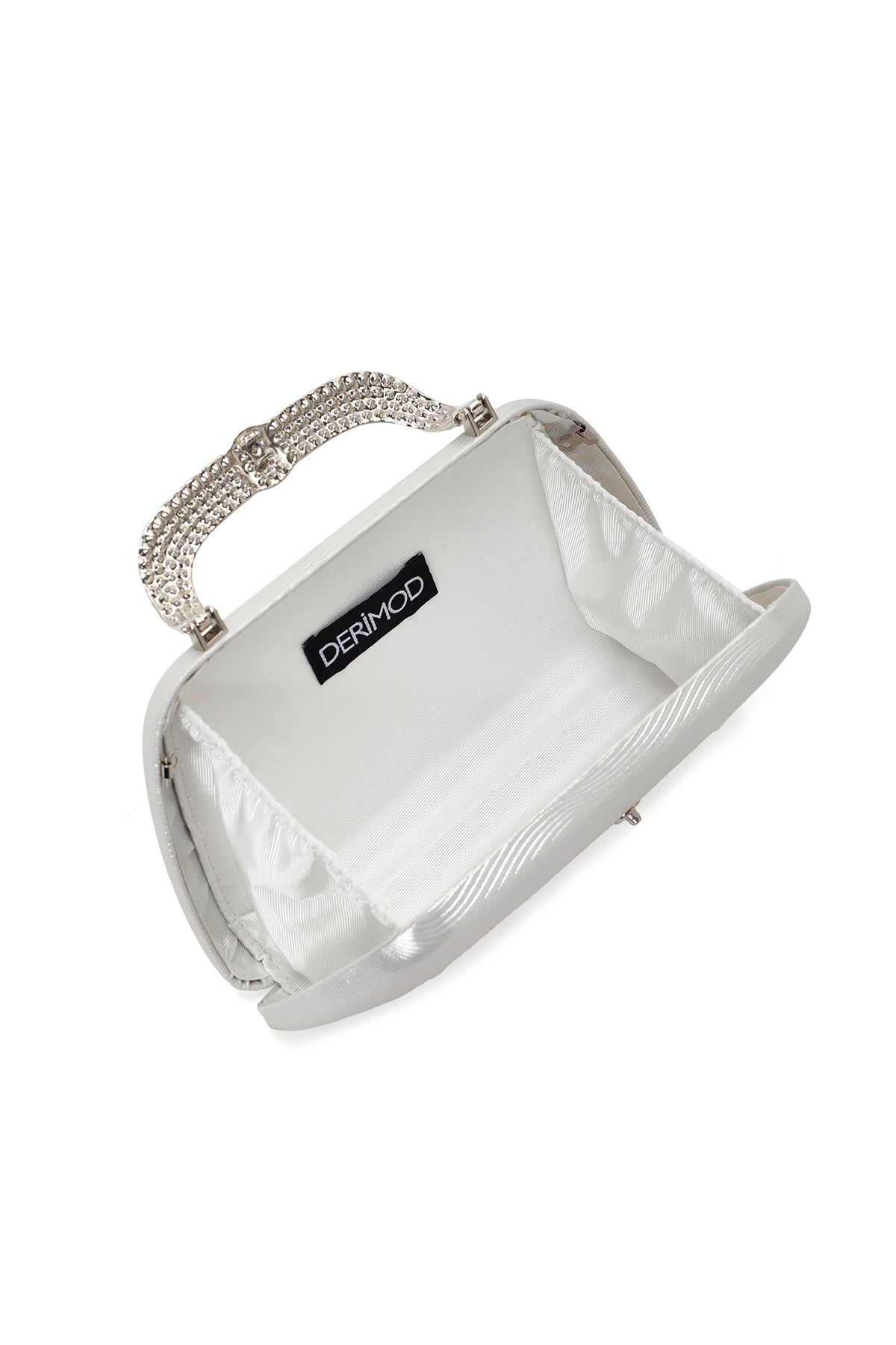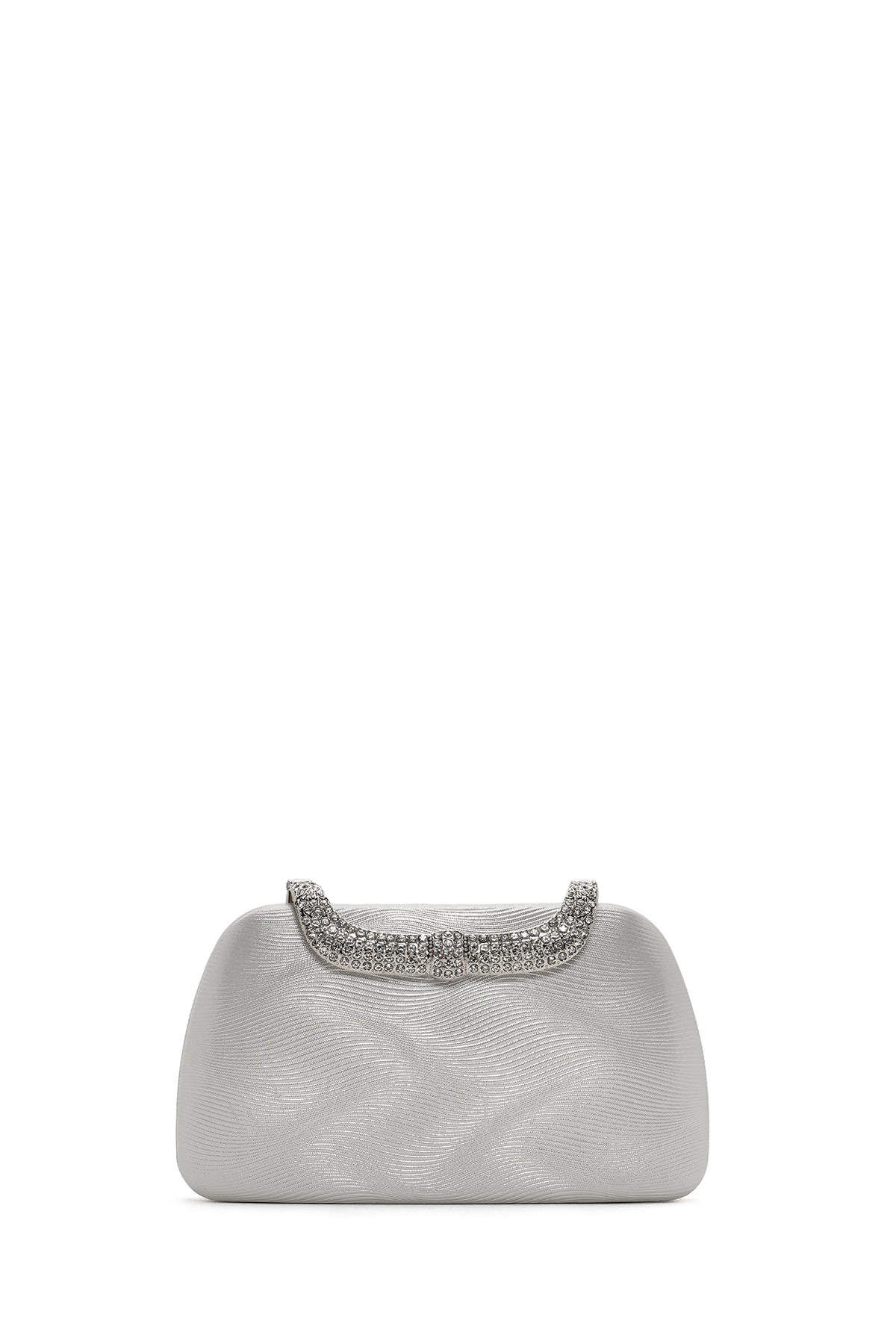 Kadın Gümüş Uzun Zincir Askılı Taşlı Portföy Çanta
