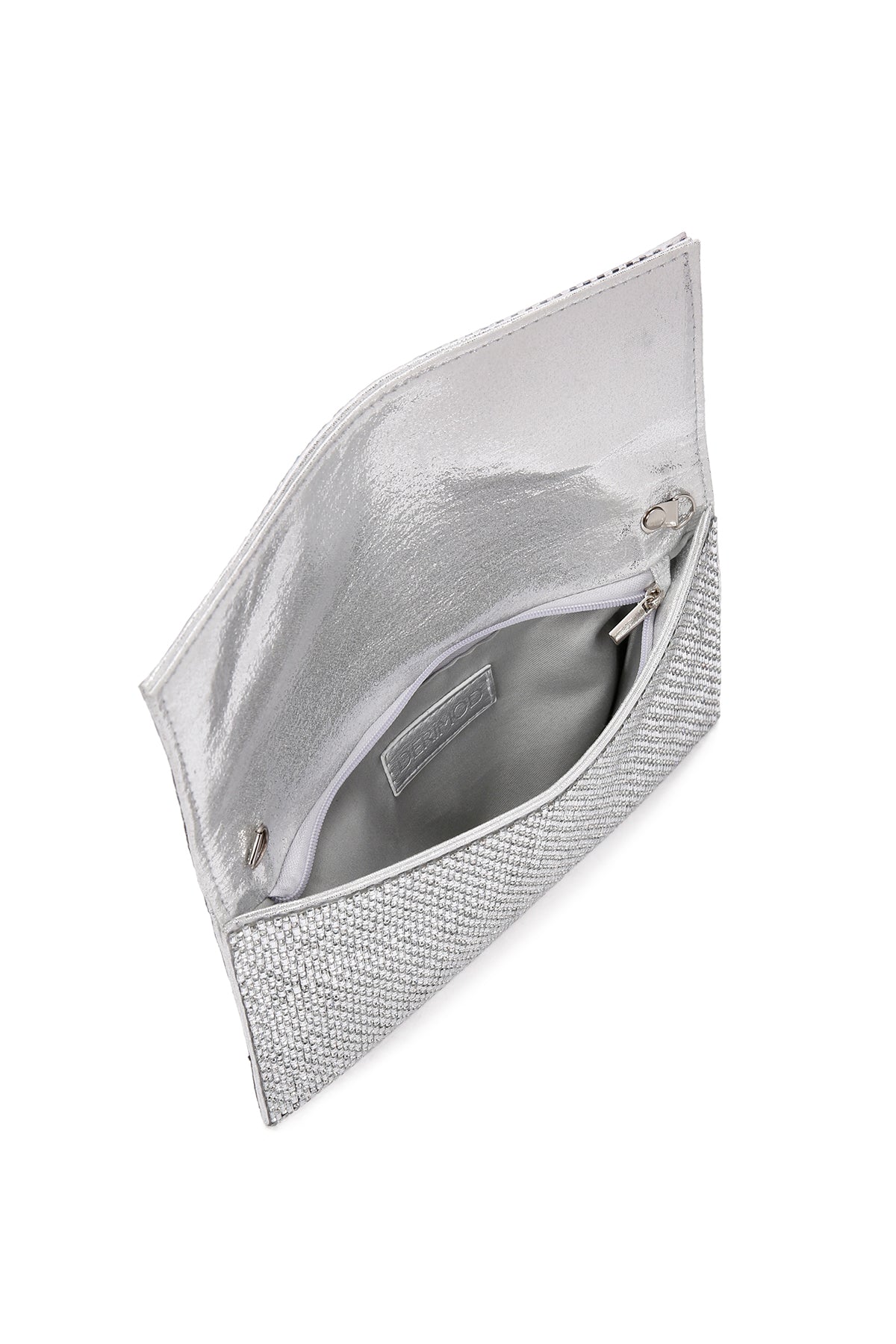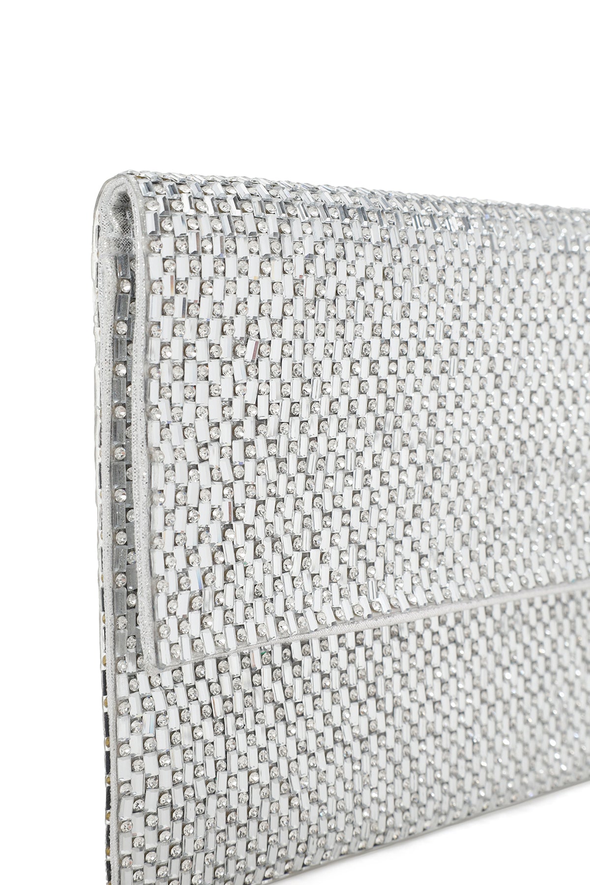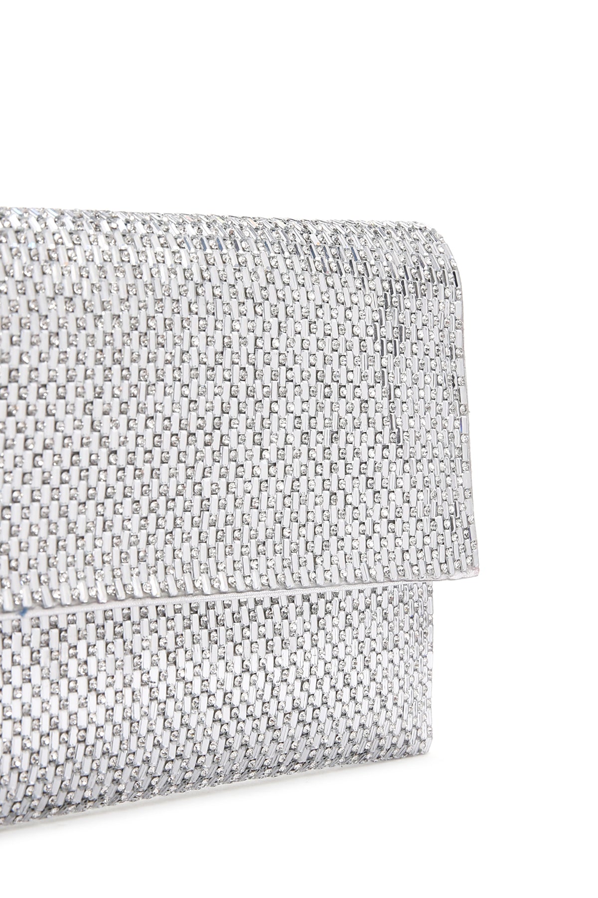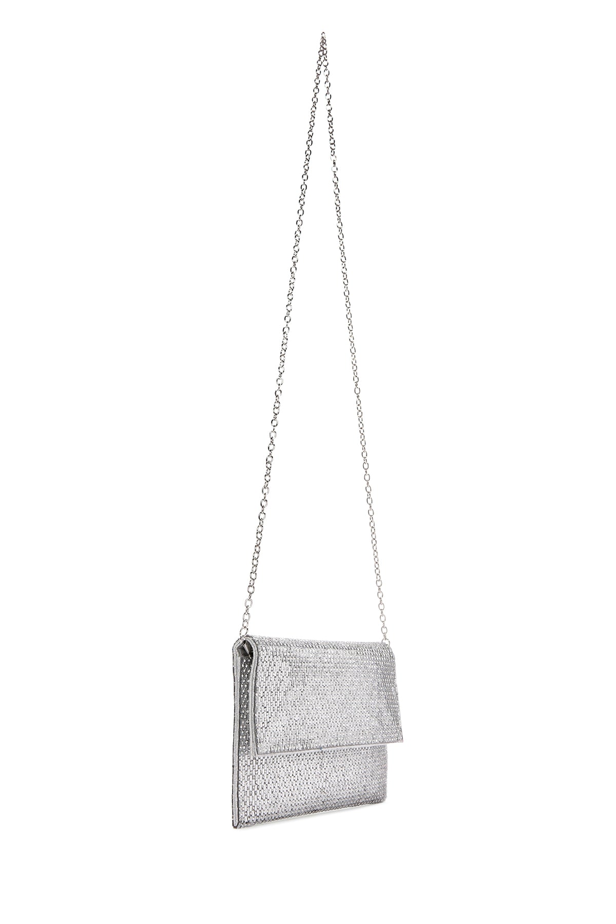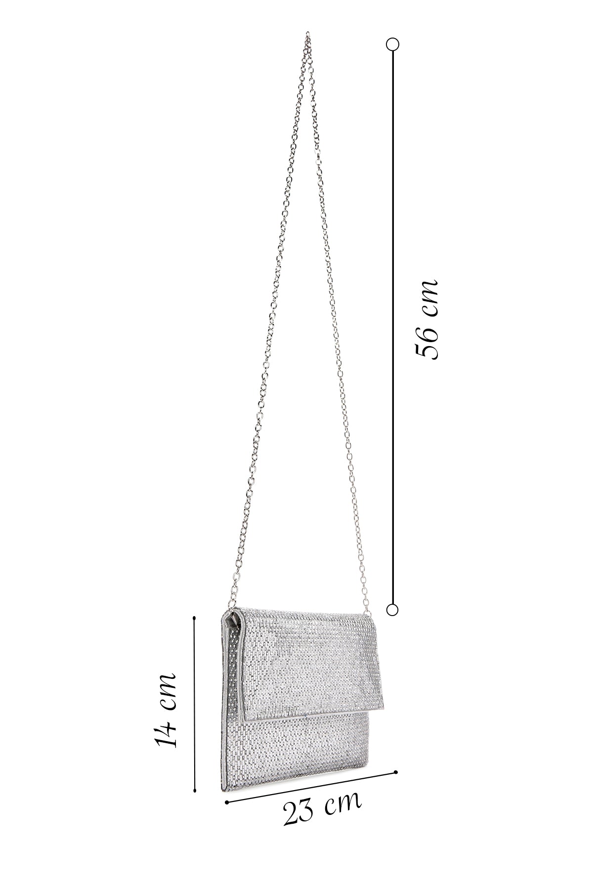 Kadın Gümüş Uzun Zincir Askılı Taşlı Portföy Çanta