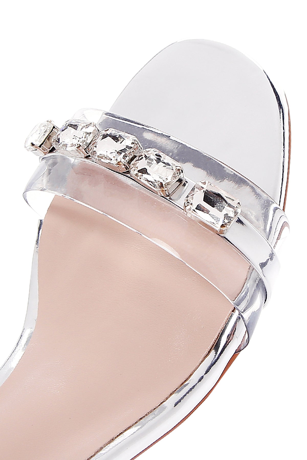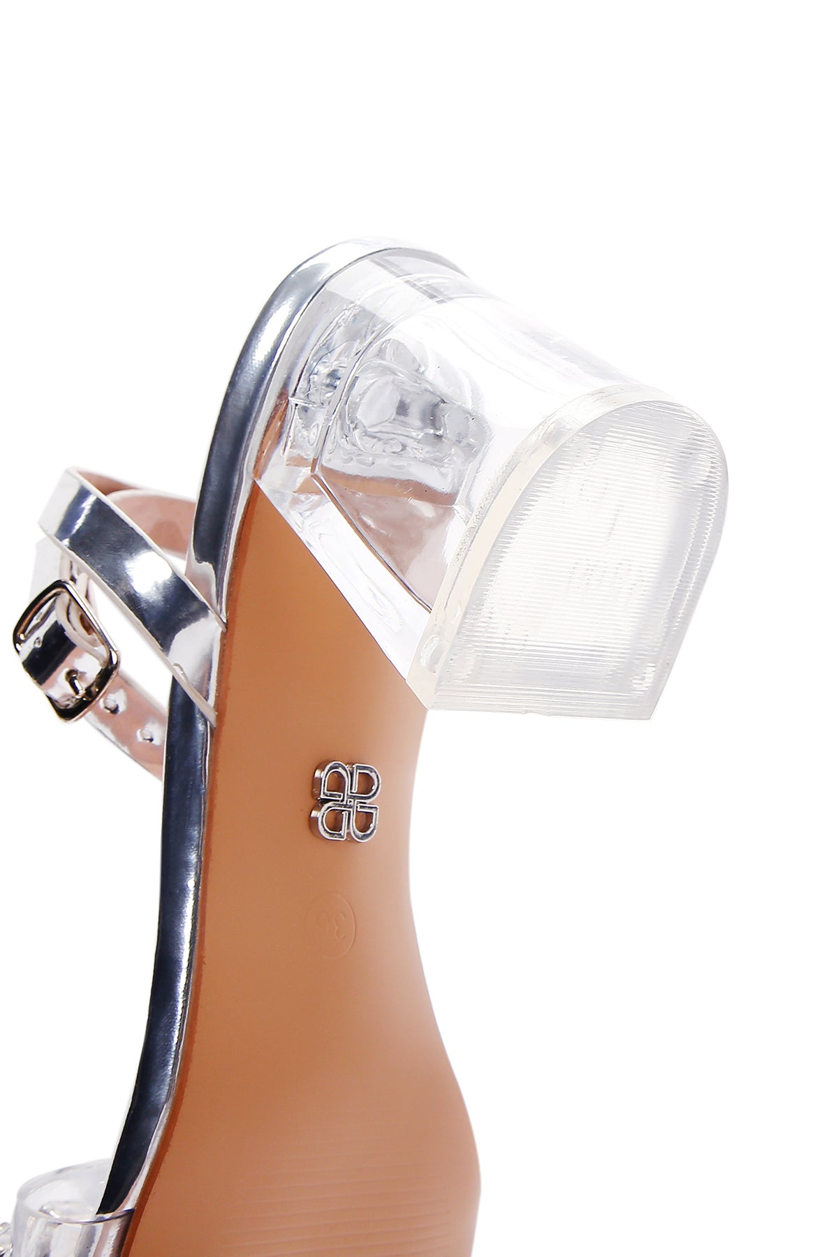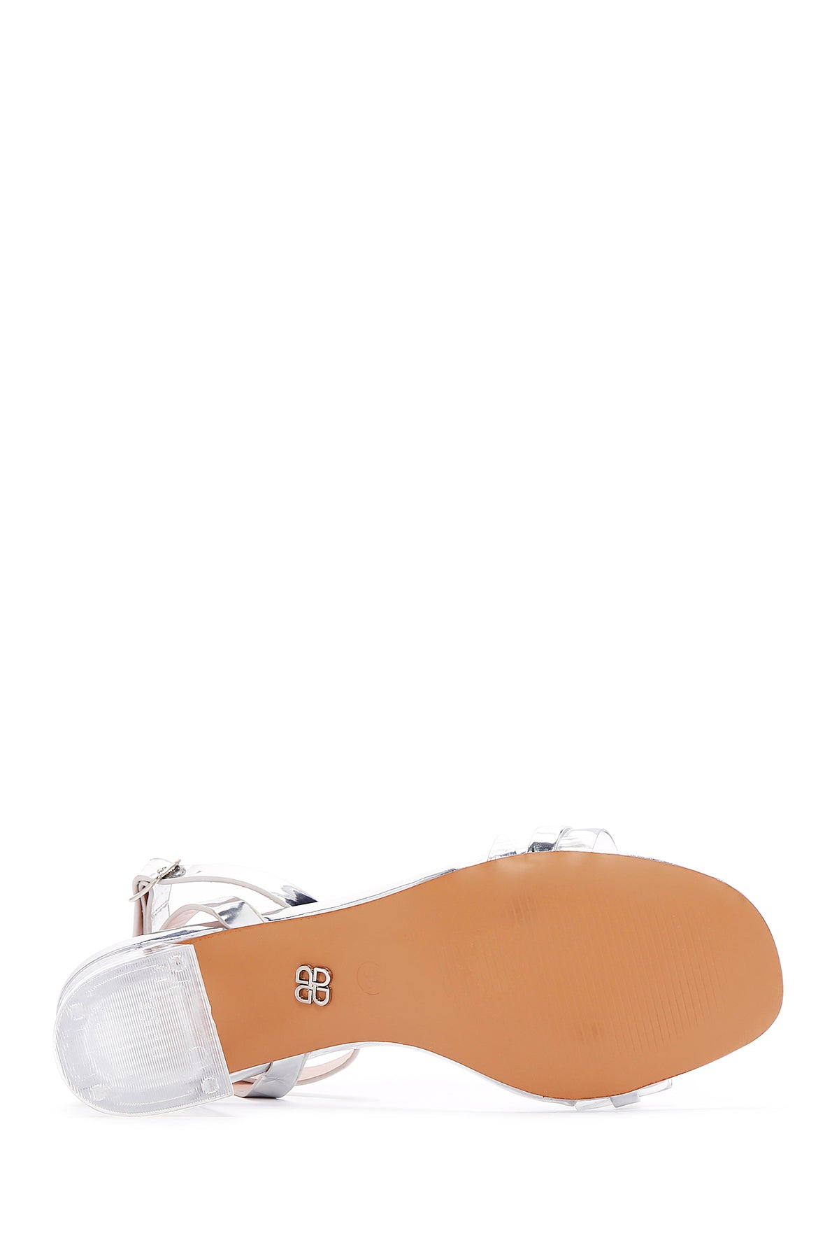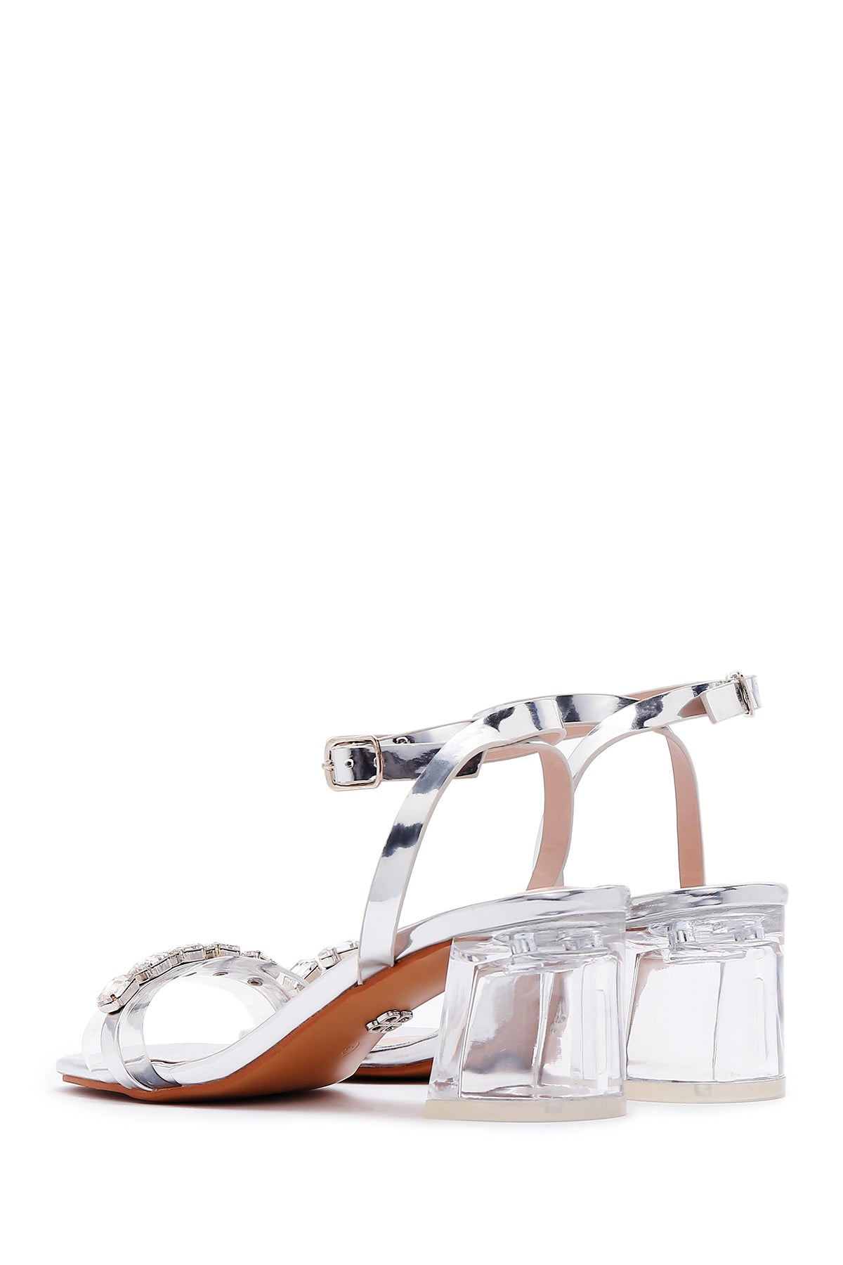 Derimod’un Zarif ve Şıklığı bir arada sunan Kadın Gümüş Vinil Taşlı Kalın Topuklu Sandalet ile tarzınızı konuşturun. Ürünün kodu: 23SFE469514 GR