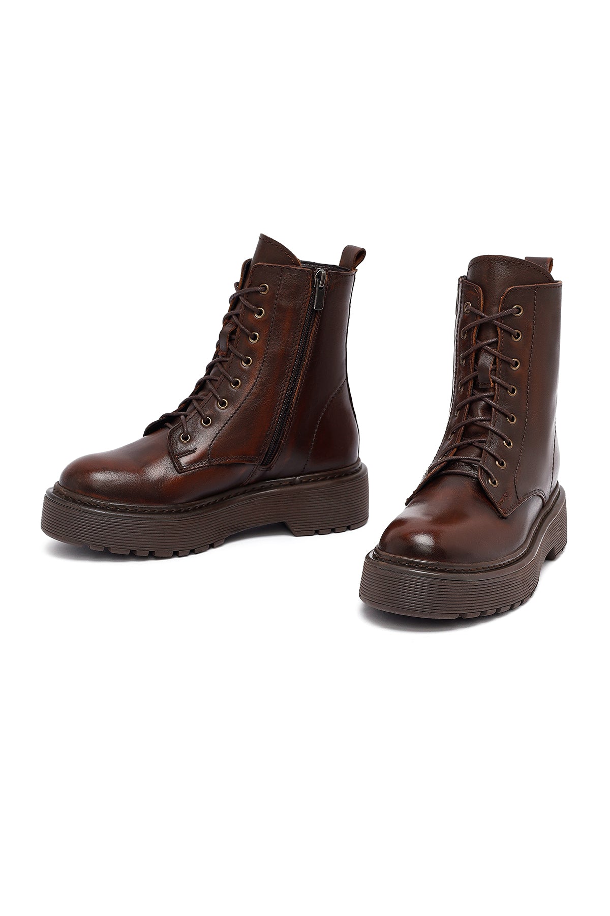 Derimod’un Zarifliği ve Şıklığı bir arada sunan Kadın Kahverengi Bağcıklı Fermuarlı Kalın Tabanlı Deri Postal Bot ile tarzınızı konuşturun. Ürünün kodu: 25WFD181818 25