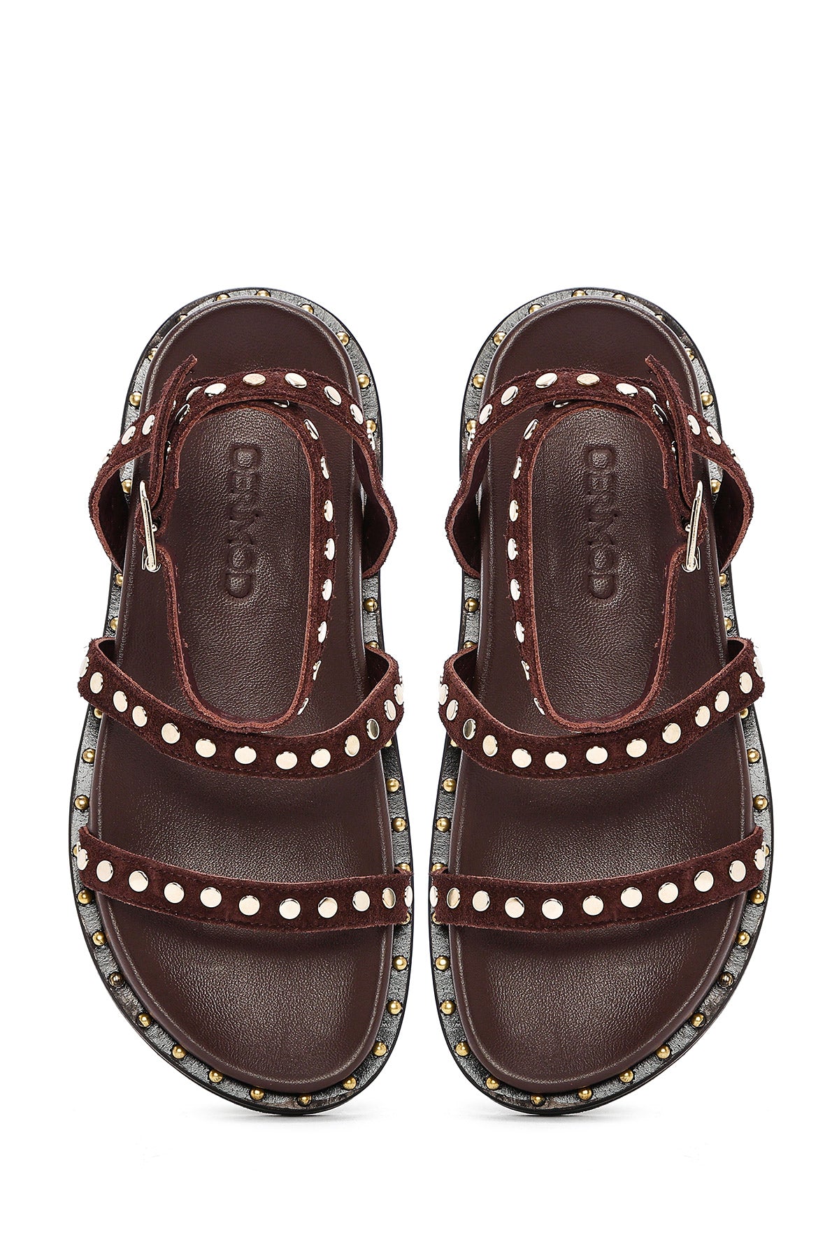 Derimod’un Zarifliği ve Şıklığı bir arada sunan Kadın Kahverengi Bilekten Bağlamalı Metal Detaylı Süet Deri Sandalet ile tarzınızı konuşturun. Ürünün kodu: 25SFD270310 25