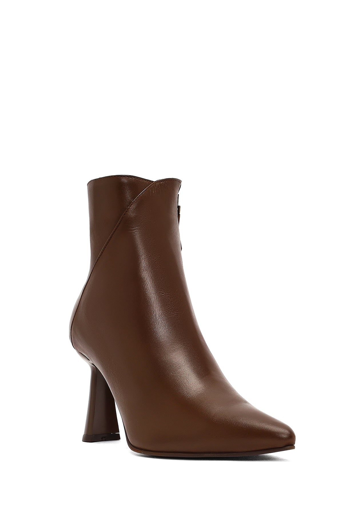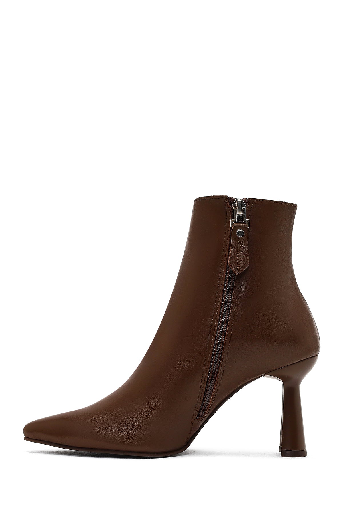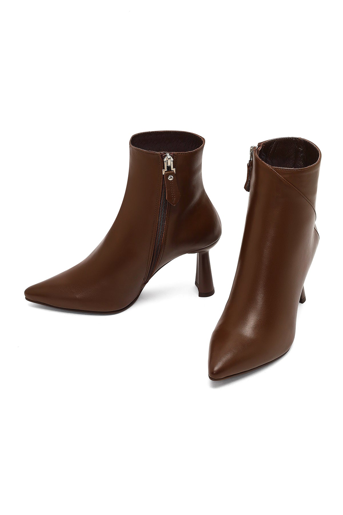 Derimod'un kış koleksiyonundan, vidala deri ile üretilen kahverengi bot modeli, 8.5 cm yüksekliğindeki ince topuğu ile zarif bir görünüm sunuyor. Yan fermuarlı tasarımı ile kolay giyim sağlayan model, deri-tekstil karışımlı iç astarı sayesinde kış şartlarına uygun bir kullanım sağlıyor. Sivri burun formu ve minimalist tasarımıyla dikkat çeken bot, elbiselerden eteklere, pantolonlardan taytlara kadar geniş bir kullanım alanı sunuyor. Sonbahar ve kış mevsimlerinde ofisten davetlere kadar her ortamda kullanılabilir. Ürün kodu: 25WFD130718