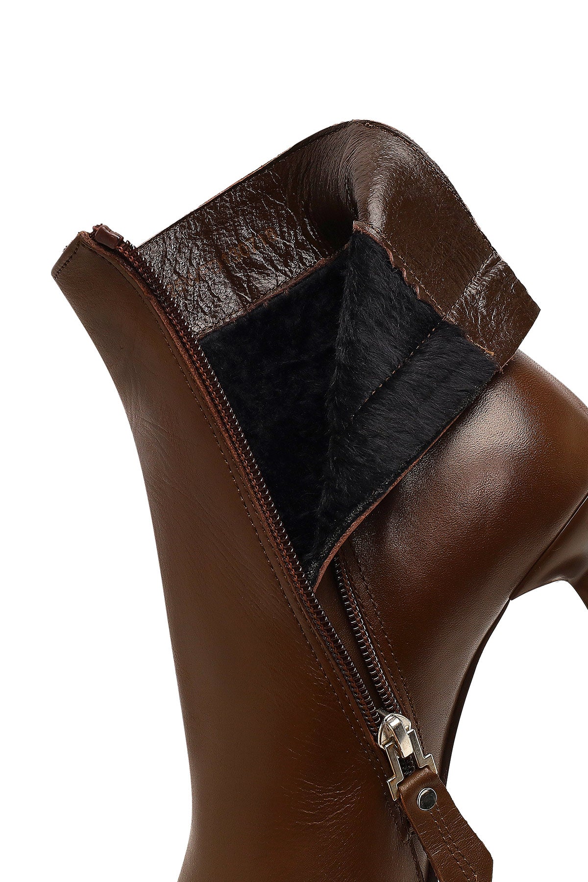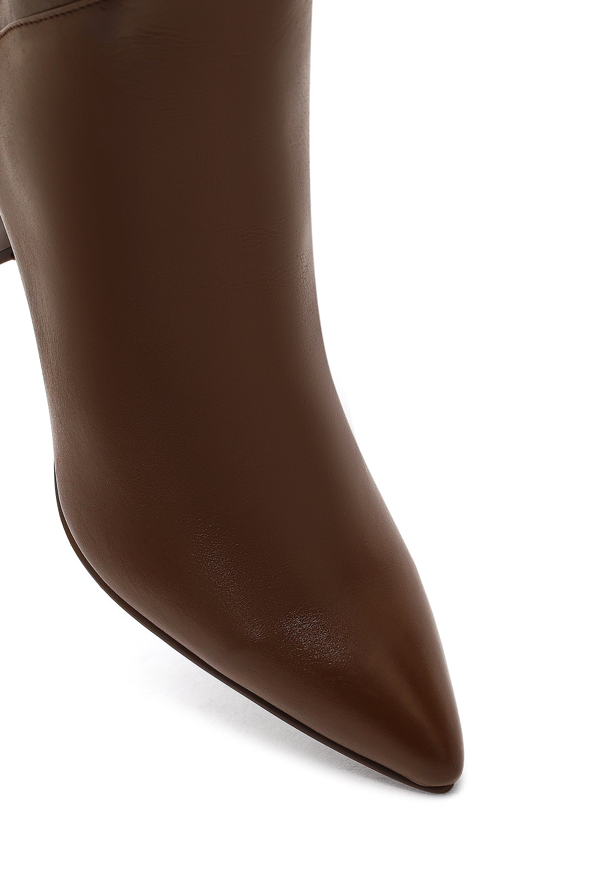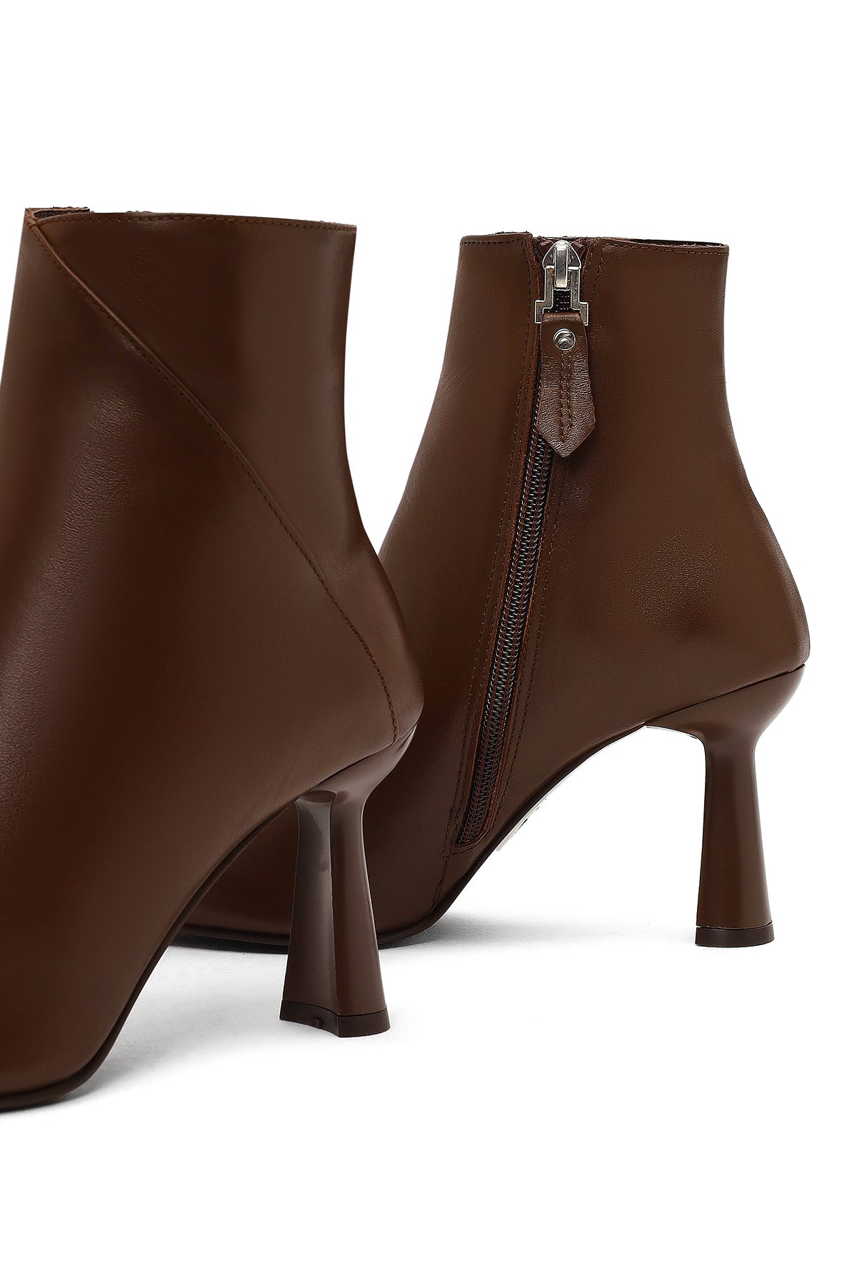 Derimod'un kış koleksiyonundan, vidala deri ile üretilen kahverengi bot modeli, 8.5 cm yüksekliğindeki ince topuğu ile zarif bir görünüm sunuyor. Yan fermuarlı tasarımı ile kolay giyim sağlayan model, deri-tekstil karışımlı iç astarı sayesinde kış şartlarına uygun bir kullanım sağlıyor. Sivri burun formu ve minimalist tasarımıyla dikkat çeken bot, elbiselerden eteklere, pantolonlardan taytlara kadar geniş bir kullanım alanı sunuyor. Sonbahar ve kış mevsimlerinde ofisten davetlere kadar her ortamda kullanılabilir. Ürün kodu: 25WFD130718