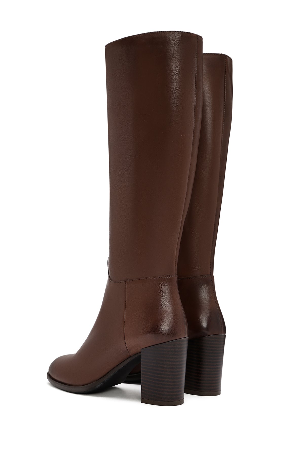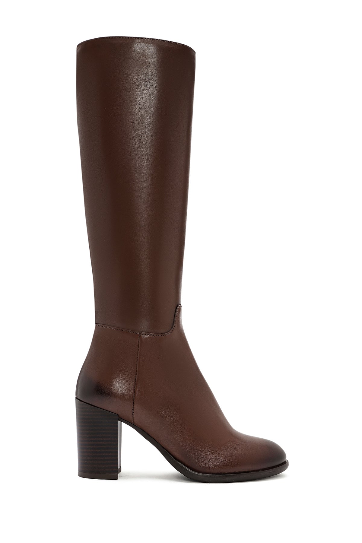 **Türkçe Açıklama:**Derimod'un kış koleksiyonunun öne çıkan parçalarından olan Kadın Kahverengi Fermuarlı Kalın Topuklu Deri Çizme, modern kadının hem şık hem de güçlü duruşunu yansıtan mükemmel bir tasarımdır. Vidala deri özelliğiyle üretilen çizme, doğal deri yapısının sağladığı dayanıklılık ve zarafeti bir araya getiriyor. 8 cm kalın topuk yüksekliği sayesinde hem boy avantajı sağlayan hem de yürüyüş konforu sunan model, yan tarafındaki fermuarı ile pratik kullanım imkanı sunuyor. İç deri astarı ayakları sıcak tutarken nefes alabilirlik özelliği de koruyor. Kahverengi rengiyle klasik ve zamansız bir görünüm sergileyen çizme, sonbahar ve kış aylarında gardırobunuzun vazgeçilmez parçası olacak. Diz altı uzunluğuyla bacakları zarif bir şekilde saran model, ofis ortamından günlük kullanıma, akşam yemeklerinden alışveriş turlarına kadar her ortamda rahatlıkla tercih edilebilir. Kalın topuk yapısı uzun süreli kullanımlarda ayak sağlığını korurken, şık tasarımıyla da modern kadının tarzını yansıtır. Ürün kodu: 25WFD281018