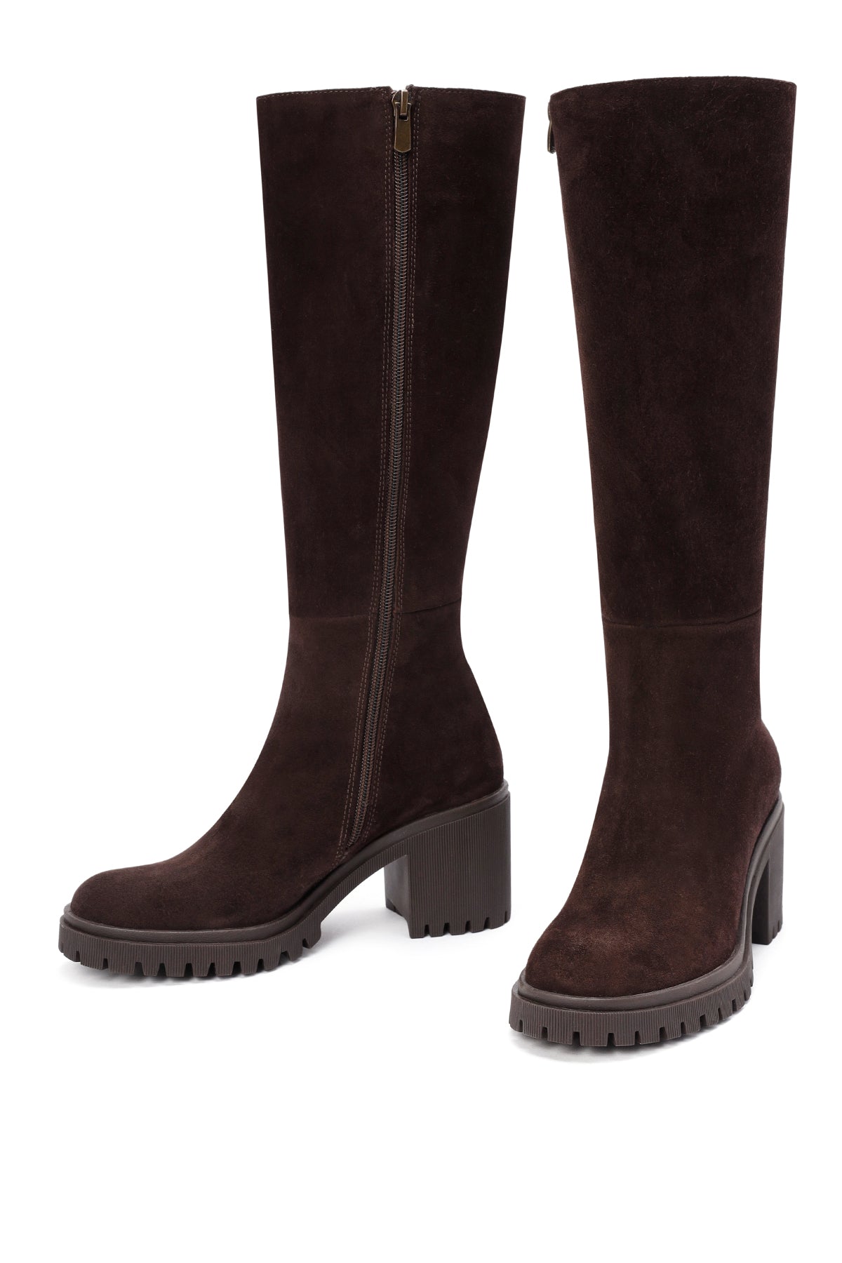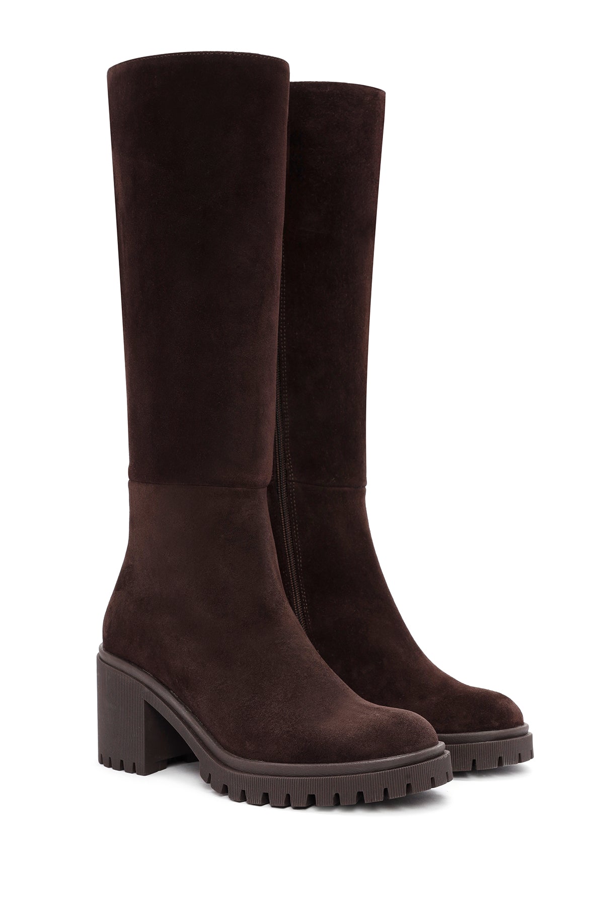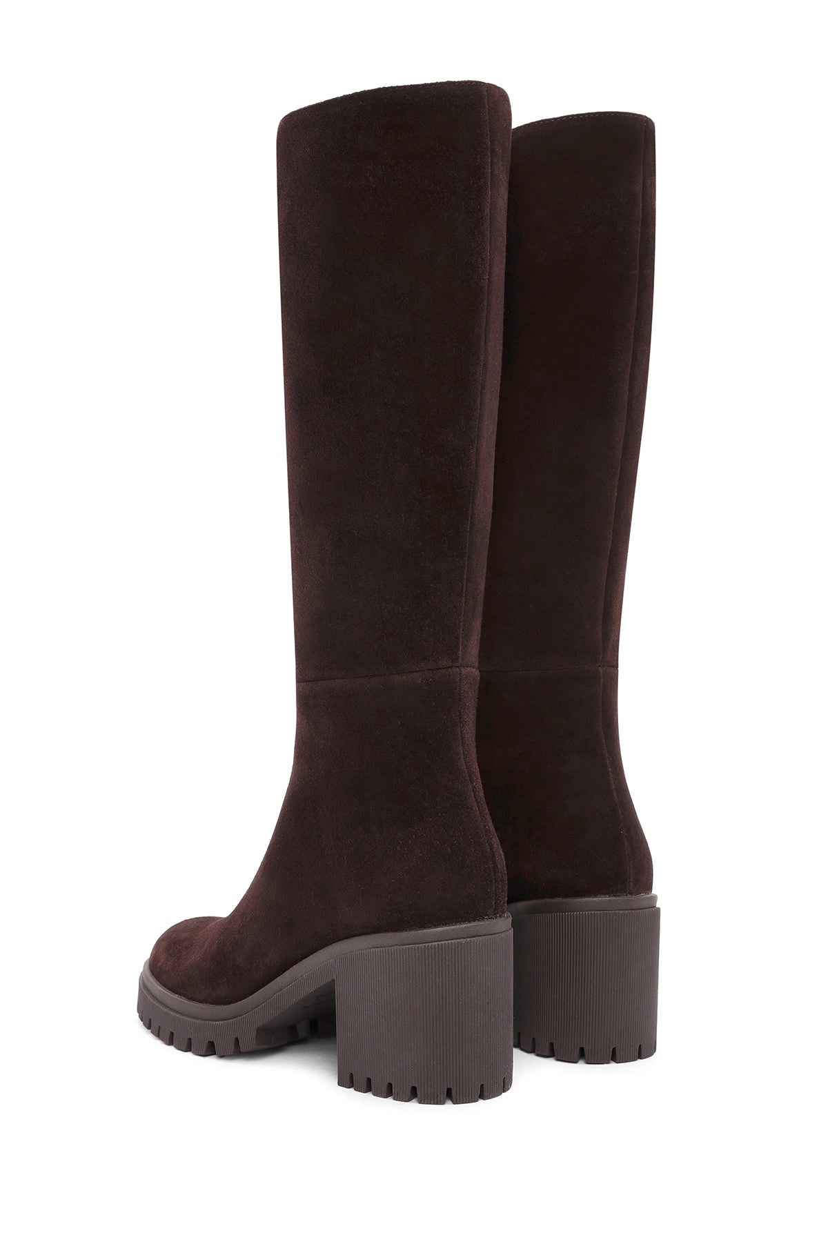 Derimod’un Zarifliği ve Şıklığı bir arada sunan Kadın Kahverengi Fermuarlı Kalın Topuklu Süet Deri Çizme ile tarzınızı konuşturun. Ürünün kodu: 25WFD201410 25